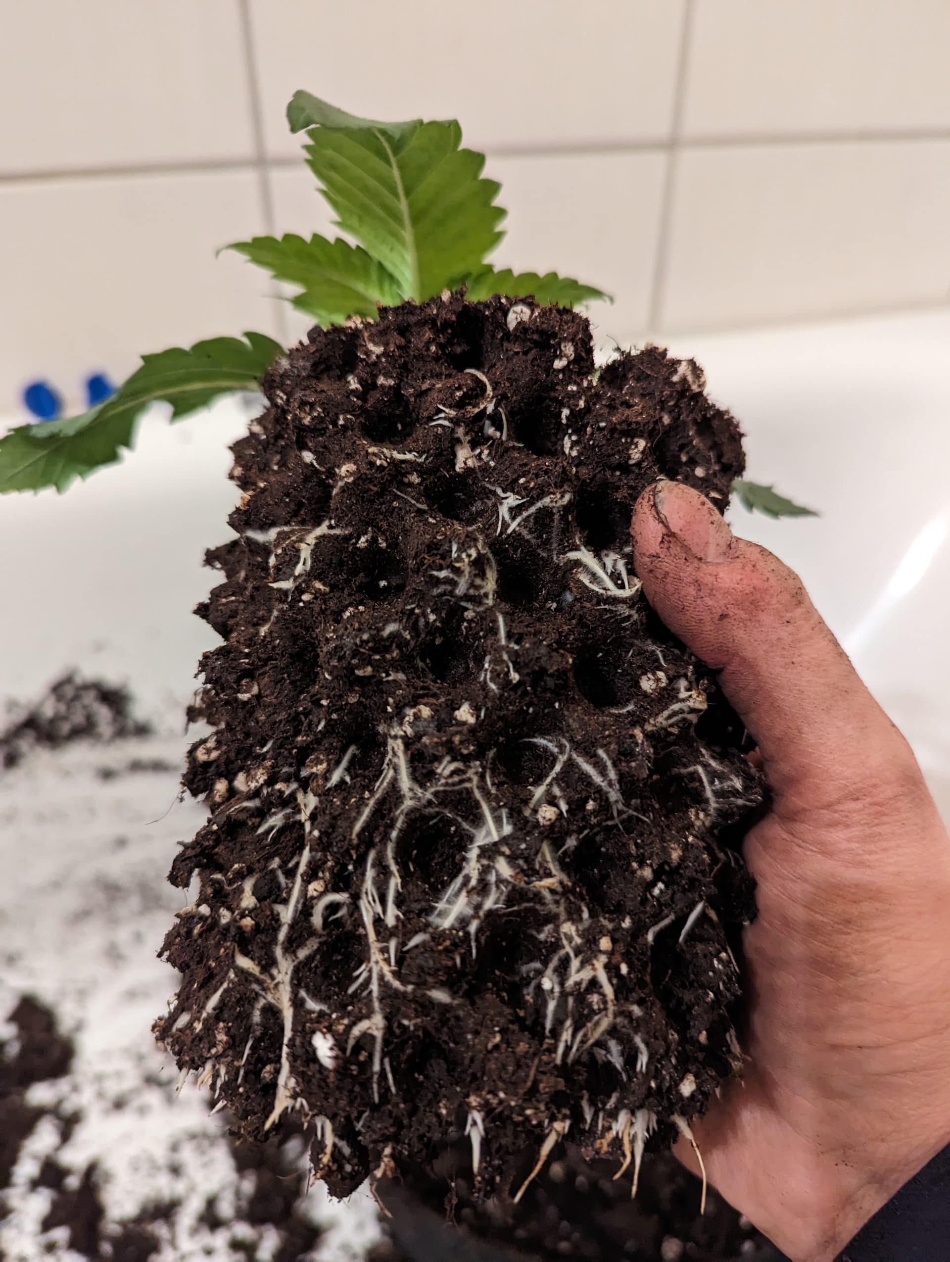 Die Wurzeln waren perlweiß und recht gut durchwachsen. Es hätte aber auch nicht geschadet, wenn ich noch ne Woche länger gewartet hätte.