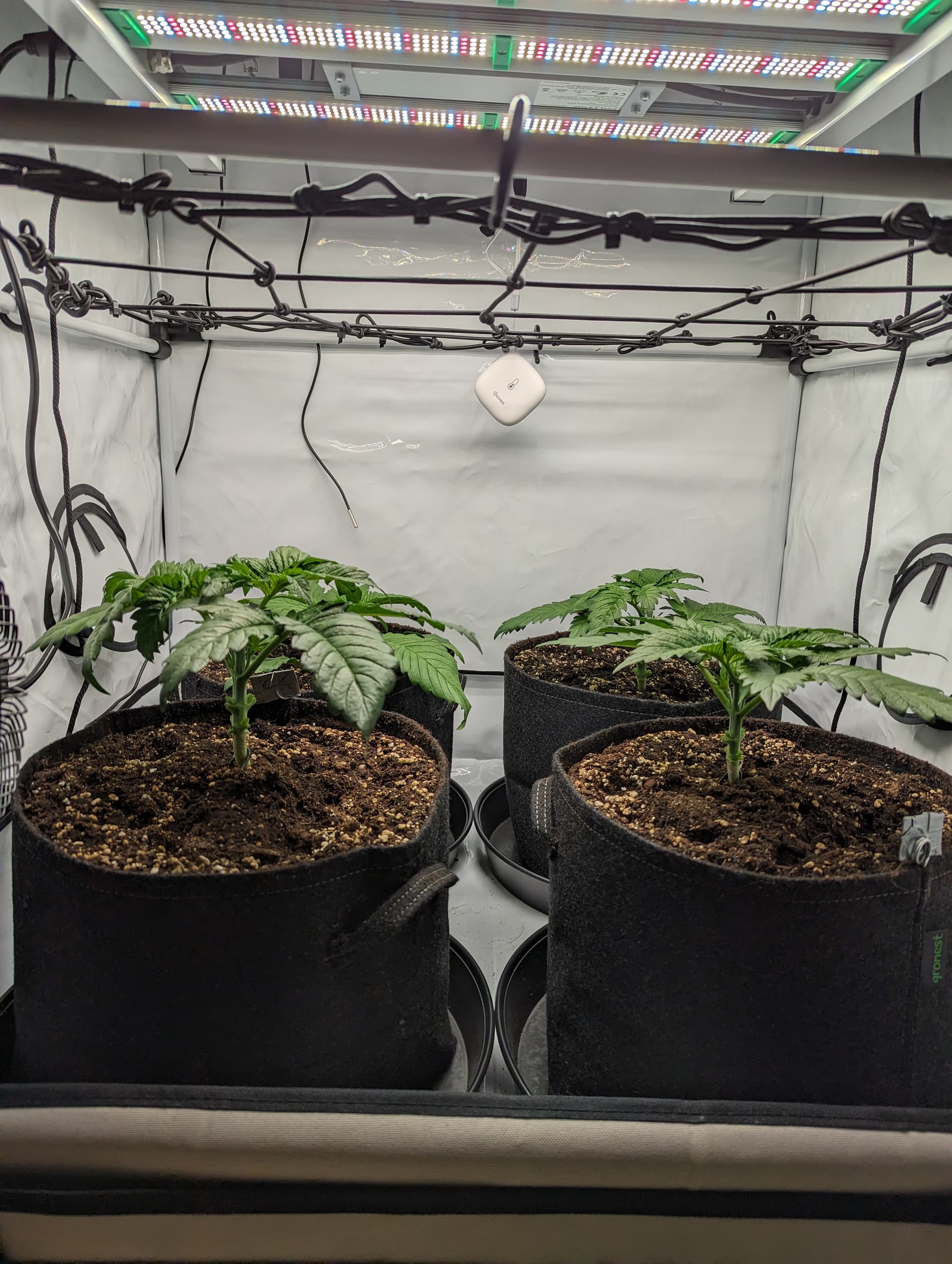 Also die Pflanzen machen sich prächtig. Ich habe letzte Woche dann auch den kleinen Nachzügler getoppt (Tatanka) und untenrum nackig gemacht. Die 2 Ladys die in 100% Allmix getopft wurden, wurden heute das erste Mal mit Hesi Bio Grow gegossen. Das CO2 kommt nach wie vor zum Einsatz nach dem gießen auch wenn ich nicht weiß, ob es was bringt aber da alles gut läuft bleibts einfach dabei .