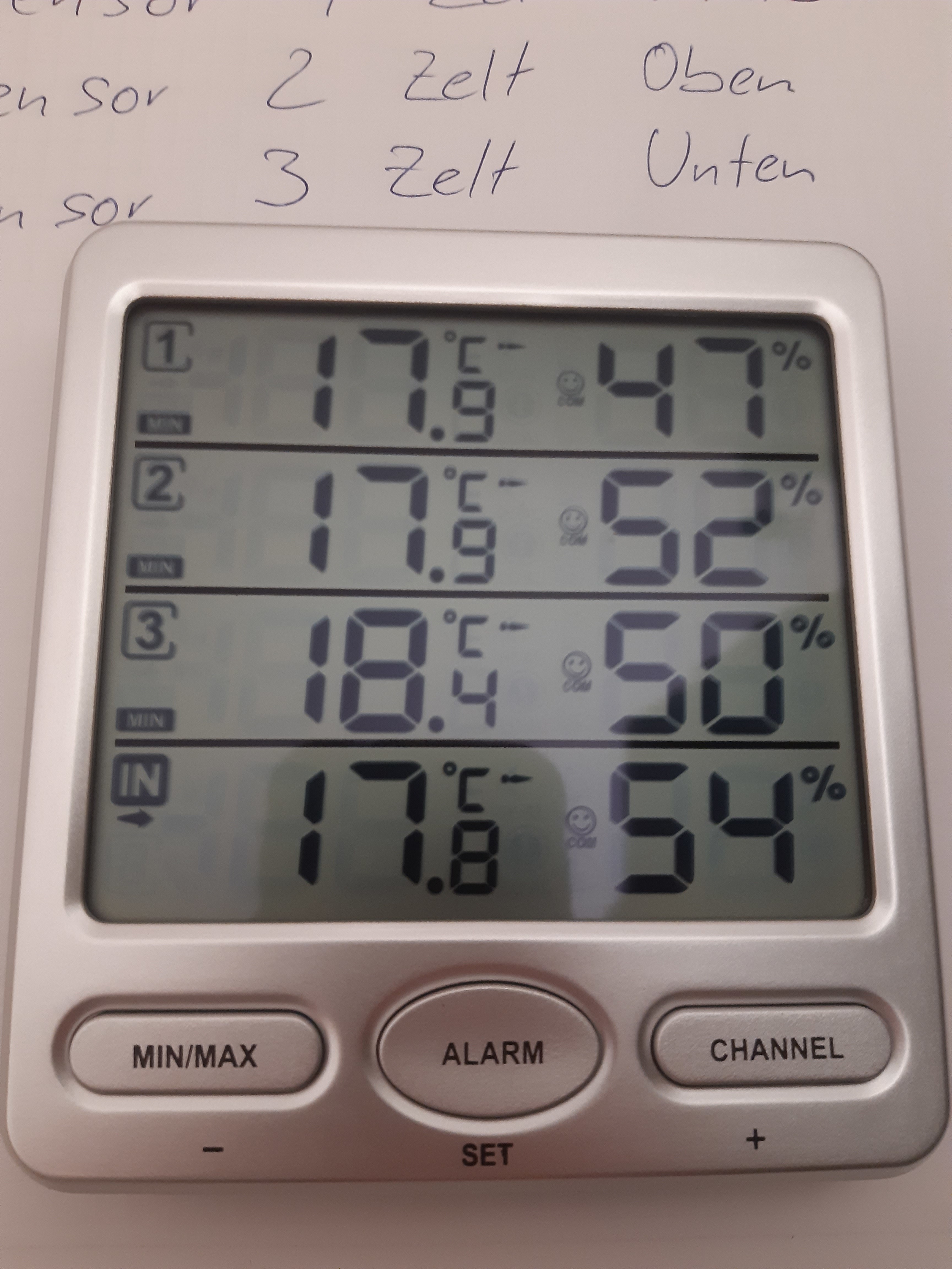 Messgerät sind MAX und MIN Werte.