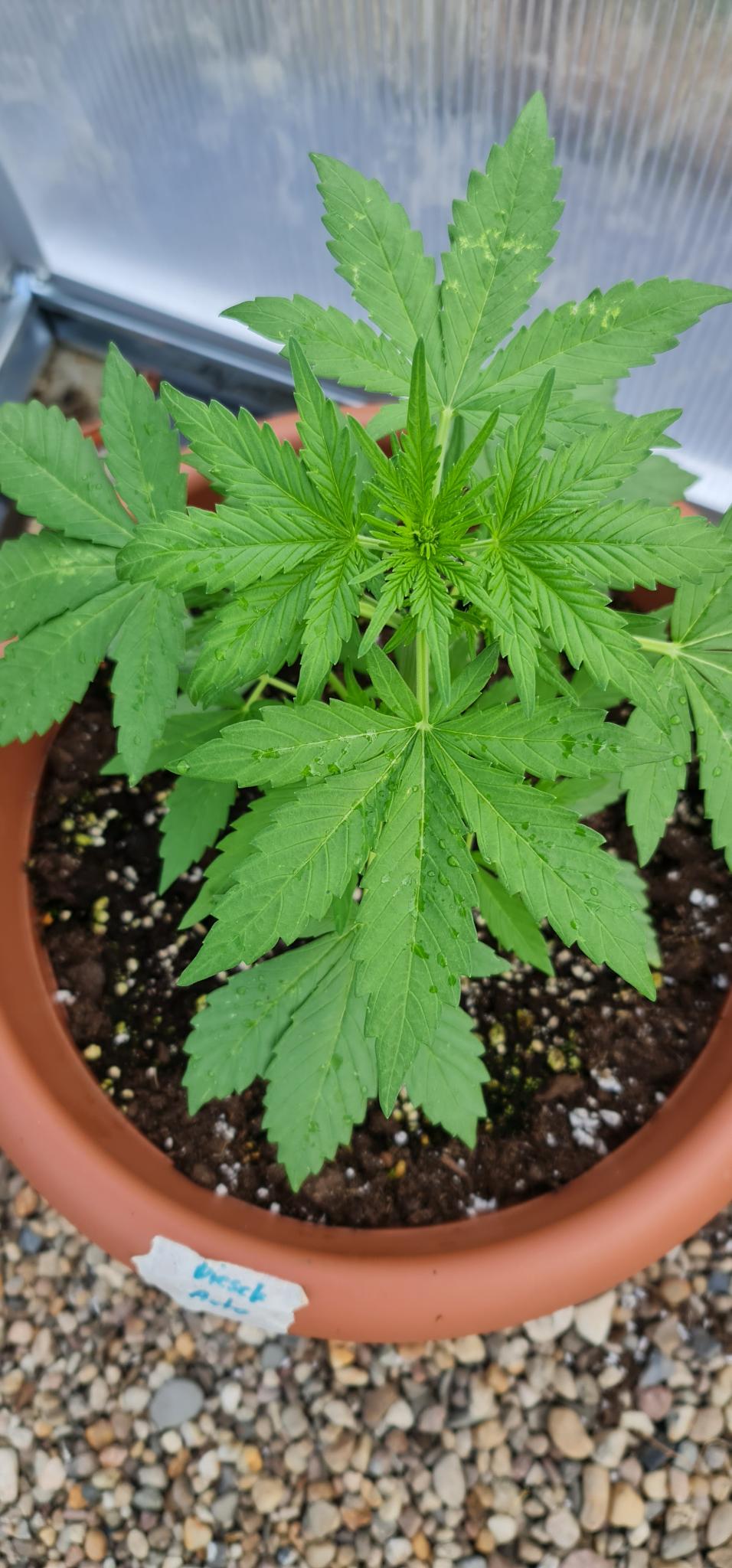 Nach einer ~Woche dann in den endtopf und raus ins Gewächshaus.(12.05.24)