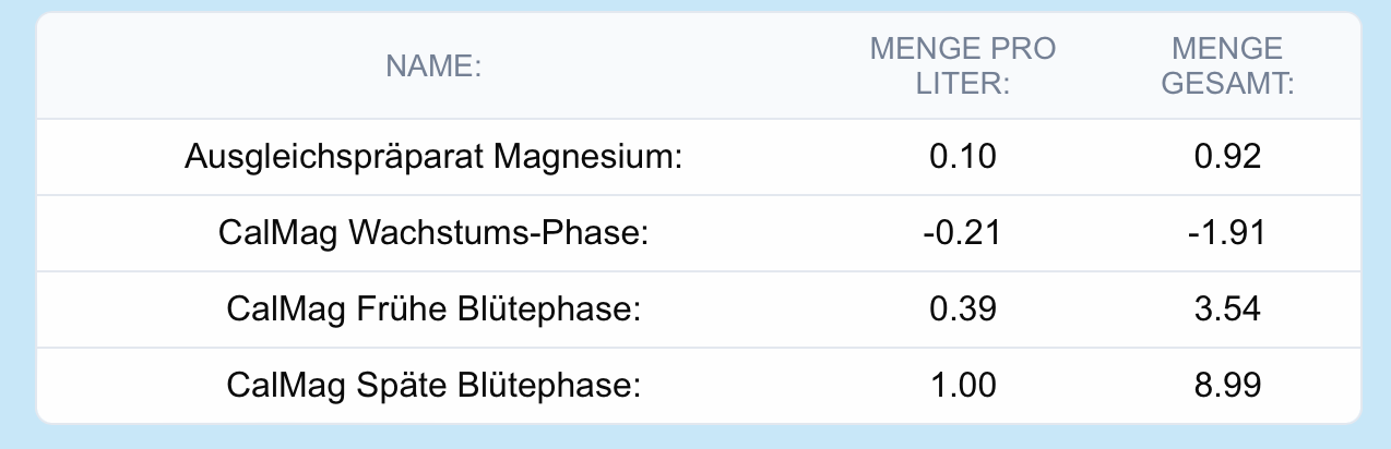 pro Liter 0,3 Cal/Mg, 2ml BioGrow, 2 ml Bio-Heaven