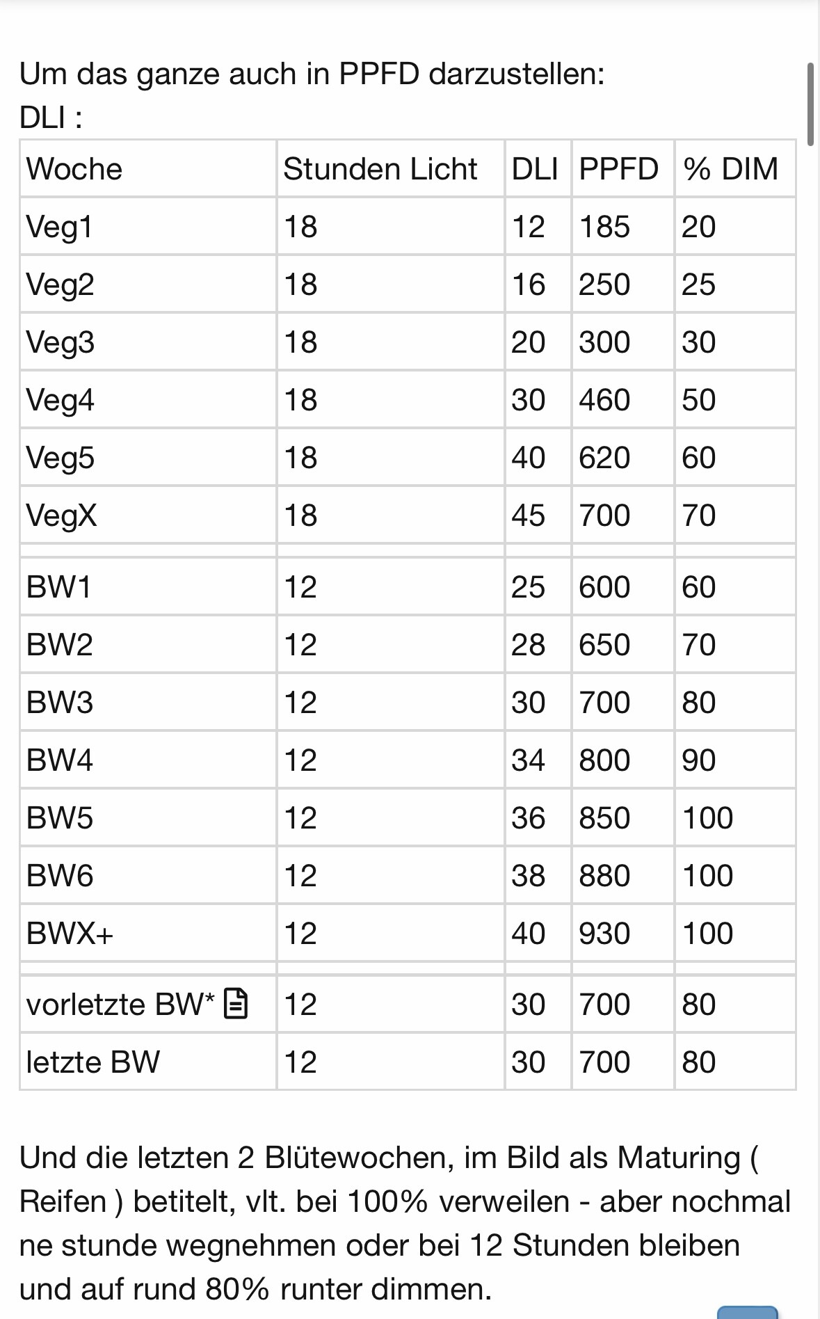 Lampenabstand 45cm mit 50%, 21-25 C°, 70-90 %