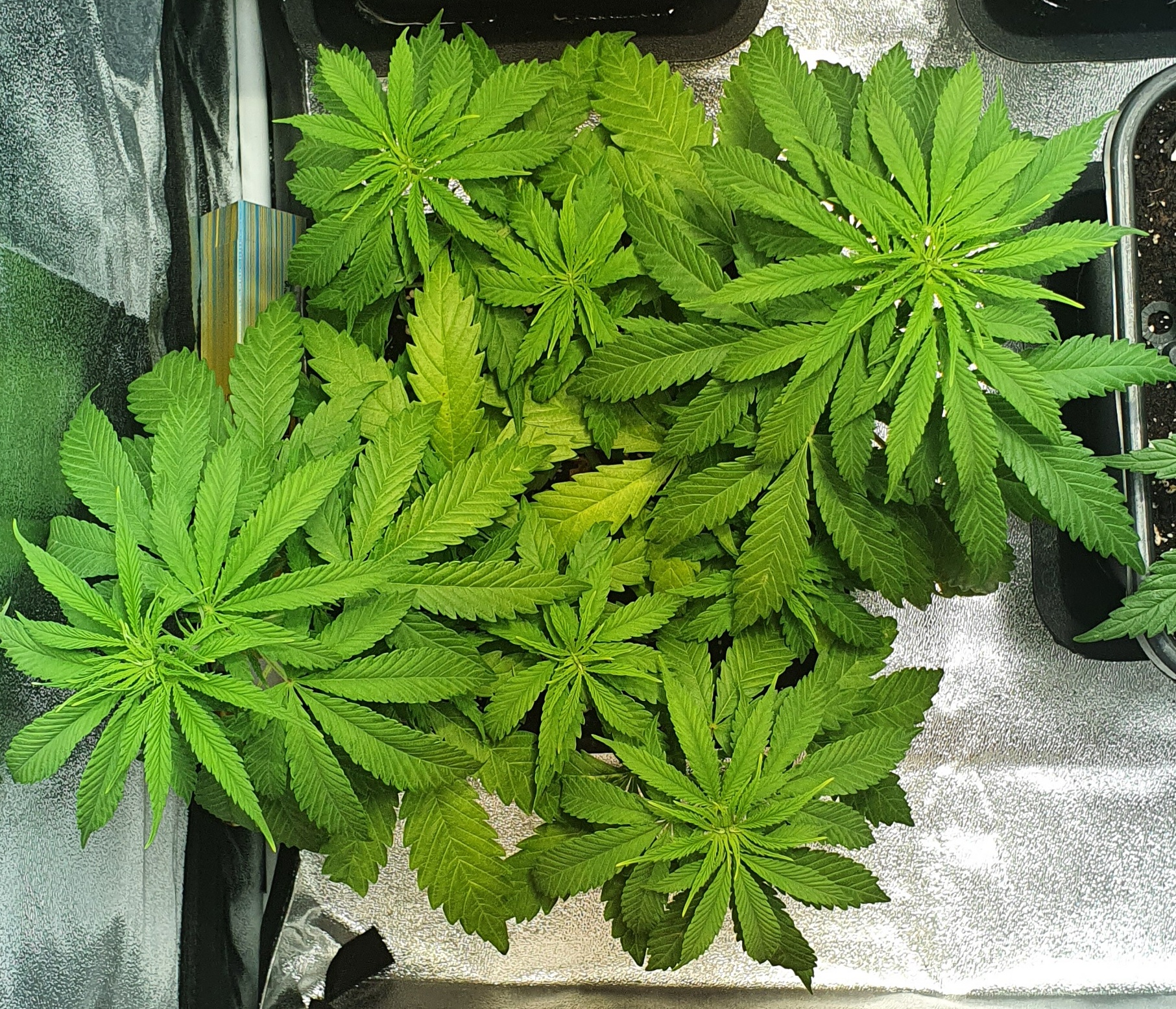 Ich habe mir jetzt vorgestellt die 4 Pötte noch so 2 Wochen (14 Tage) in der Vegi zu lassen und danach in die Blüte zu schicken.