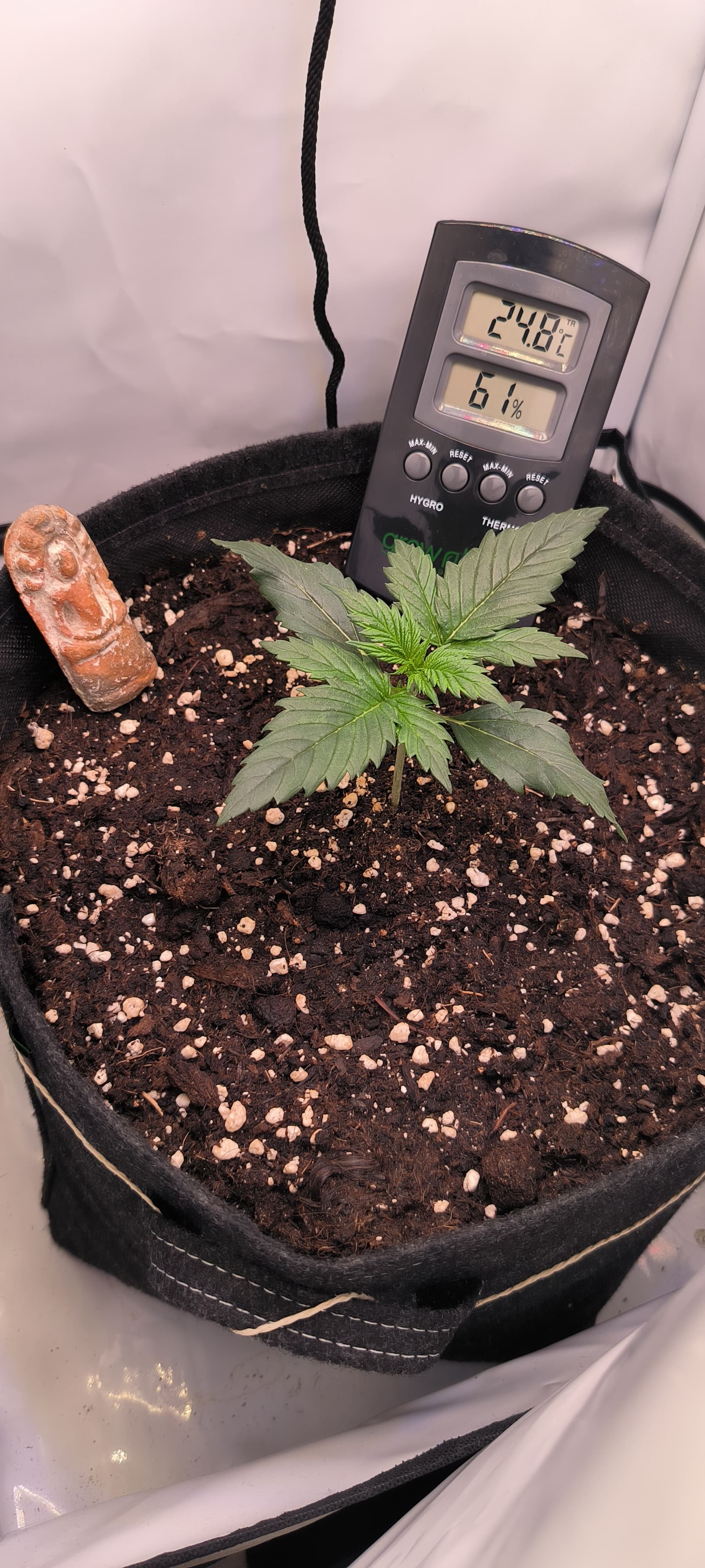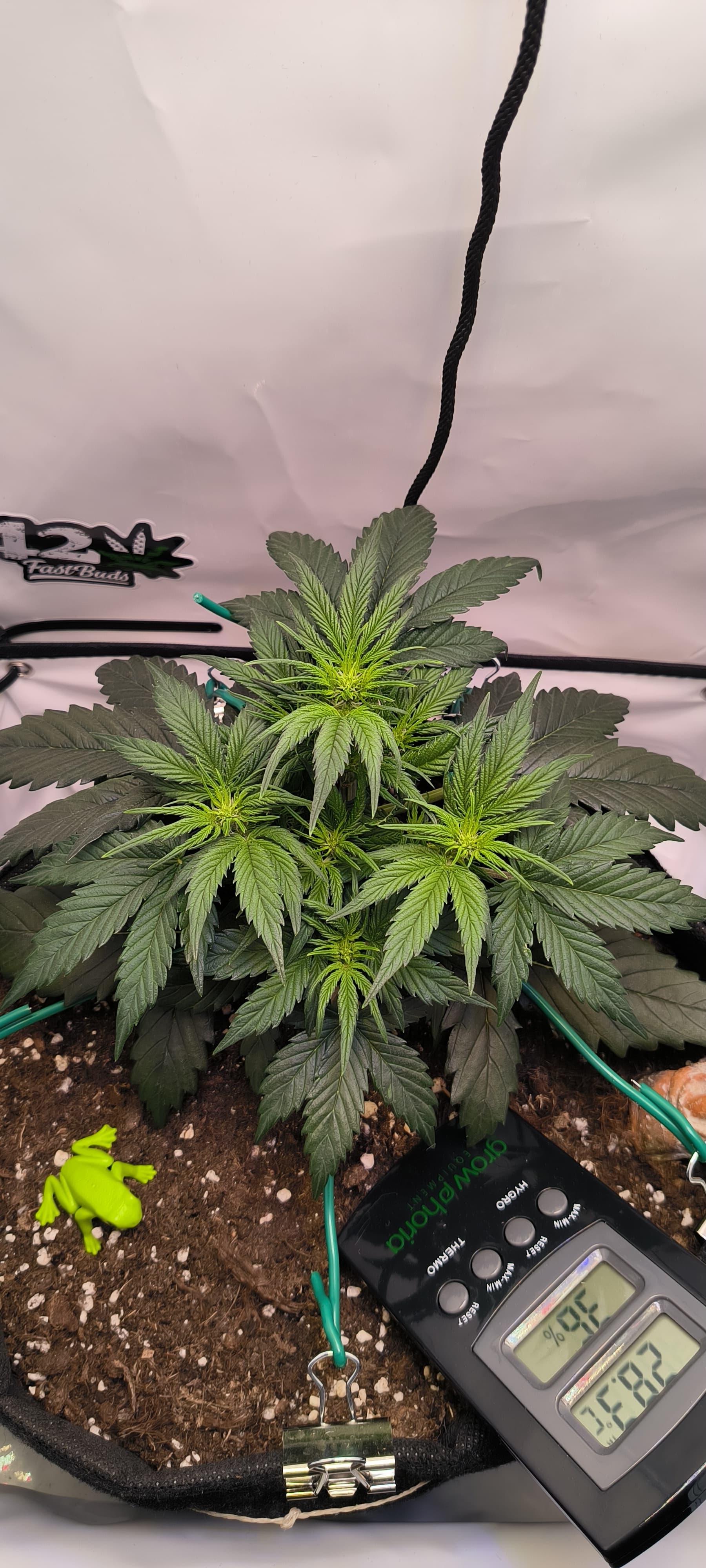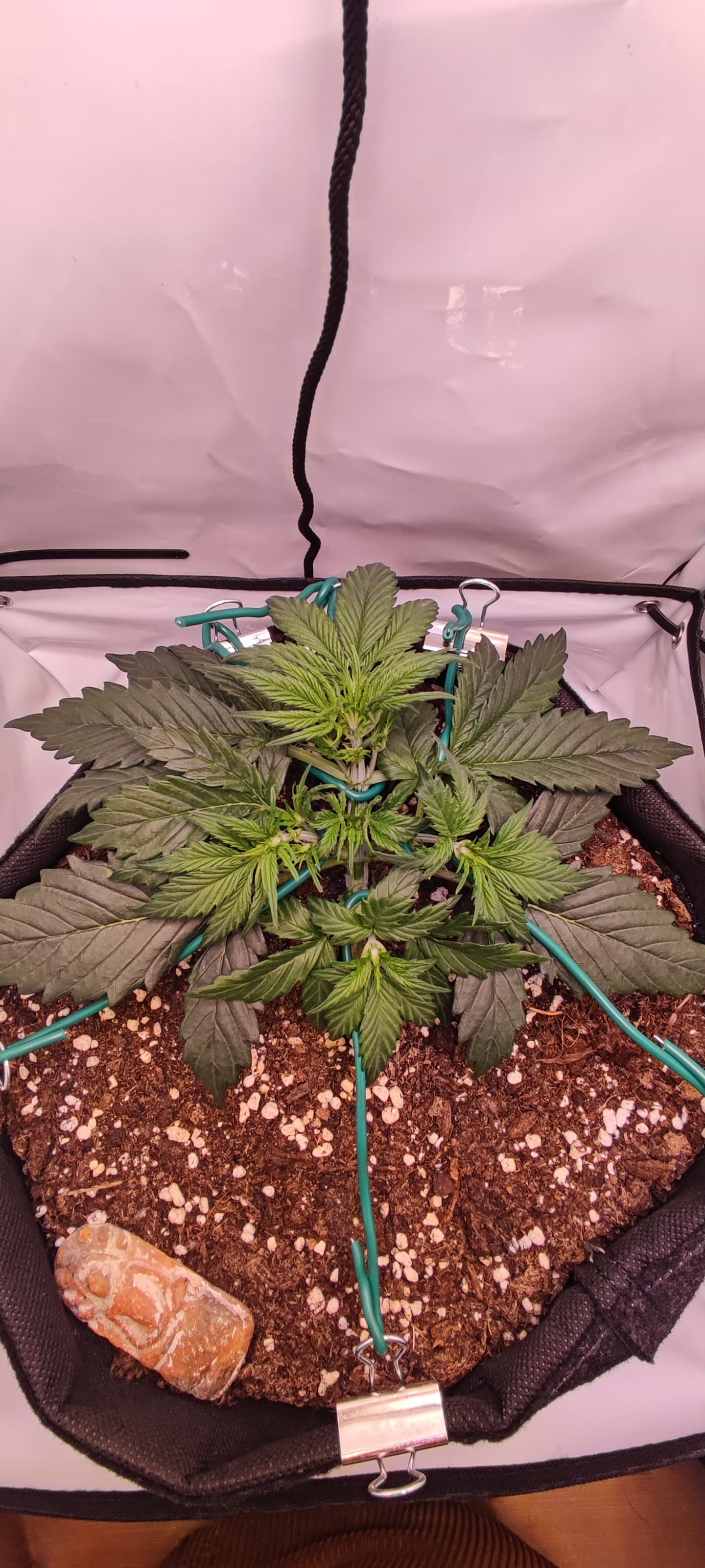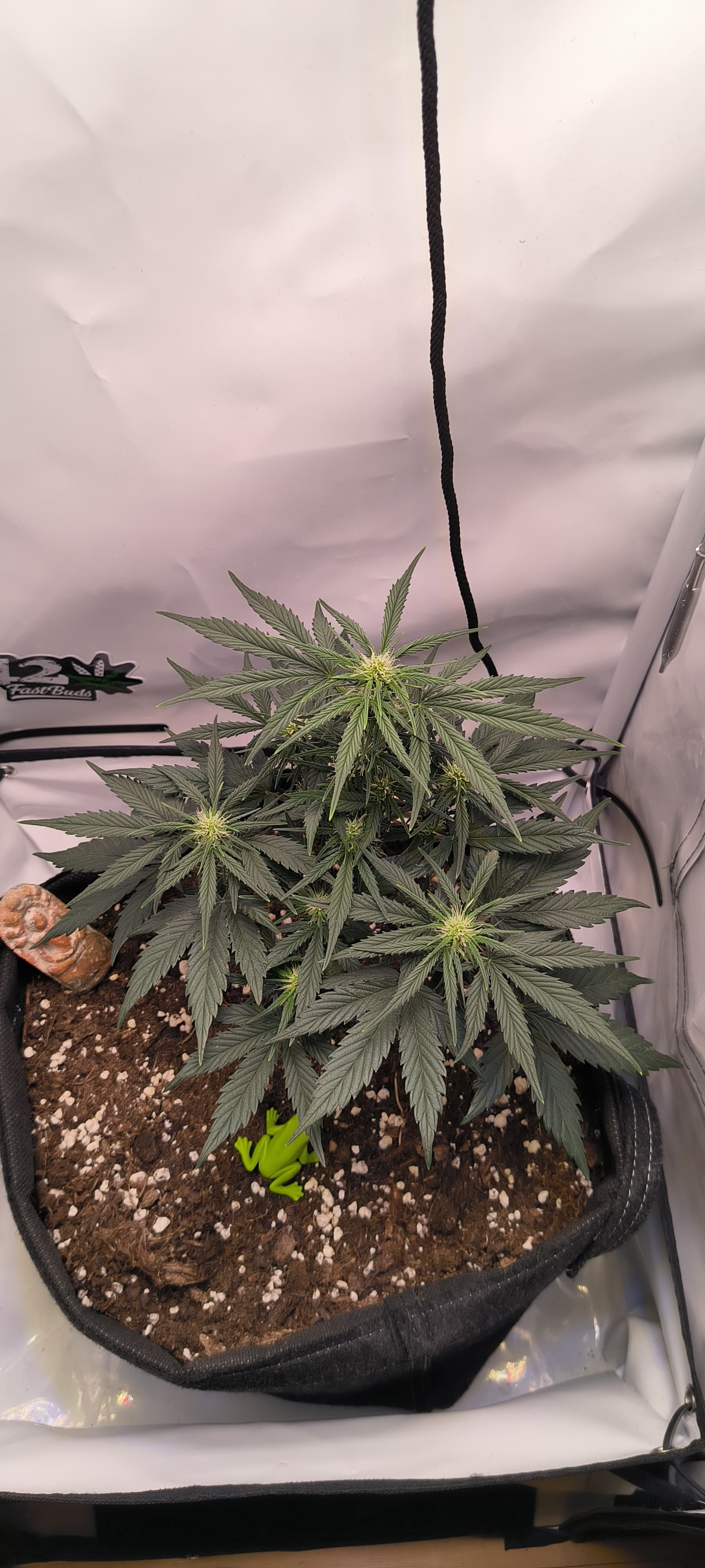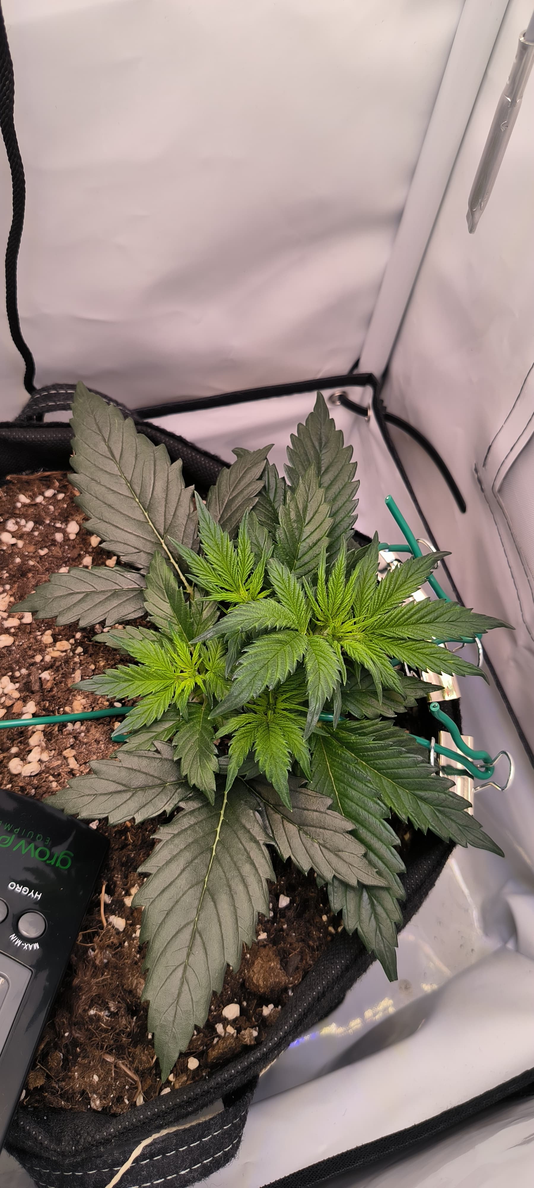 Auf der anderen Seite bin ich ganz froh das die Pflanze so klein geblieben ist(ca. 30cm) und das kleine Zelt die optimale Behausung ist.