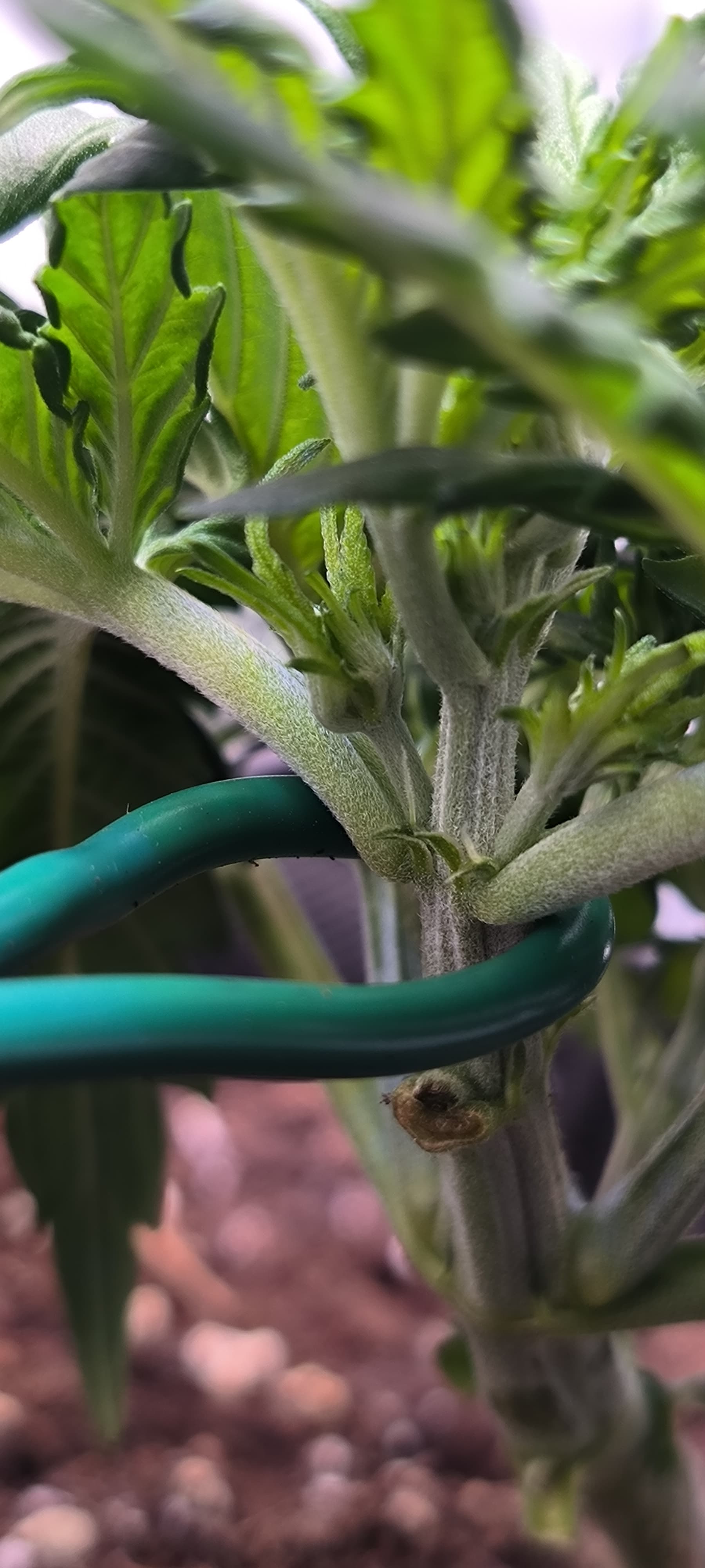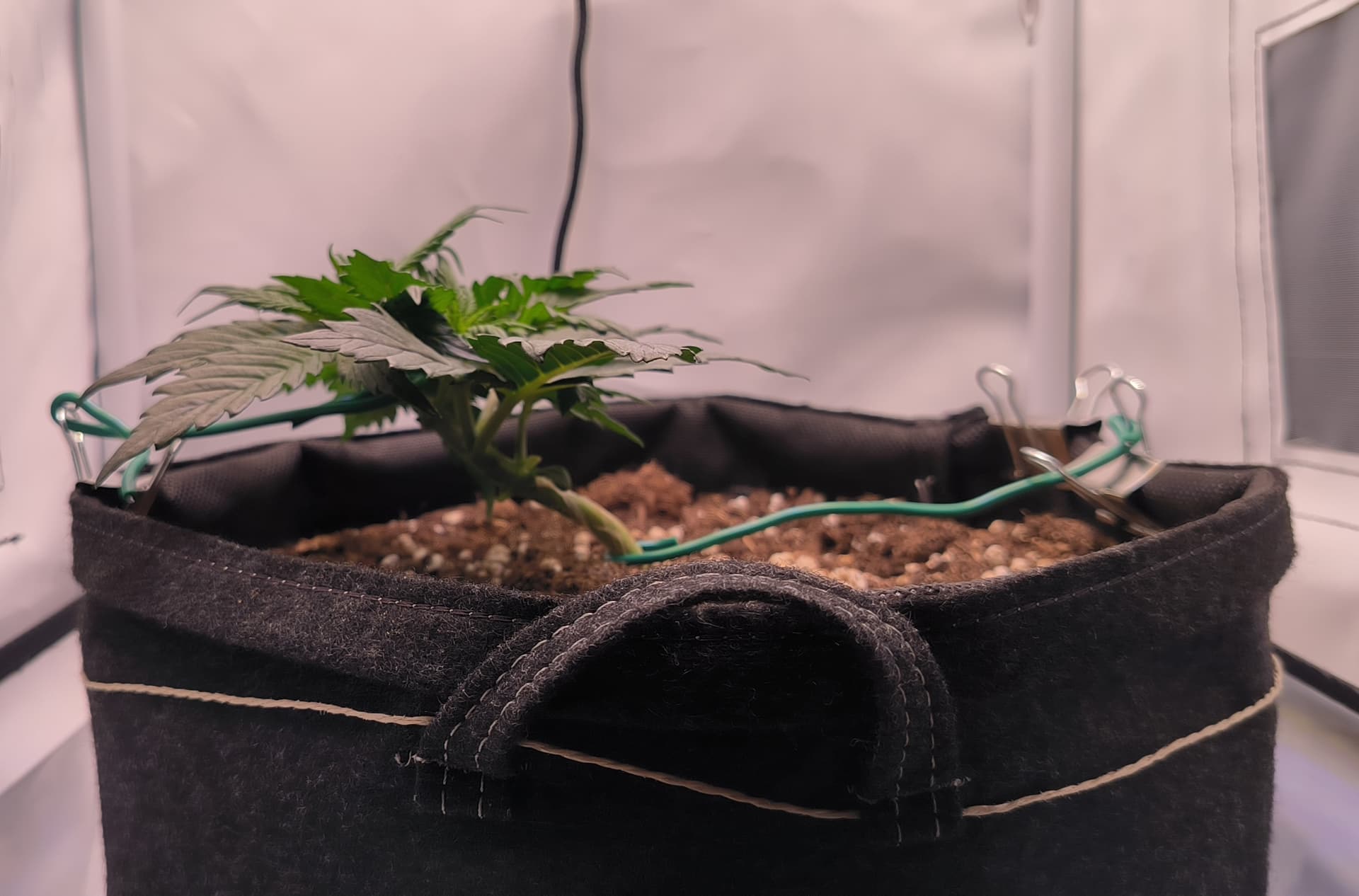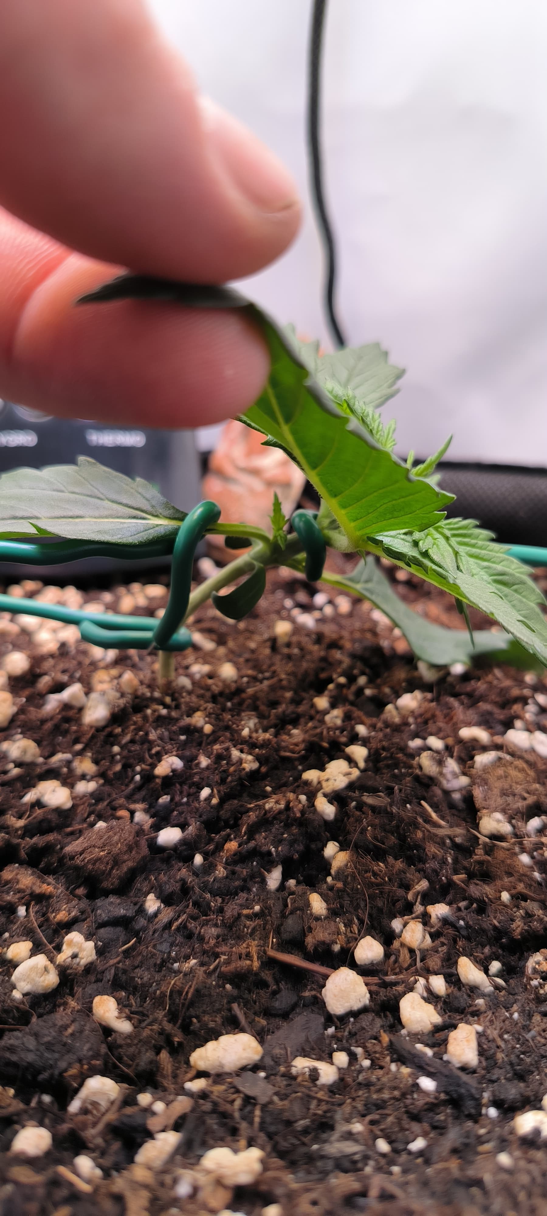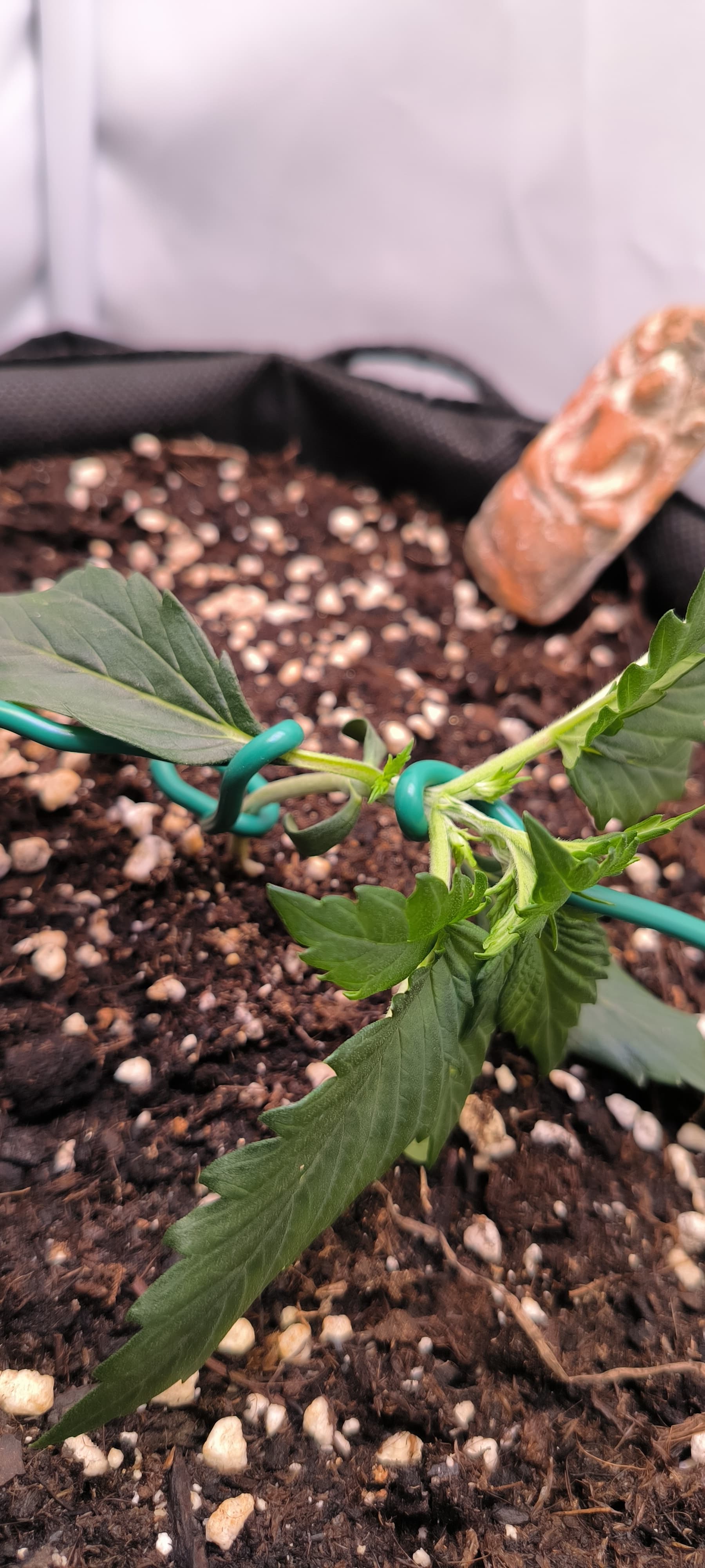 Desweiteren hab ich angefangen die Pflanze zu trainieren. Eines der Blätter musste weichen um den Lichteinfall für die Seitentriebe zu gewährleisten.
