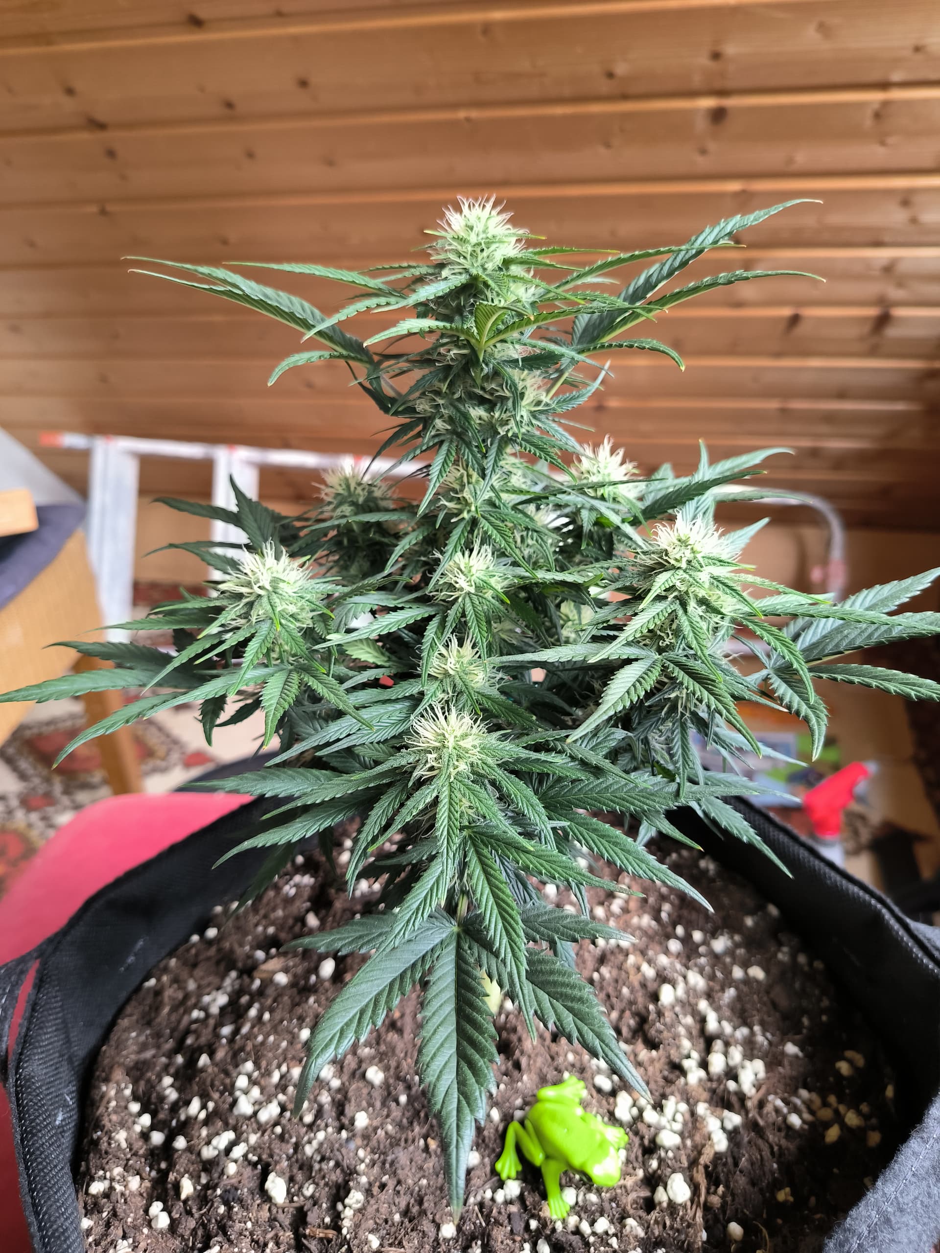Einen guten Eindruck macht sie trotzdem auf mich, die Vorblüte hat auch begonnen und es riecht schon dementsprechend im Zelt ![]()