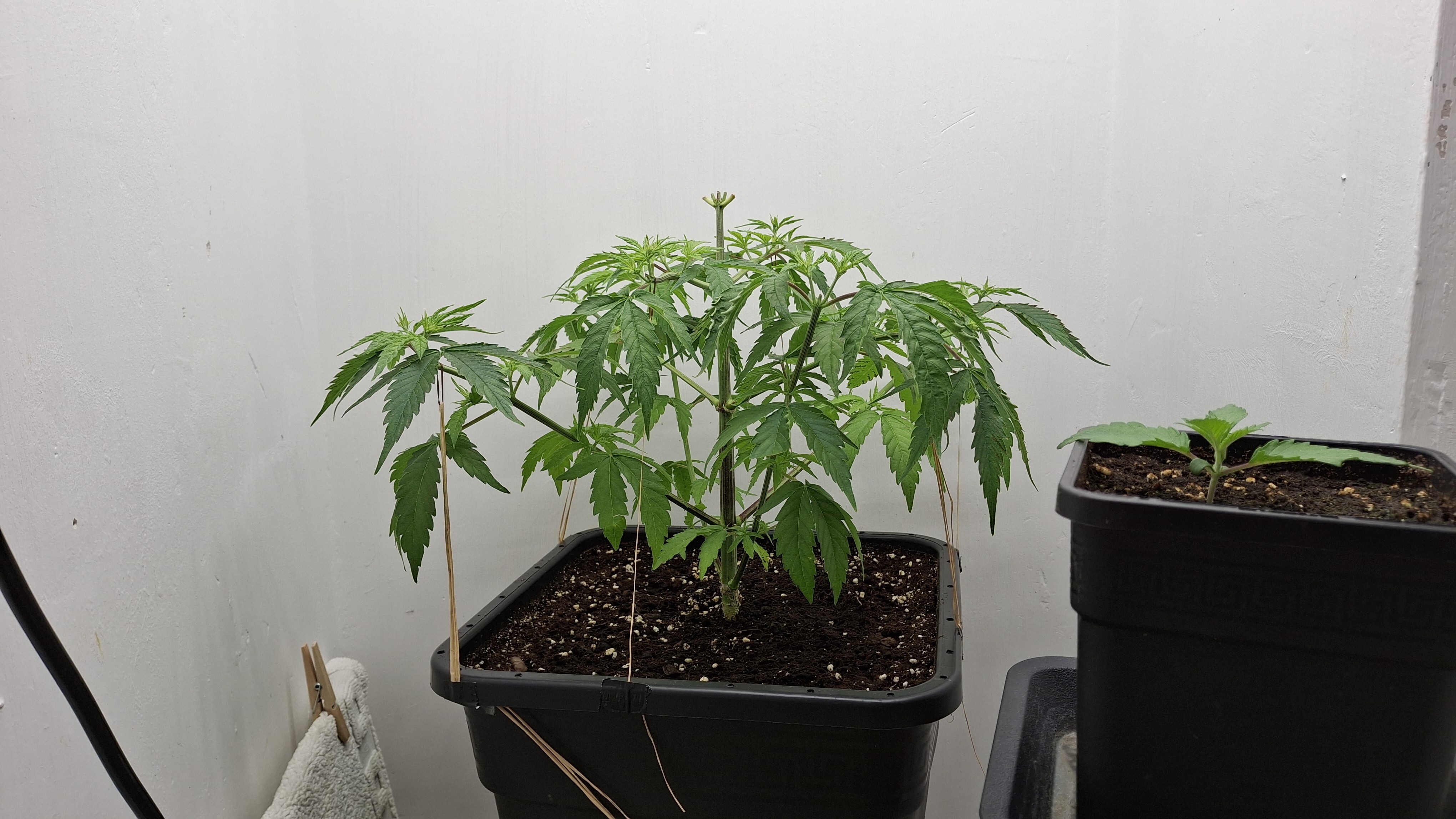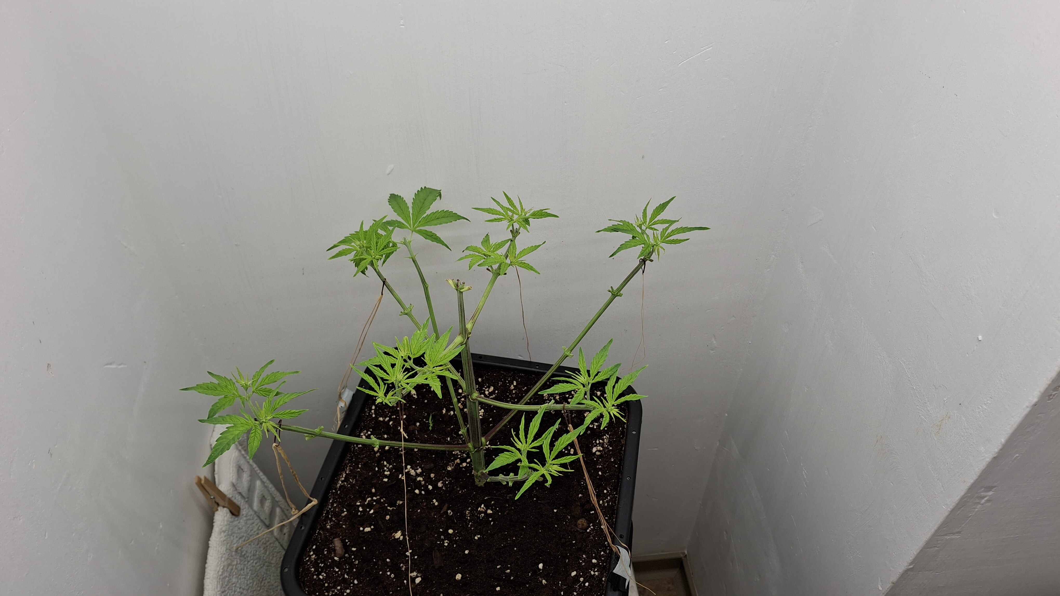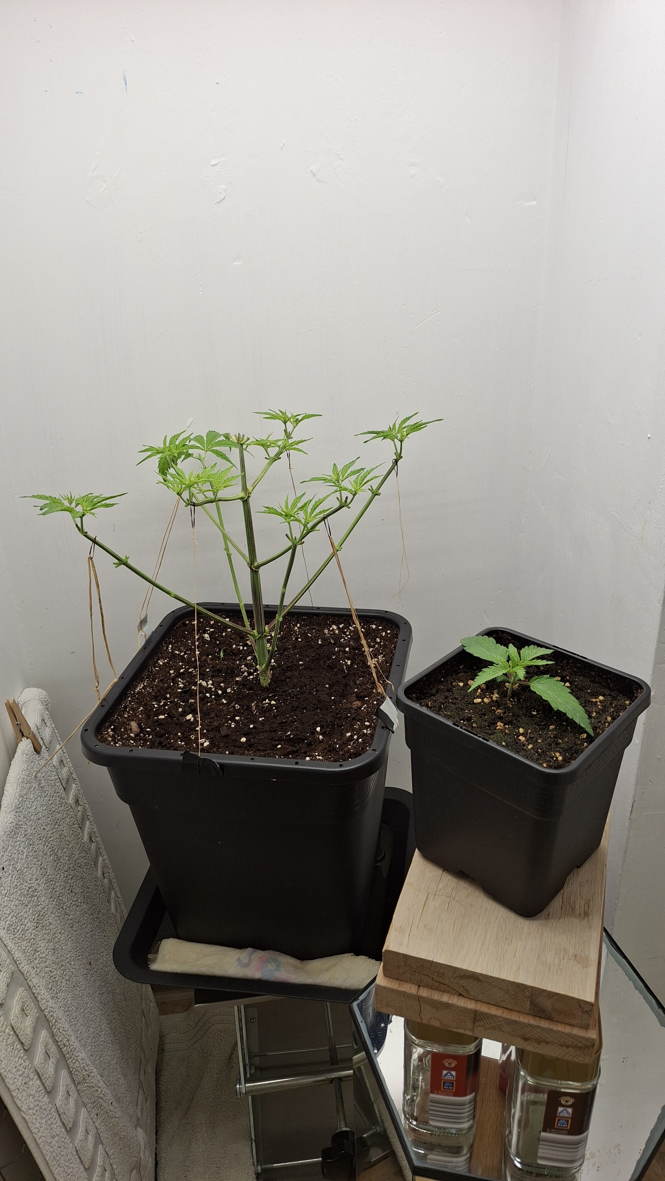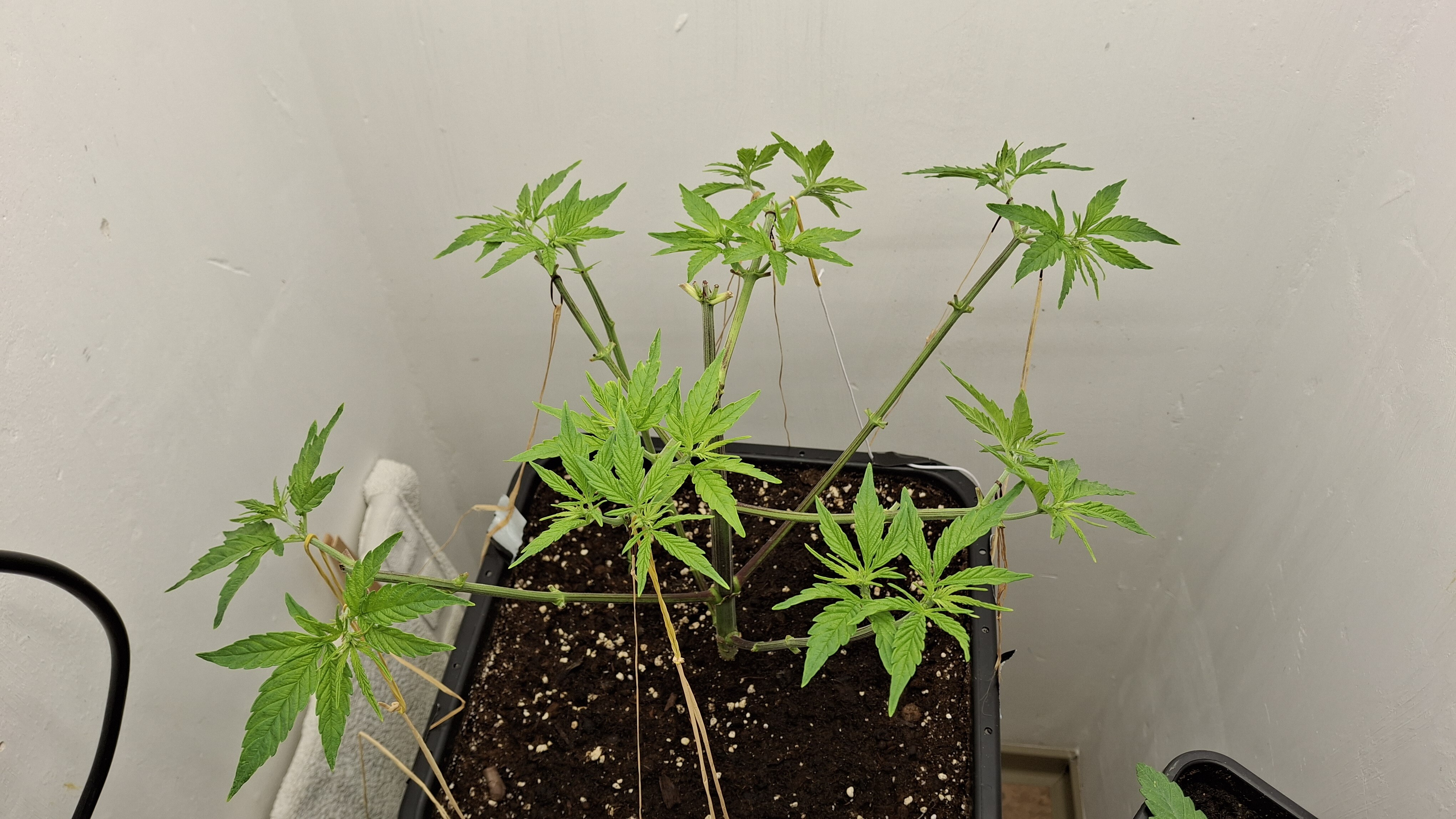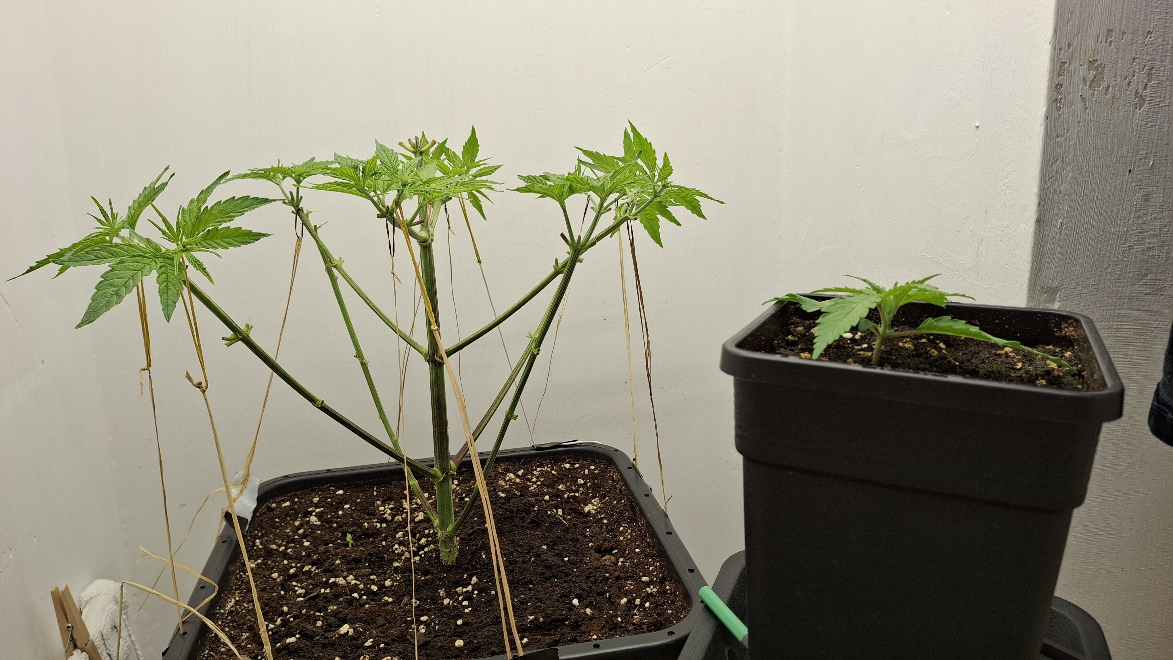 3 Tage später, Urea wirkt (immer). Allmählich sieht sie wie Cannabis sativa L. aus. Allerdings immer noch eine Katastrophe. Die angehenden Buddies wurde etwas gebunden um sie auf annähernd gleiche Höhe zu bekommen. Dazu wurden 3 Oreoz gekeimt. nach 48 Stunden zeigte sich die Erste. Nummer 2 wurde abgeknipst. Wenn wer Fragen hat, fragt …