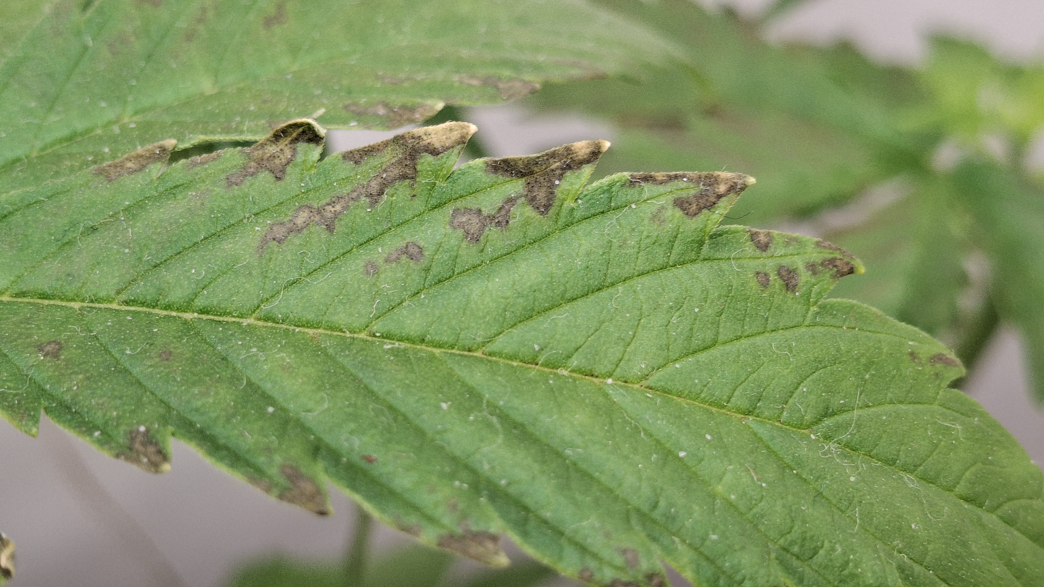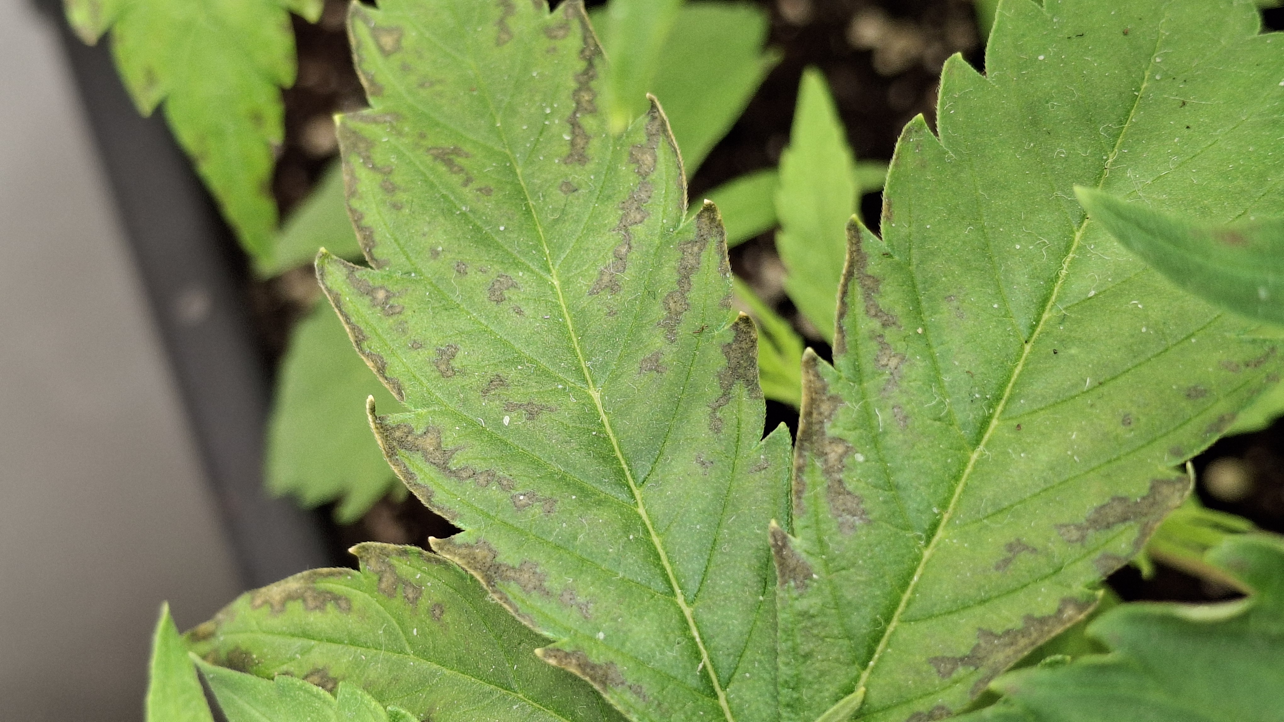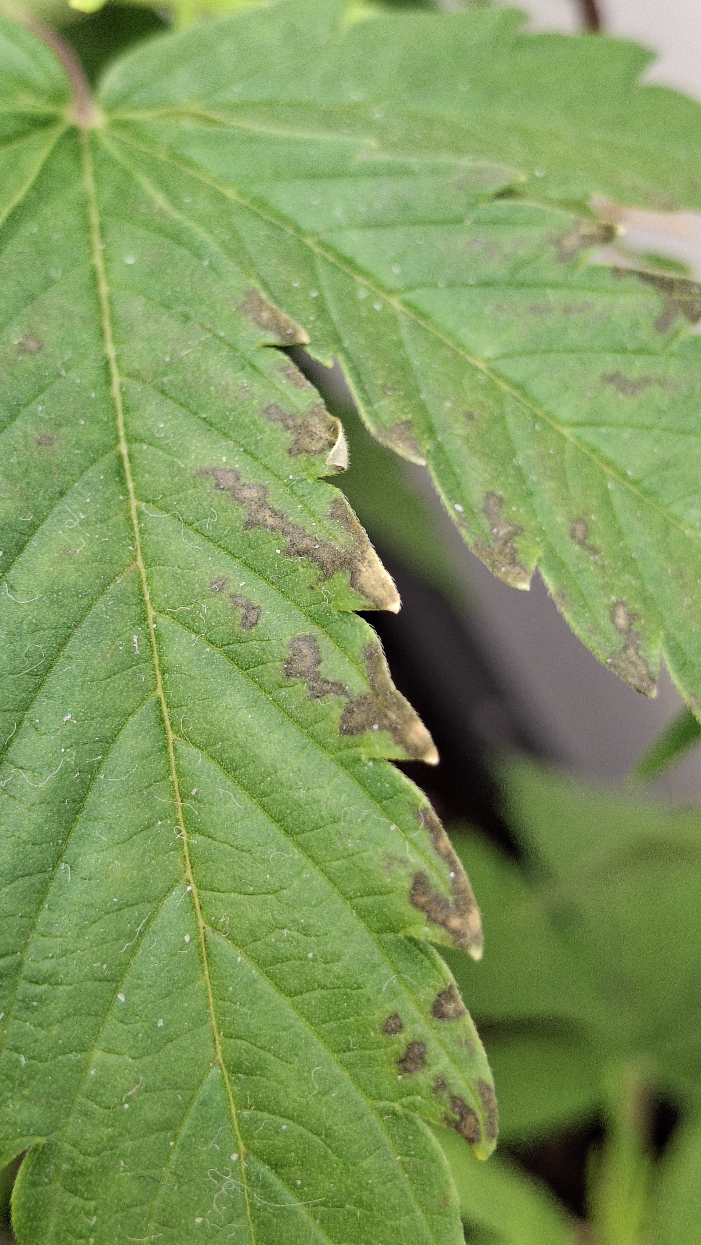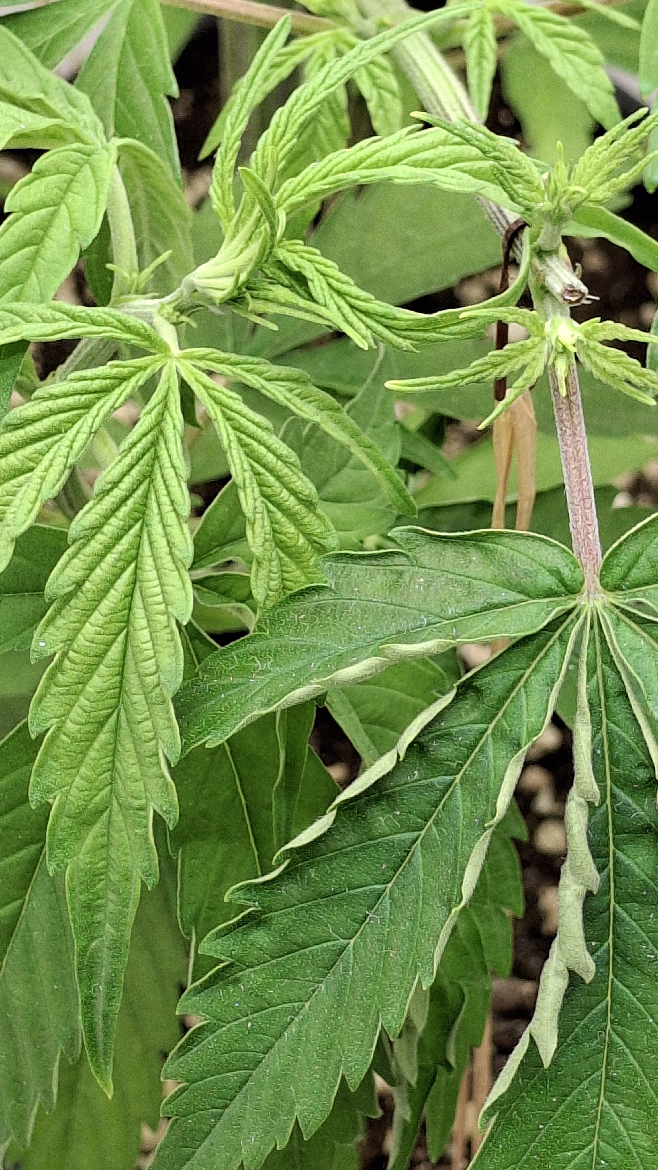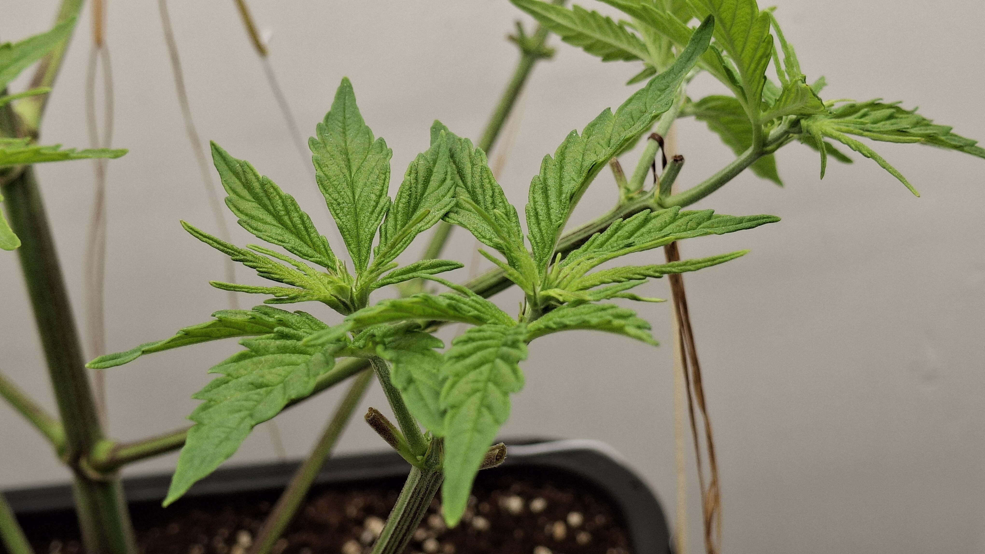 9 Tage ohne Wasser; der Topf täglich schwer wie Blei. Extrem verlangsamter Wuchs und sehr helle Blattfarbe. Sie ist nicht höher ale eine 1 Liter Cola. Die Blätter wellten sich immer noch. Vor 2 Tagen die welligen Blätter abgeschnitten. Die liegen auf dem Boden und sind „immer noch“ relativ frisch. Normalerweise kleben Blätter die man 48 Std. vorher abgeschnitten hat platt am Boden. Man kann ganz gut erkennen, wieviel Spannkraft die beiden Blätter nach 48! Std. noch haben … kein Plan, aber es ist dubios und für mich nicht erklärbar. Genetik!? Muss! Aber i-wie spooky. 9 x Schrott aus 2 verschiedenen Quellen!? Oder ist der Skunk kaputt?! Keine Ahnung. Im nächsten Update sattel ich um auf Oreoz … da läufts gerade normal …