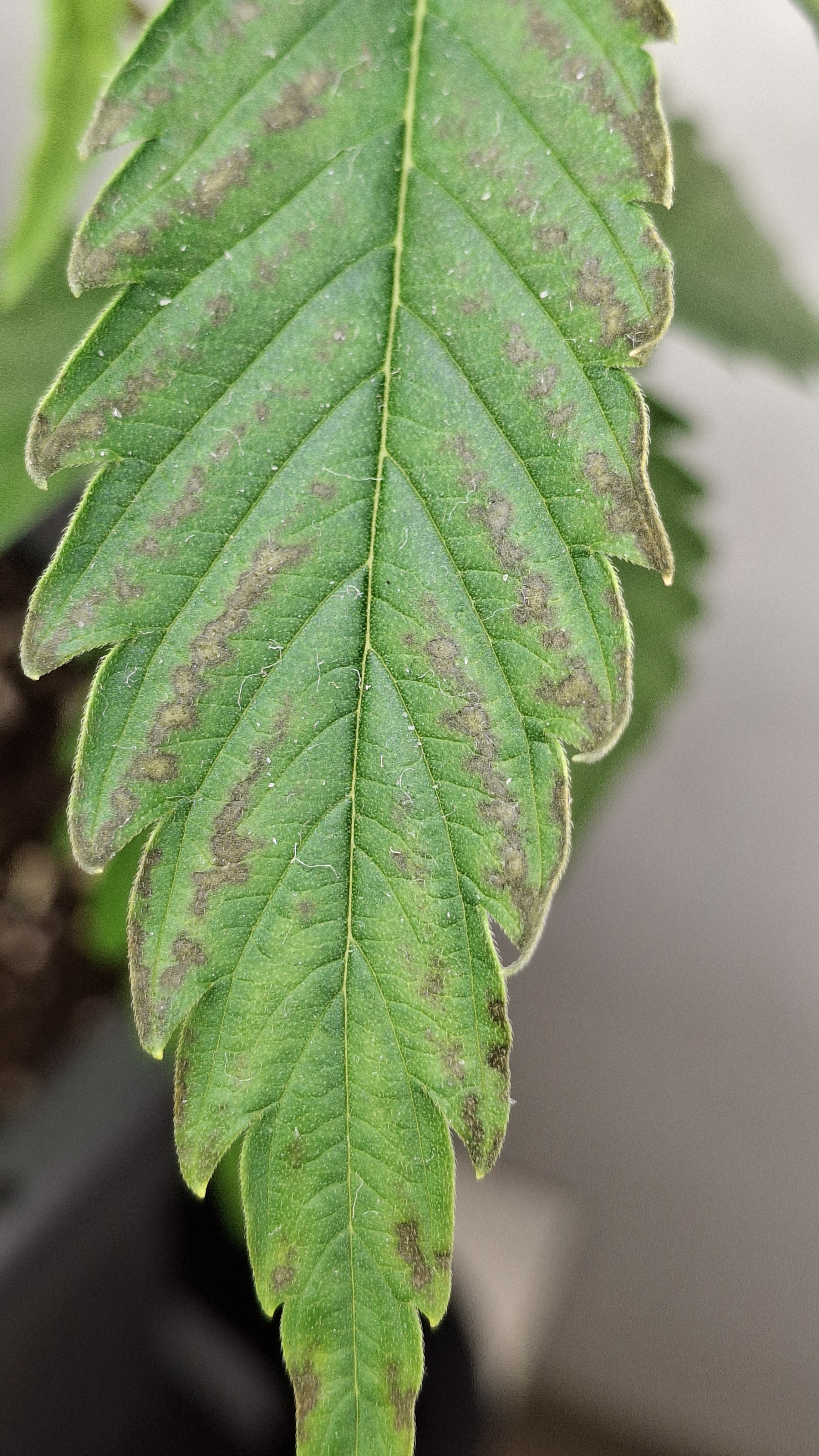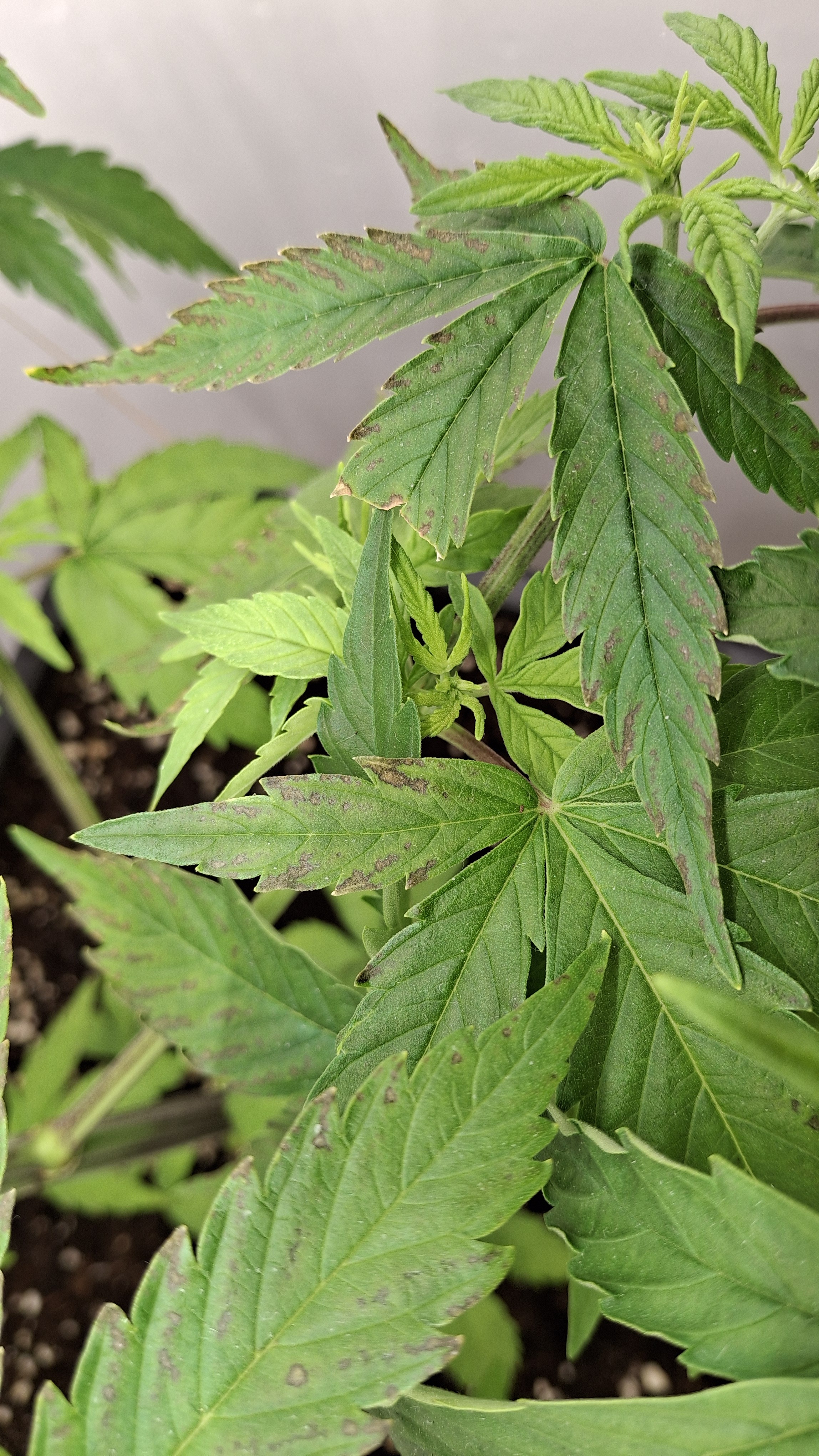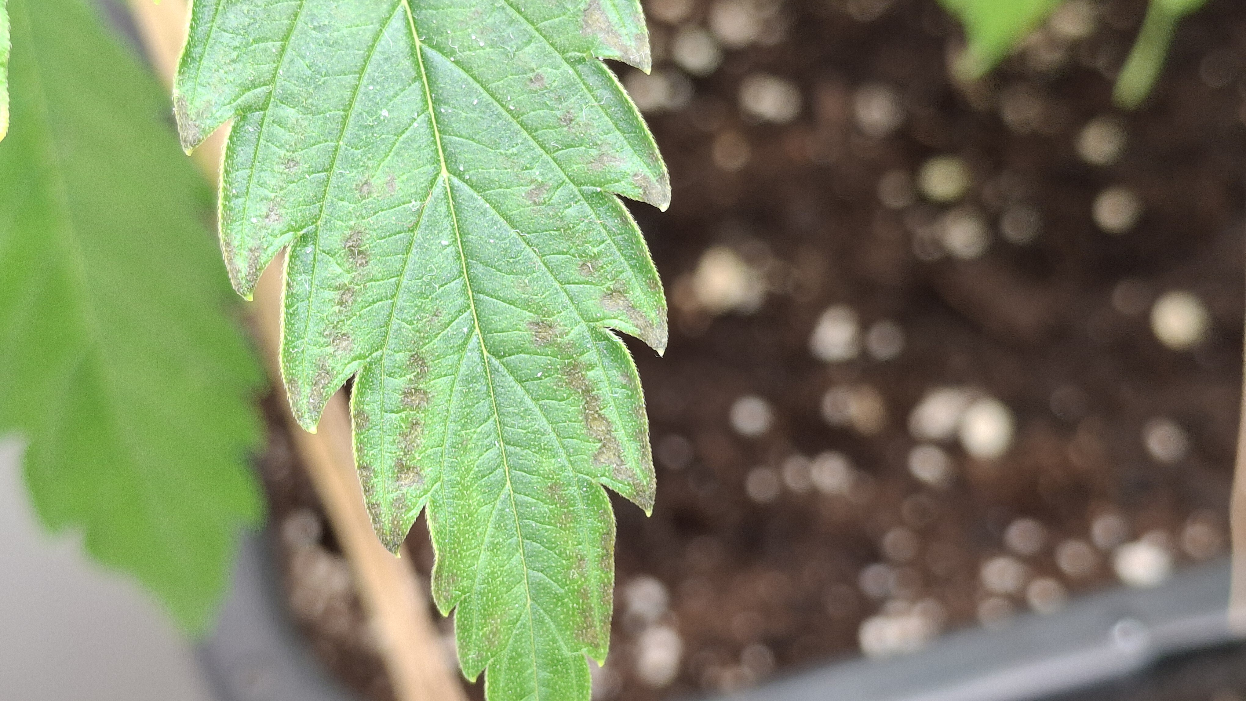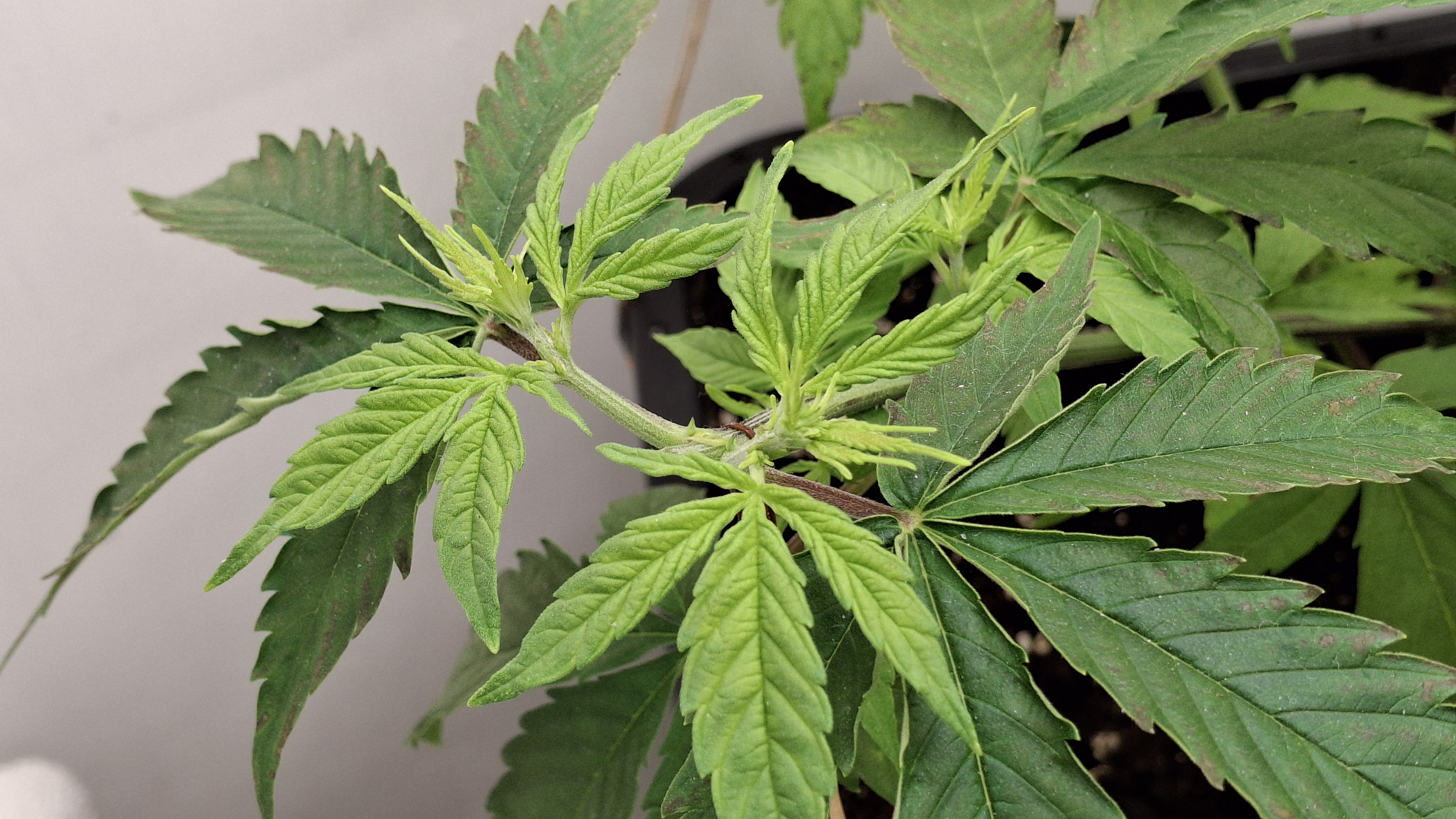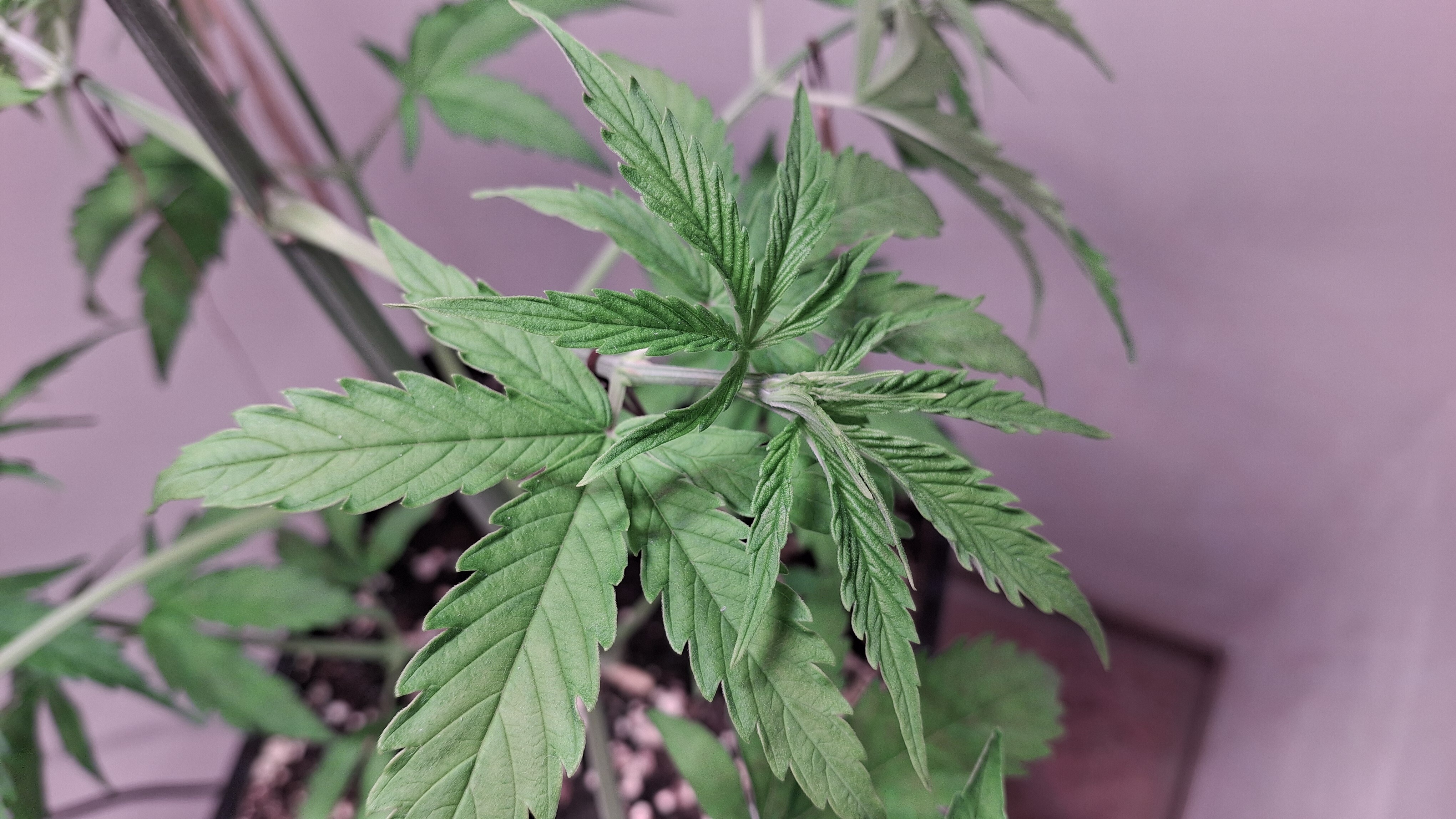 Diese Lady so gerade eben^^ - sie hat ein gutes Grün und die N-Dröhnung kam definitiv an und hat nicht geschadet; aber sie ist und bleibt eine Mimose und ihre Genetik ist schwach. Sie hatte tagsüber um die 24,5° und nachts ca. 22° bei durchschnittlich eher trockener RLF - ca. 45 %. Ich wiederhole, sie steht in frischem Bio Bizz LM und bekam 60 Watt aus 2 Sanlight M30 im Abstand von ca. 33 cm. Alles wie immer! Auch habe ich das hiesige LW nochmal recherchiert und es hat sich nichts geändert. Alles wie immer!