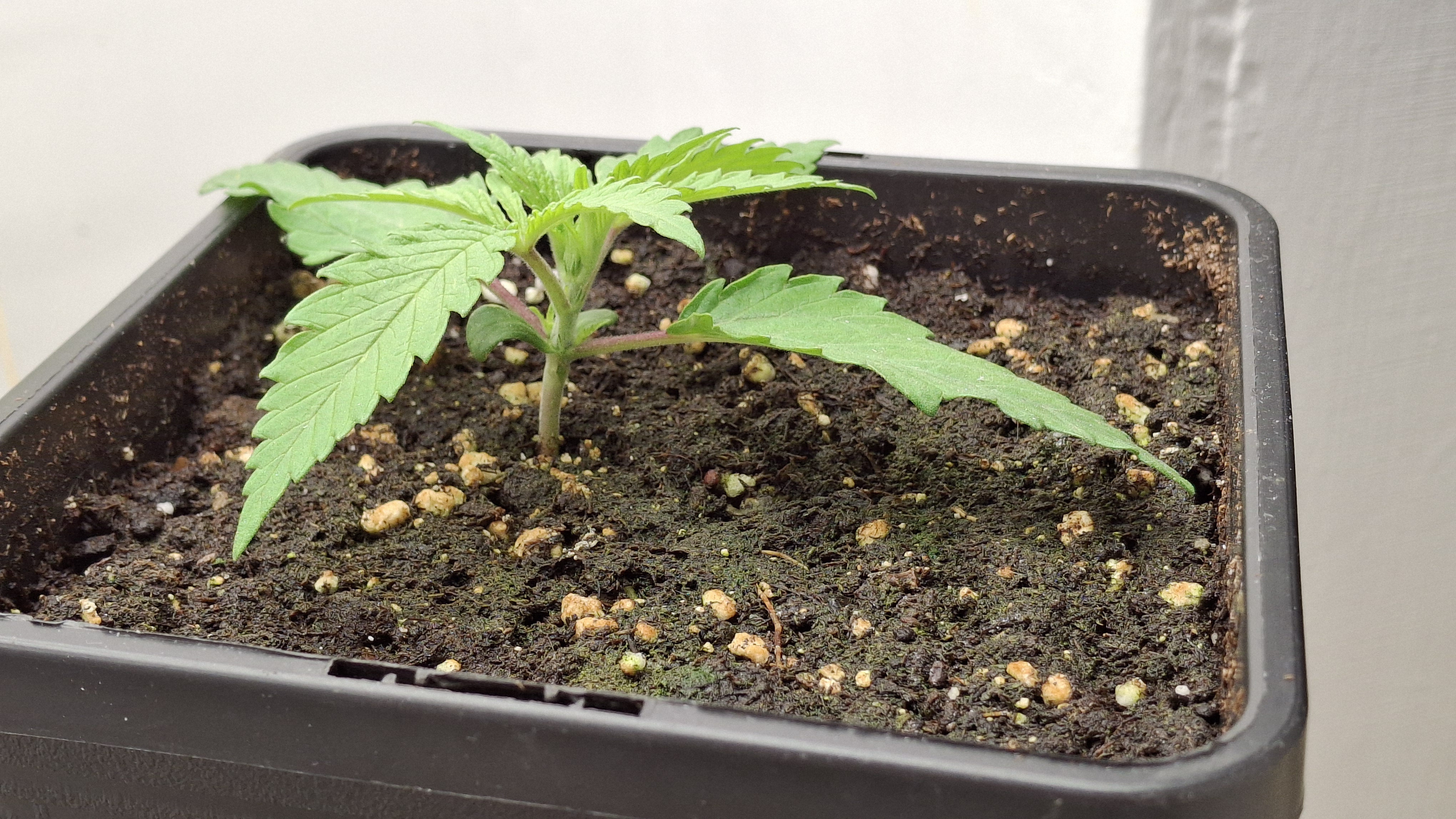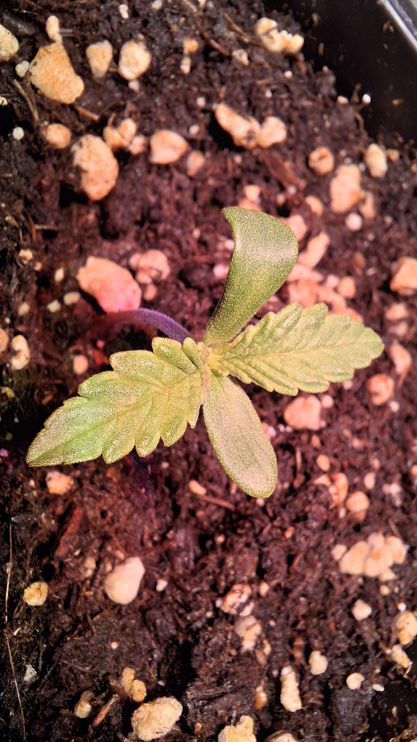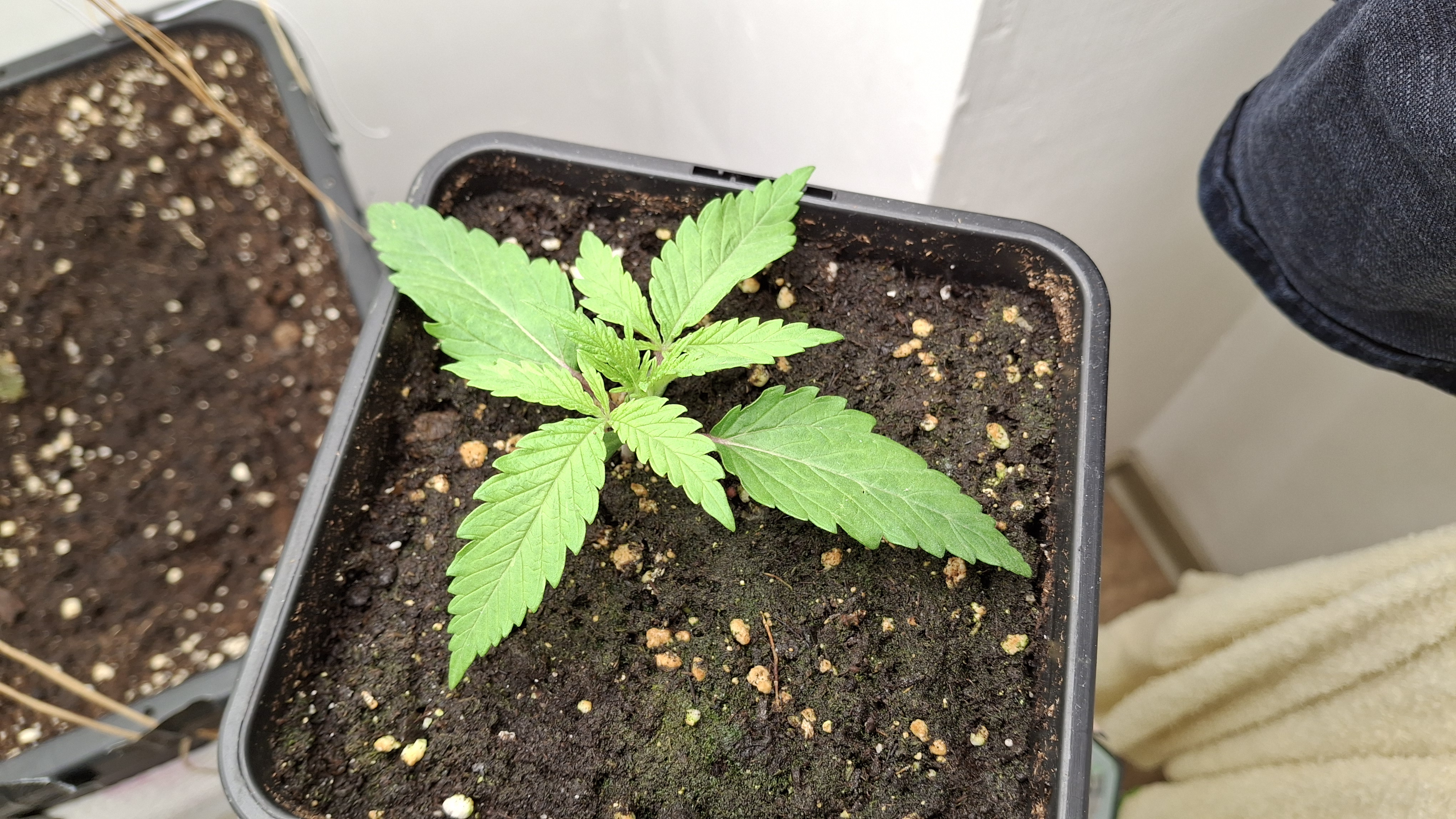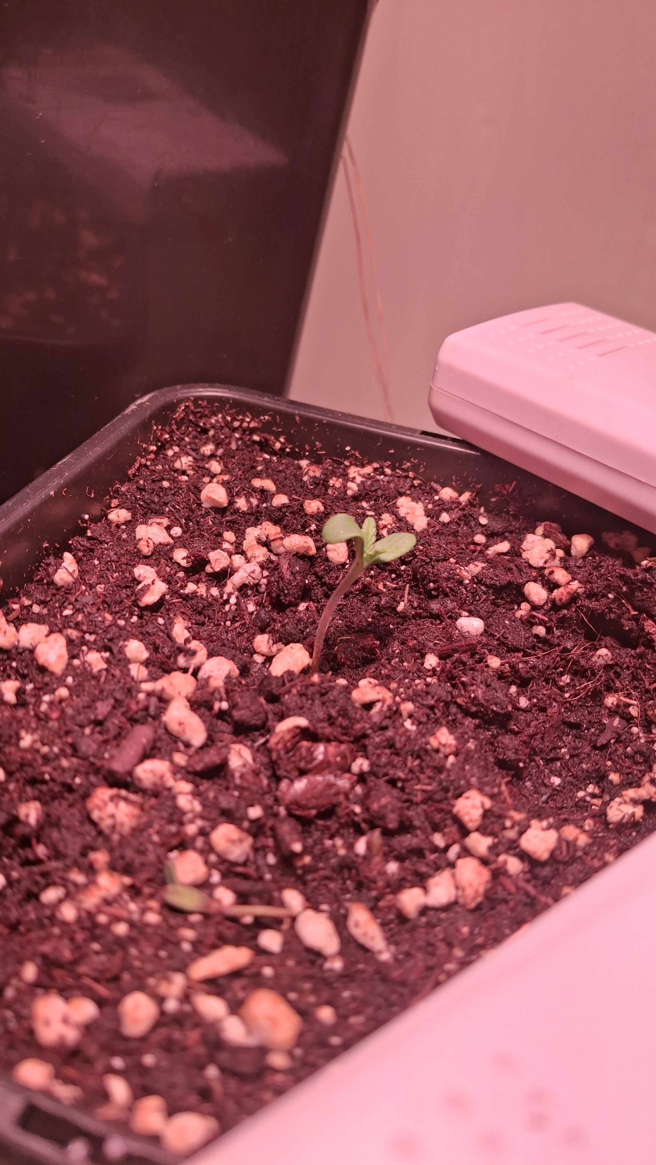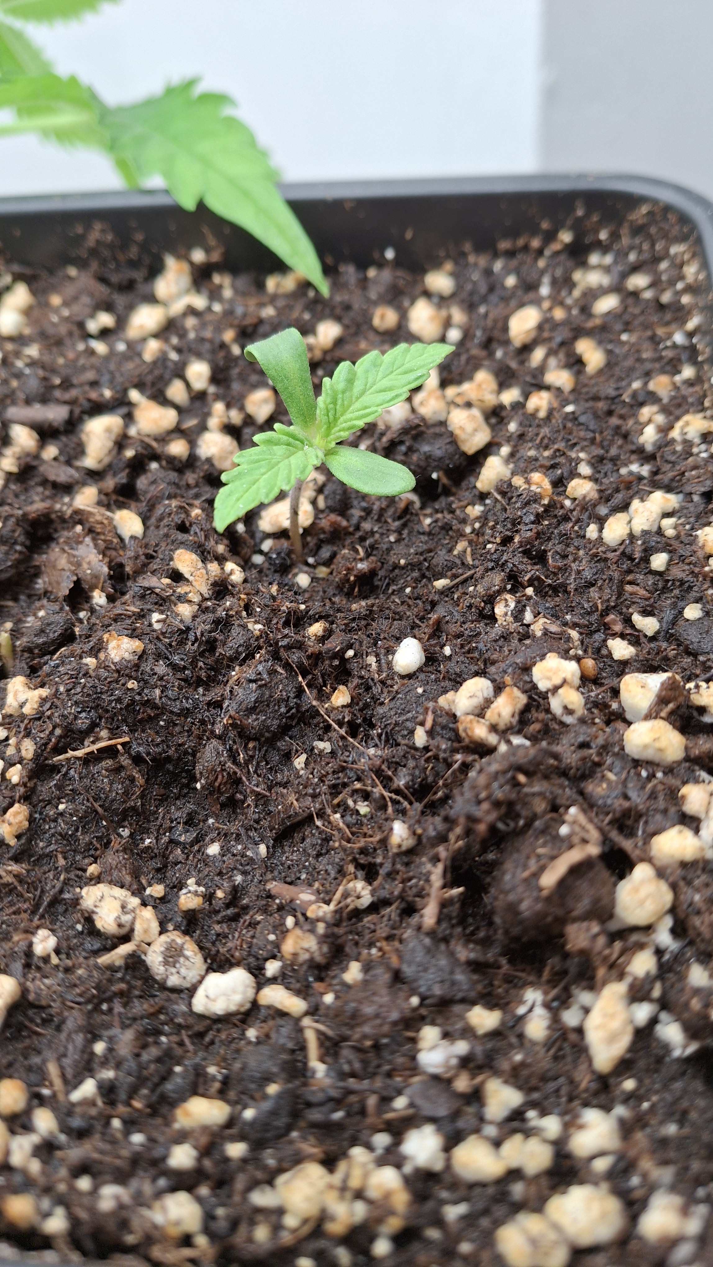Das 4er Pack von Sensi Seeds war blind. Darin war die Mutation die oben zu sehen ist. Die 4 White Label Samen waren frisch aus 07/25. Dann 3 Kügelchen aus dem regionalen Grow-Shop gekauft. Alles Blindgänger bis auf die kleine Lady auf dem Foto hier. Sie ist jetzt ca. 3 Wochen alt, wurde sehr unregelmäßig beleuchtet, hatte kaum Dunkelphasen, stand ca. 3 Tage auf der Fensterbank und steht jetzt einfach so mit im Bunker. Mal sehen was passiert mit dem Kernschrott. Dann nochmals 2 Samen vom regionalen Grow-Shop. Einer ist ebenfalls wieder nicht aufgegangen und dieser hier hat sich im Papiertuch einen Spalt geöffnet, dann war auch hier Stillstand. Ich habe ihm die komplette Hülle abgenommen und dann den ganzen Klops in Pott geworfen. Und, dieses Mal hat es geklappt.