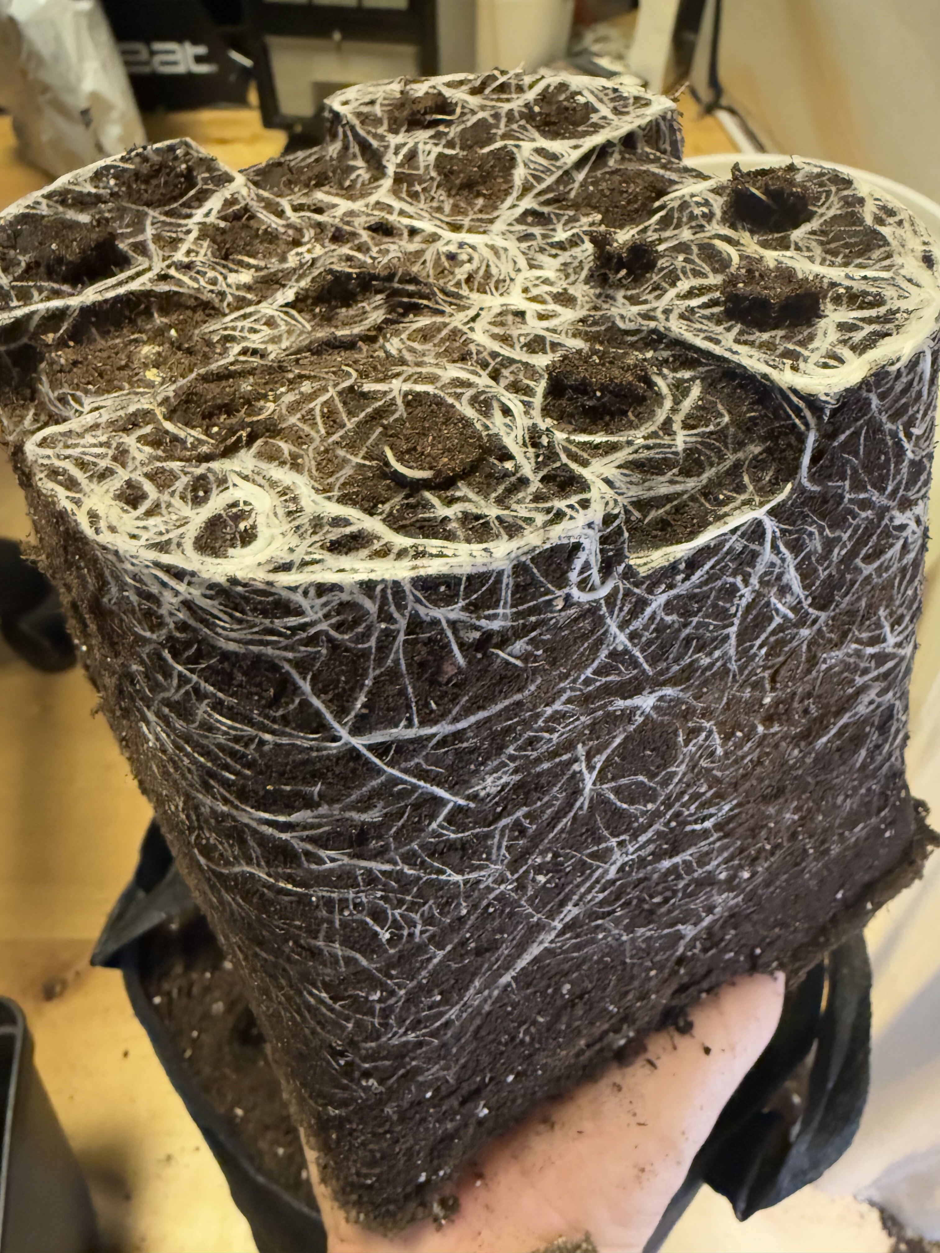 Töpfe genommen, drunter geschaut, die Wurzeln kamen raus, also schnell die Stofftöpfe hergeholt und umgetopft.