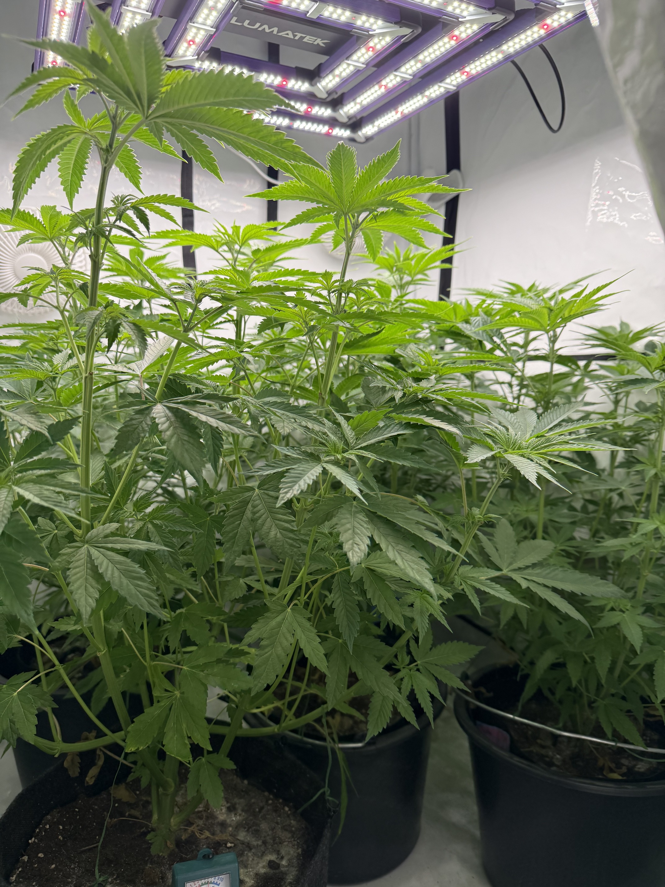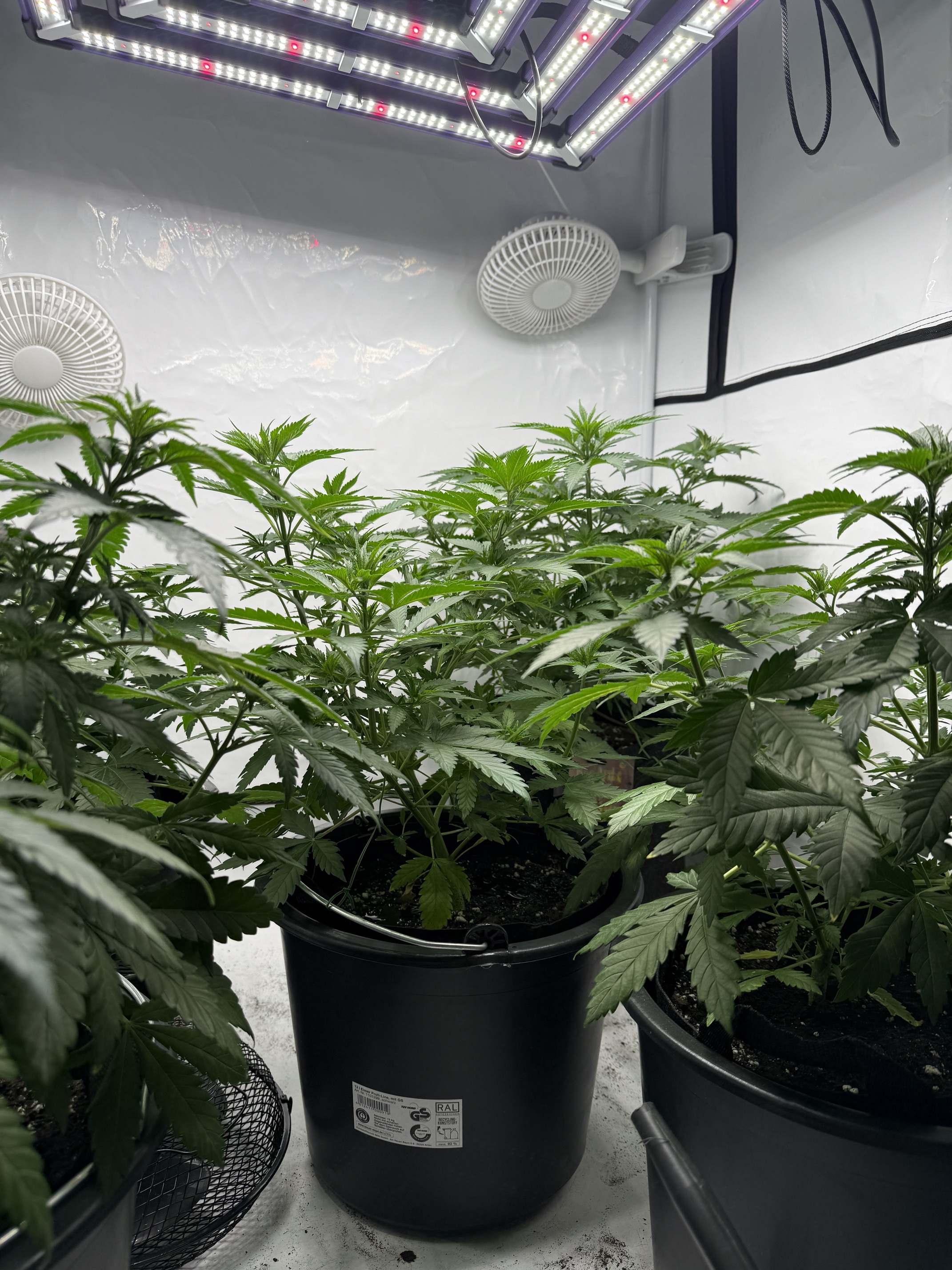 Sollte eig. Morgen die 15l gießen, werde aber versuchen das bis zum Wochenende raus zu zögern, damit ich den Blütedünger auf die Erde gebe und alle einmal gieße, da die 11l noch genug Wasser haben. Entlauben steht noch auf den Plan an dem Tag, dann sollten sie ready sein für die Blüte.