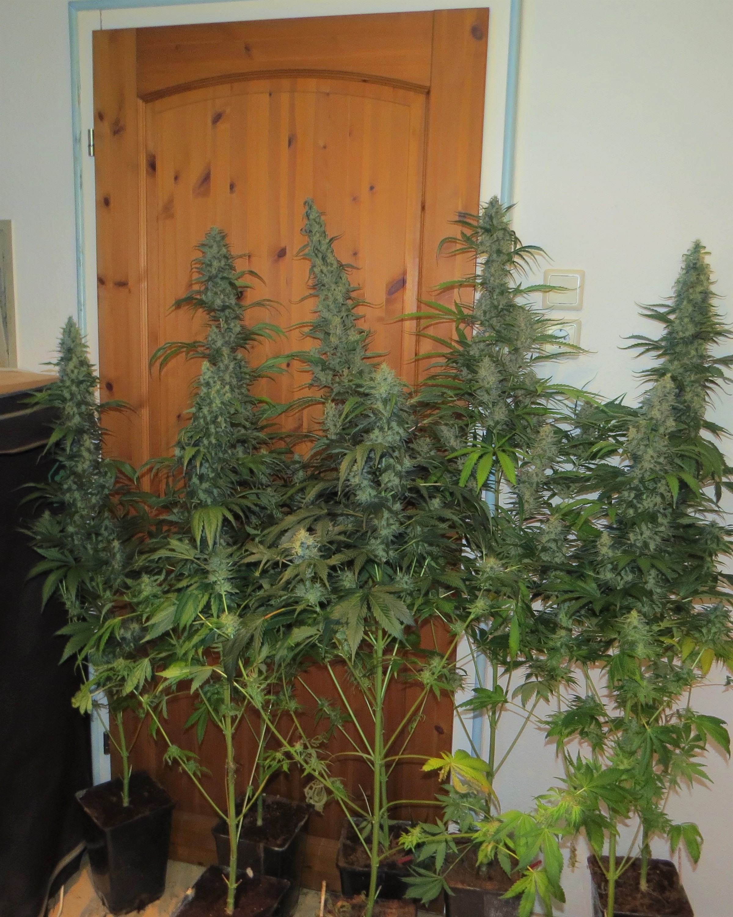 Ich plane mit jeweils 3 Amnesia und 3 purple Haze im 5l Endtopf ins Rennen zu gehen. Waren beides fem seeds geschenkt und ich wusste eh nicht wie am besten zu verwerten im kleinen Zelt. Sind offensichtlich Sativas. Anhand deiner Bilder (Steckdose als Referenz) gehe ich bei 5L Töpfen von einer Gesamthöhe von etwa 1,2m max aus. Von der Fläche her bin ich mit 6 auch am oberen Limit. Wie ist deine Einschätzung?