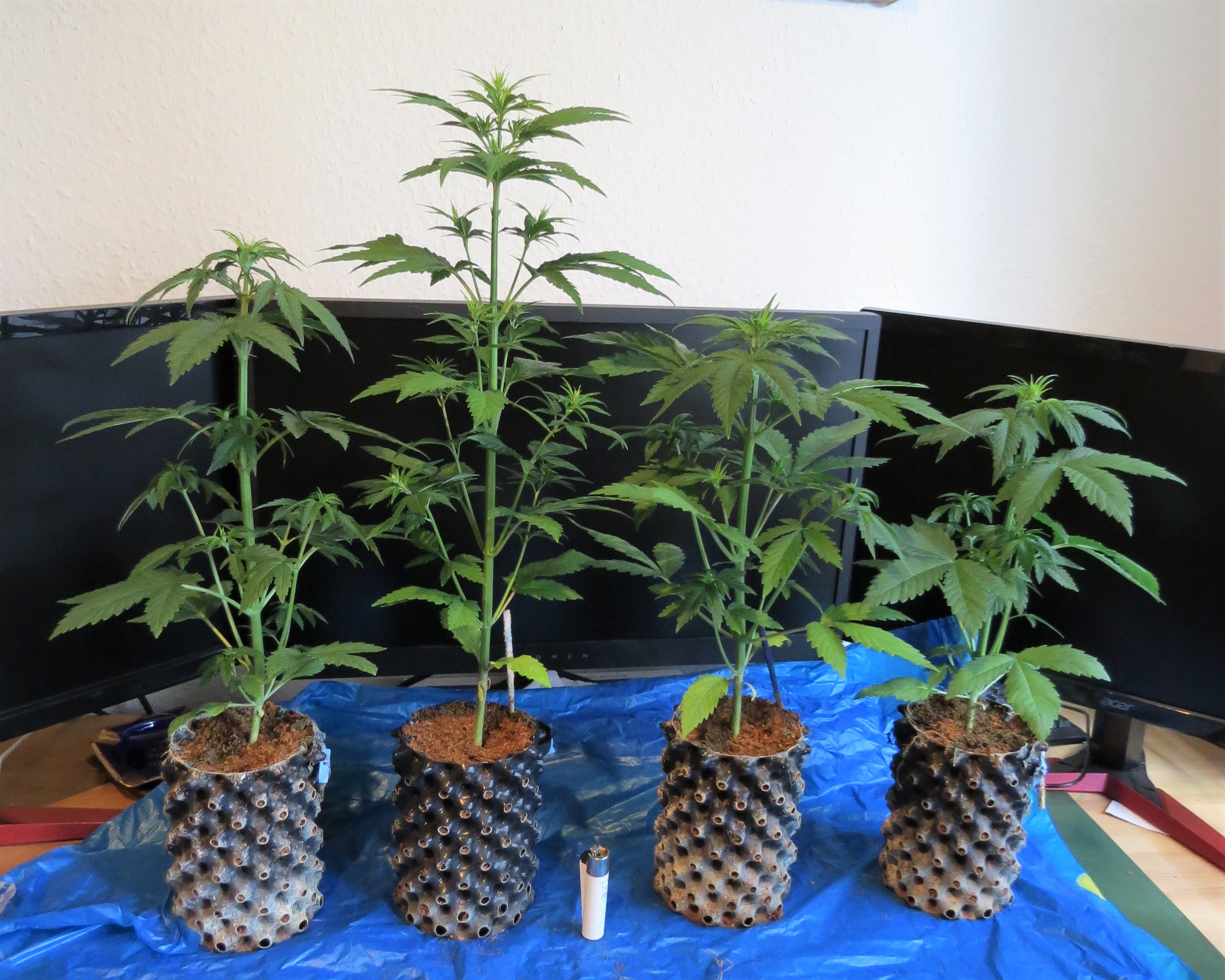 Warum ich mich für Air-Pots für die Anzucht entschieden habe, sieht man hier. Die vielen Seitentriebe sorgen für ne Gleichmässige bewurzelung in den Tekus.