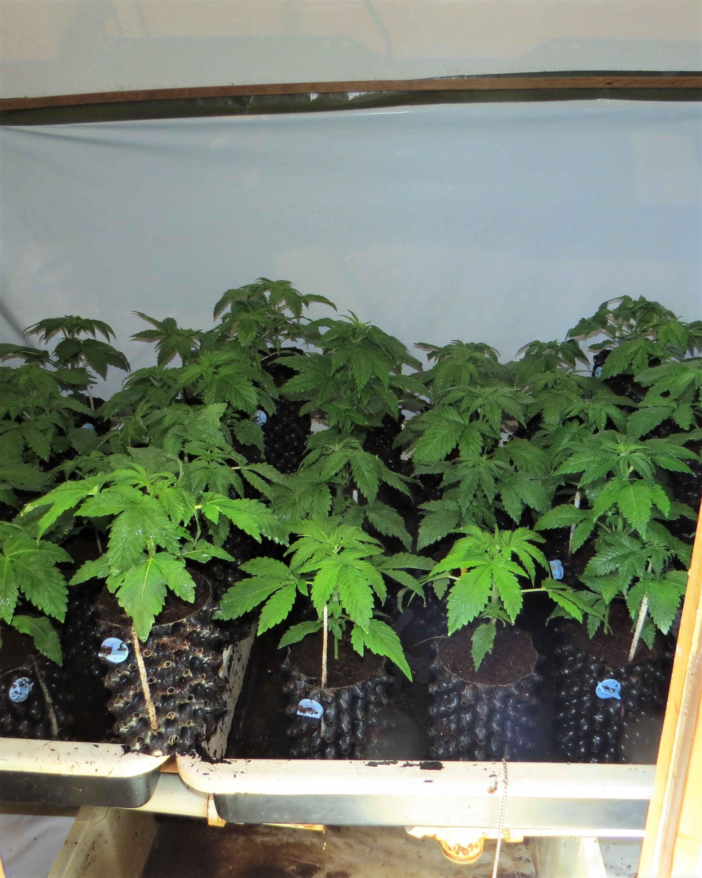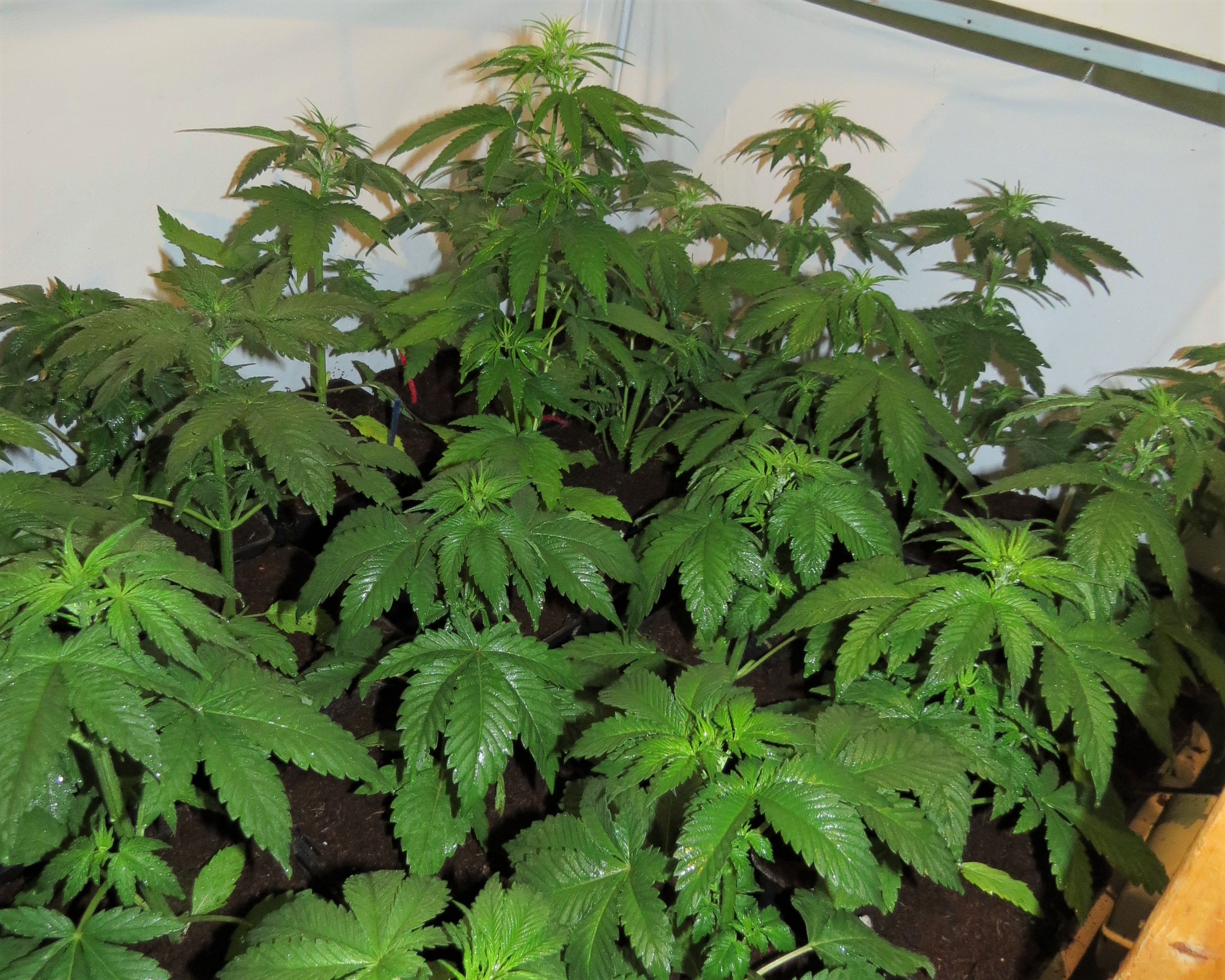 Läuft gut. 3 Plantz habe ich Heute Aussortiert. Die zeigten Sonnensegel mit 9 Blattfinger, während die anderen Teilweise den wechsel von 7 auf 5 Blattfinger bereits machen.