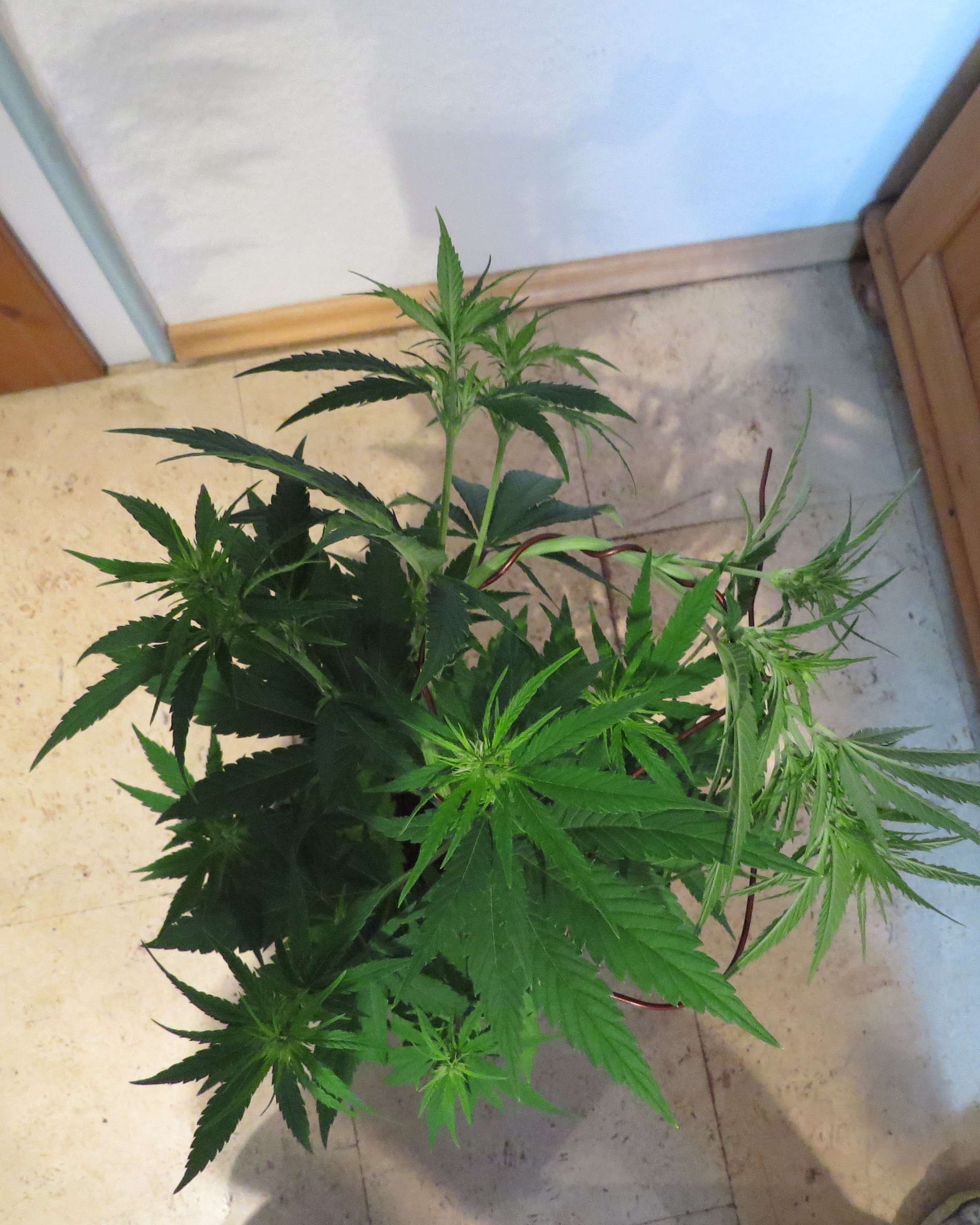 Nach dem Umtopfen wurden die Pötte nochmal angegossen, und nochmal vor der Blüte mit Schädlings „Abwehr“ eingesprüht.