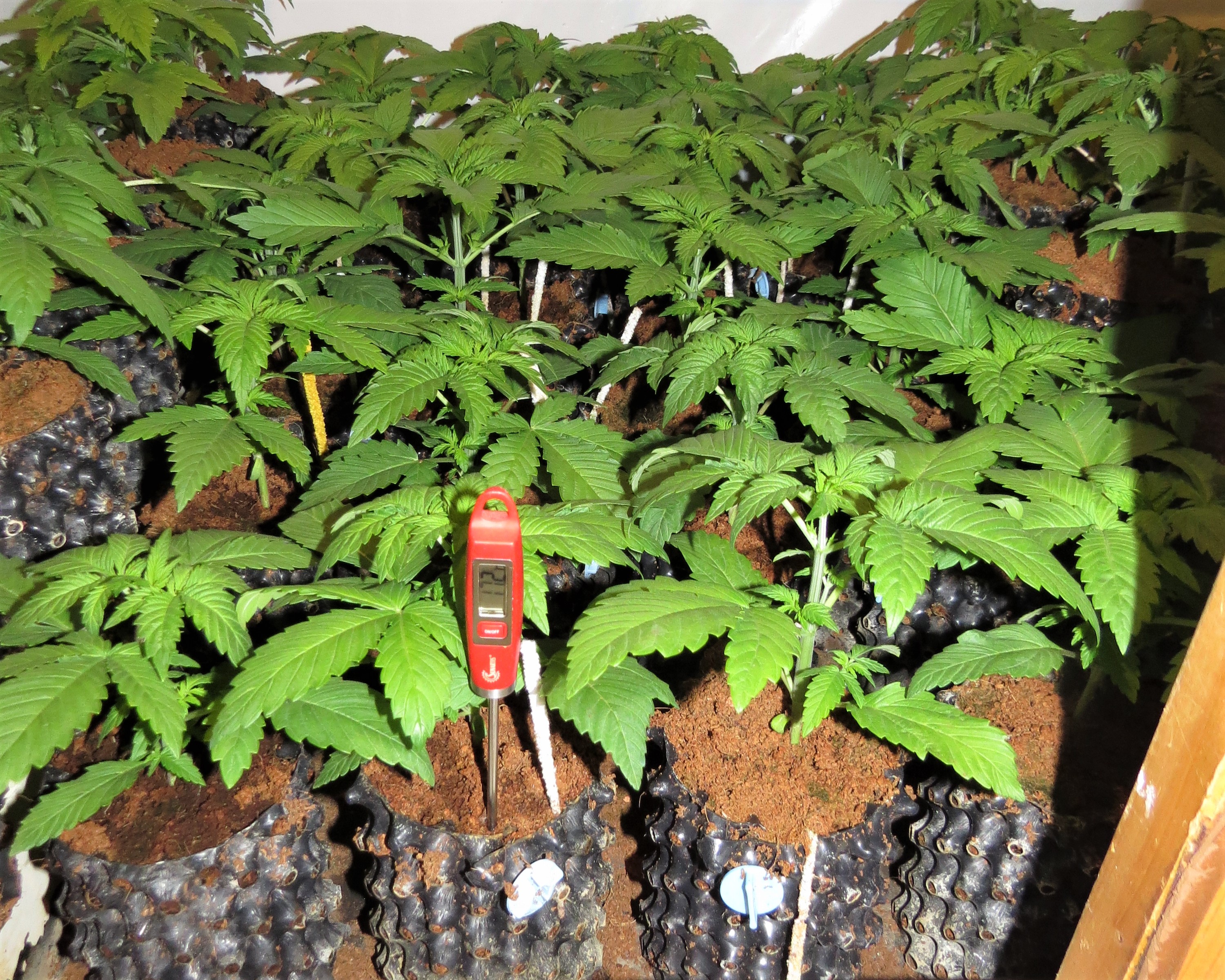 Als ich Heute in den Garten schaute, sahen die Pötte schon was troken aus. Die arbeit von Heute hätte ich besser Gestern schon gemacht. Außer dem vergessen das Fenster Heute Nacht zu schließen, die Bodentemperatur auch geich in den Keller gegangen.