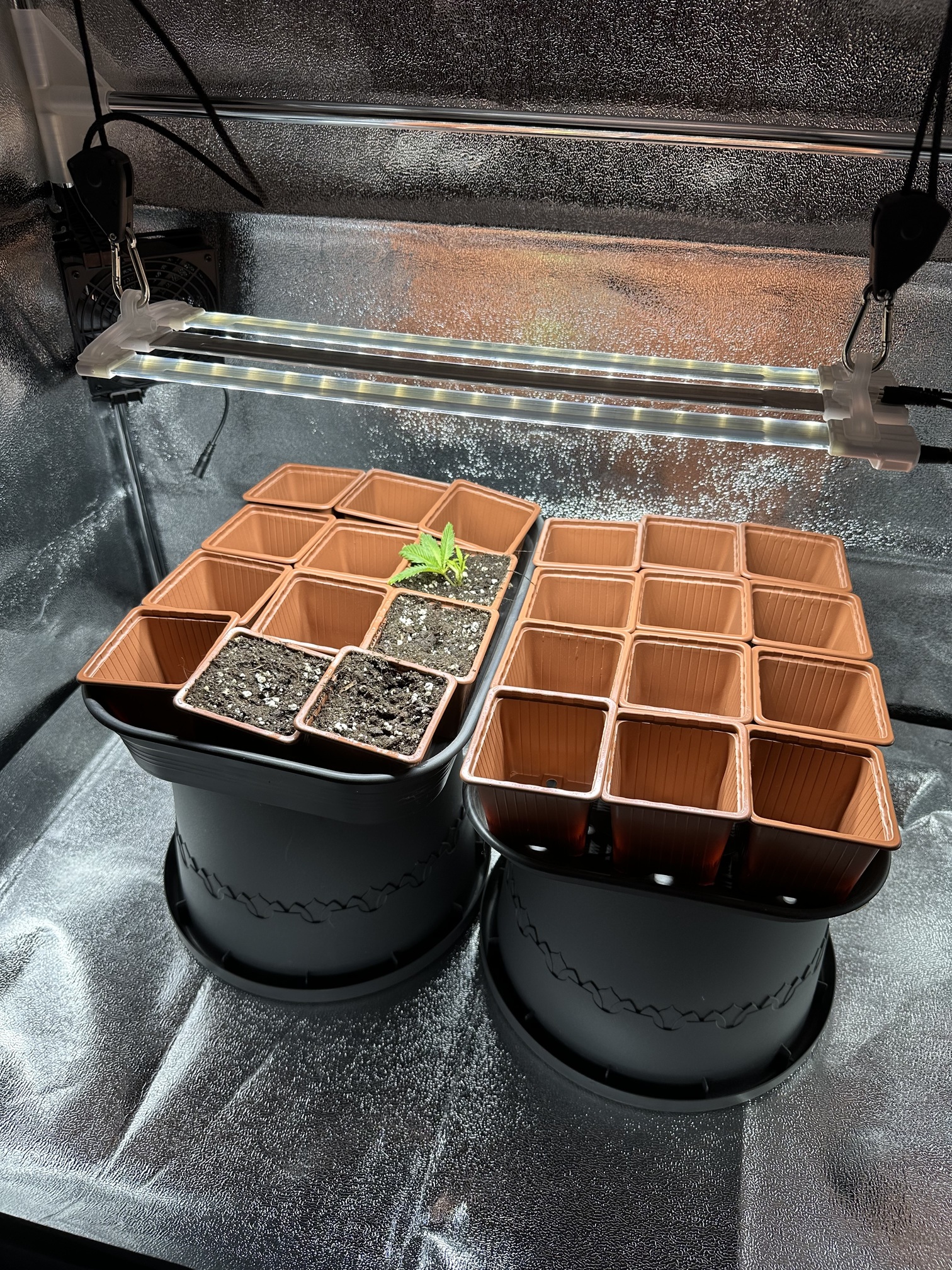 Leider wegen der 3 Pflanzen-Begrenzung eher blöd und da ich die Lampe nicht dauerhaft betreiben will mit „zeitversetzt blühen oder so nen Quatsch“ mache ich es einfach mal so. Man muss alles ja mal ausprobieren.