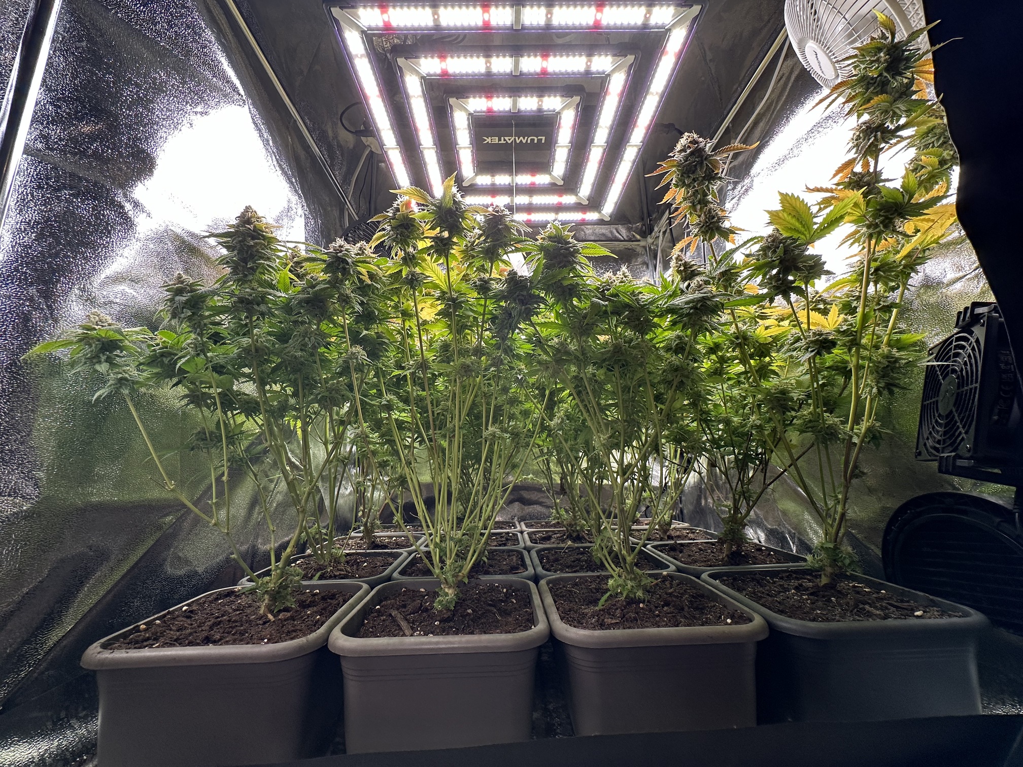 Muss allerdings sagen, dass es schon Spaß macht da jede Pflanze recht klein ist und man sie gut auf nen Tisch stellen kann zum entlauben, auf Schimmel kontrollieren z.B…