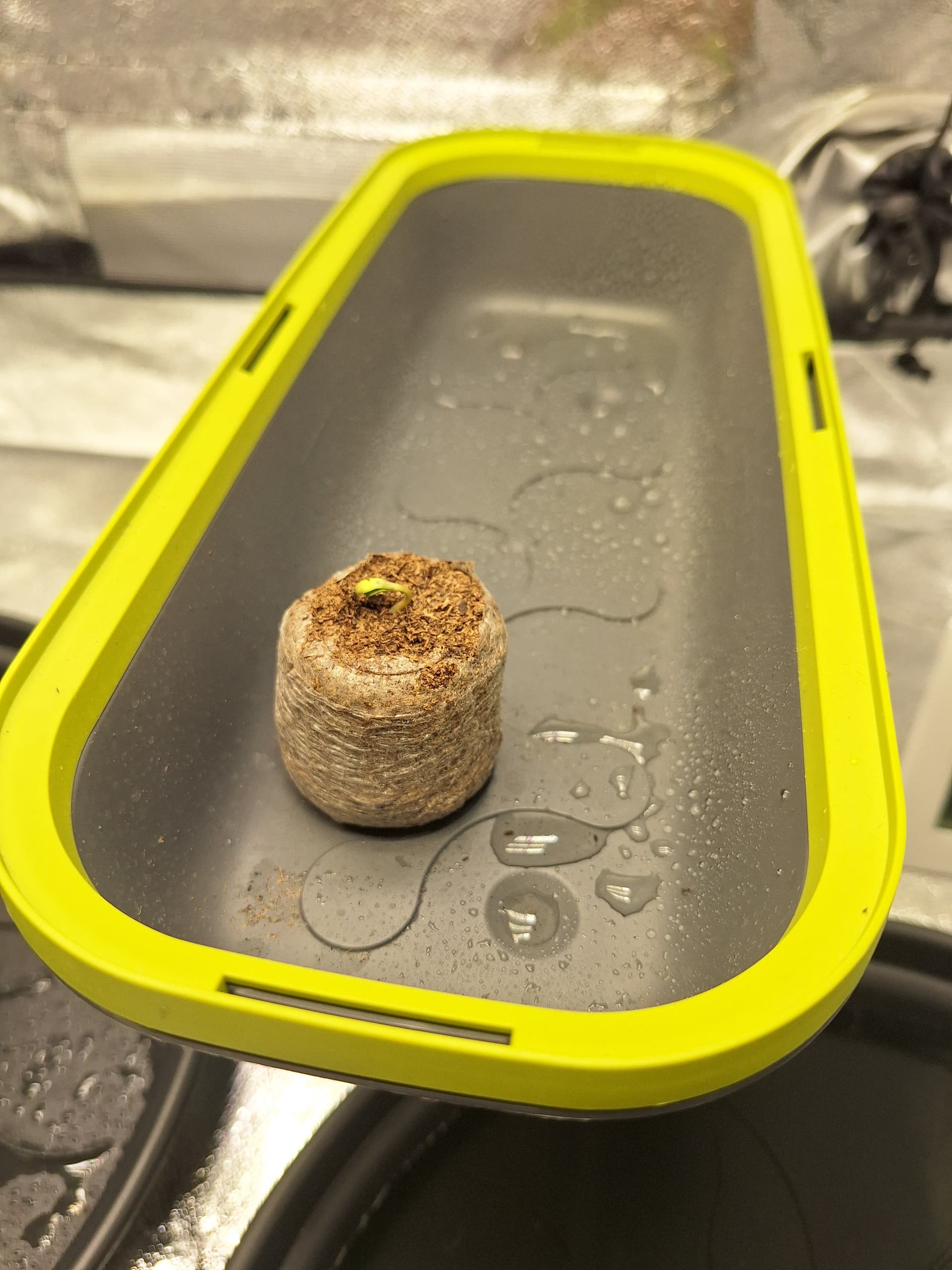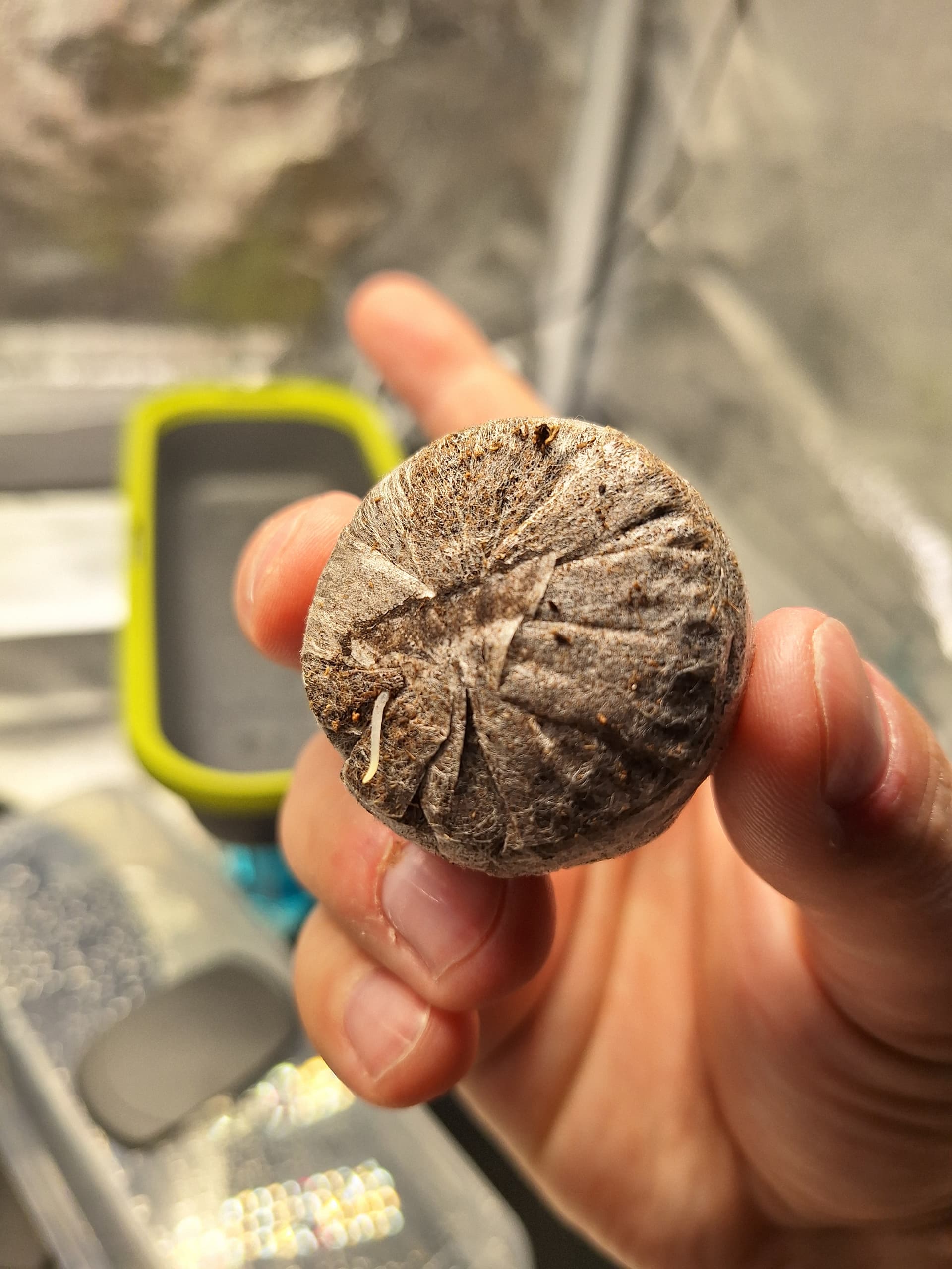 Ayahuasca Purple von Barneys nen free Seed vom letzten Jahr, hab ich am 13.03. in nen Jiffy getan, zum ausprobieren (also das Keimen im Jiffy), weil der eigentliche Seed noch nich kam…Der ist dann auch am Sonntag gekommen, und hatte heut morgen dann den Jiffy schon durchwurzelt…Jetzt bleibt se halt die Petra…