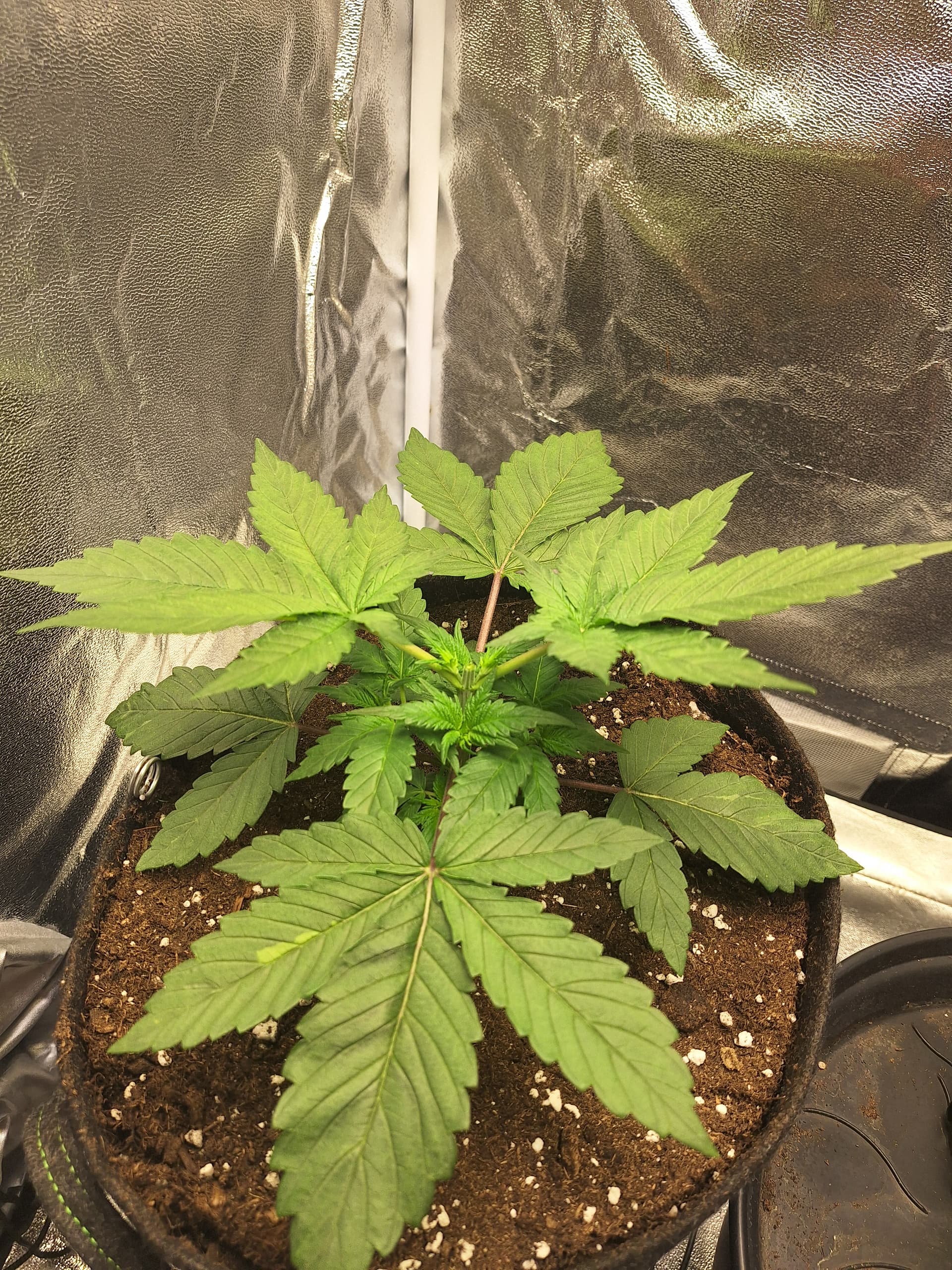 Die Purple ist mittlerweile in ihrem Endtopf eingezogen und es wächst aktuell die 6ten Nodie, also werde ich sie in 1-2 Tagen toppen. Wahrscheinlich über der 3ten.