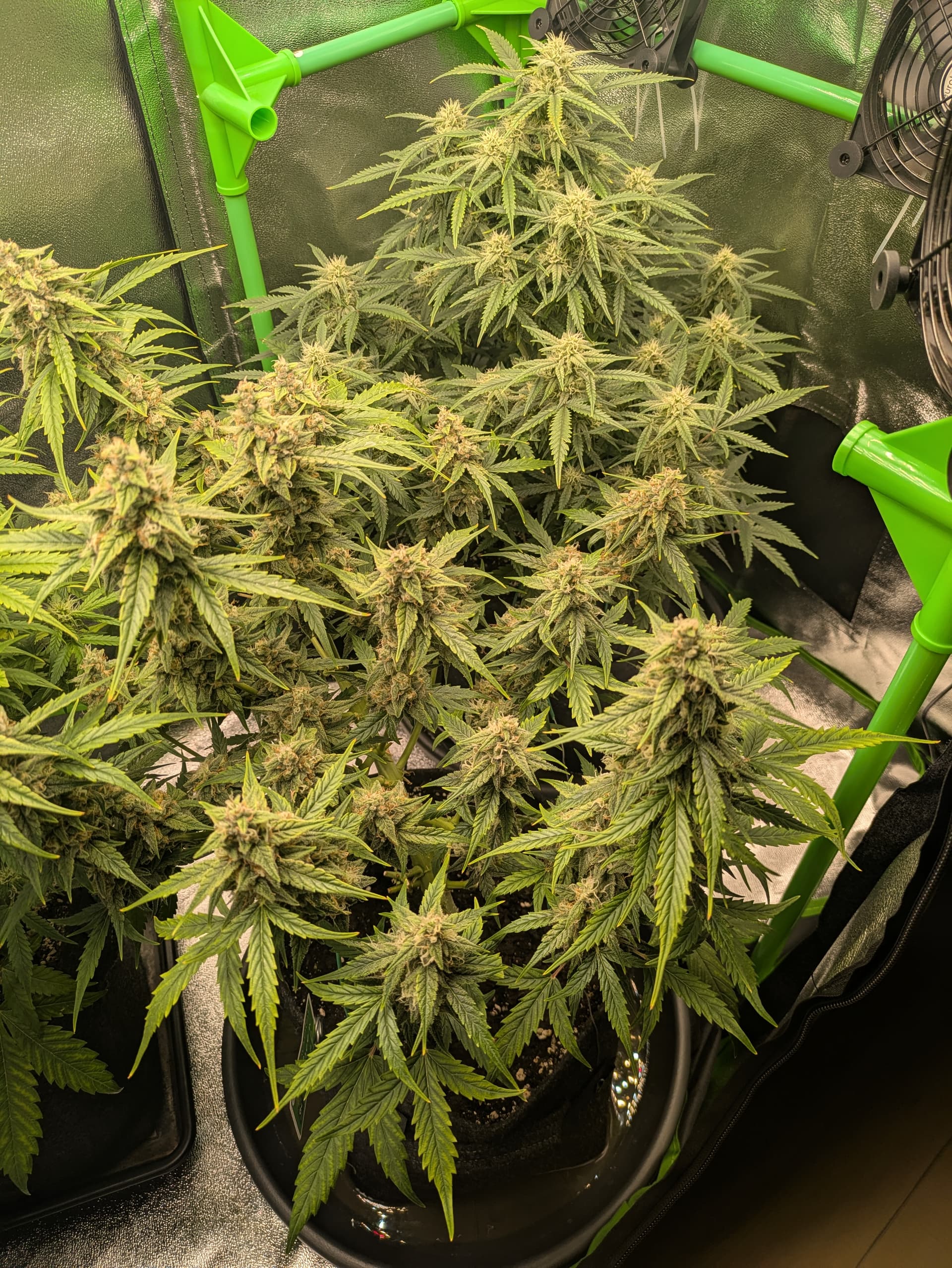 Beide bekamen 3,5l angepasst mit CalMag+BS und PowerZyme sowie SuperVIT. Blueberry bekam außerdem 80% Blüh-Complex. Die GC das volle Hesi Blüte-Programm mit Blüh-Complex, Phosphor Plus und Boost.