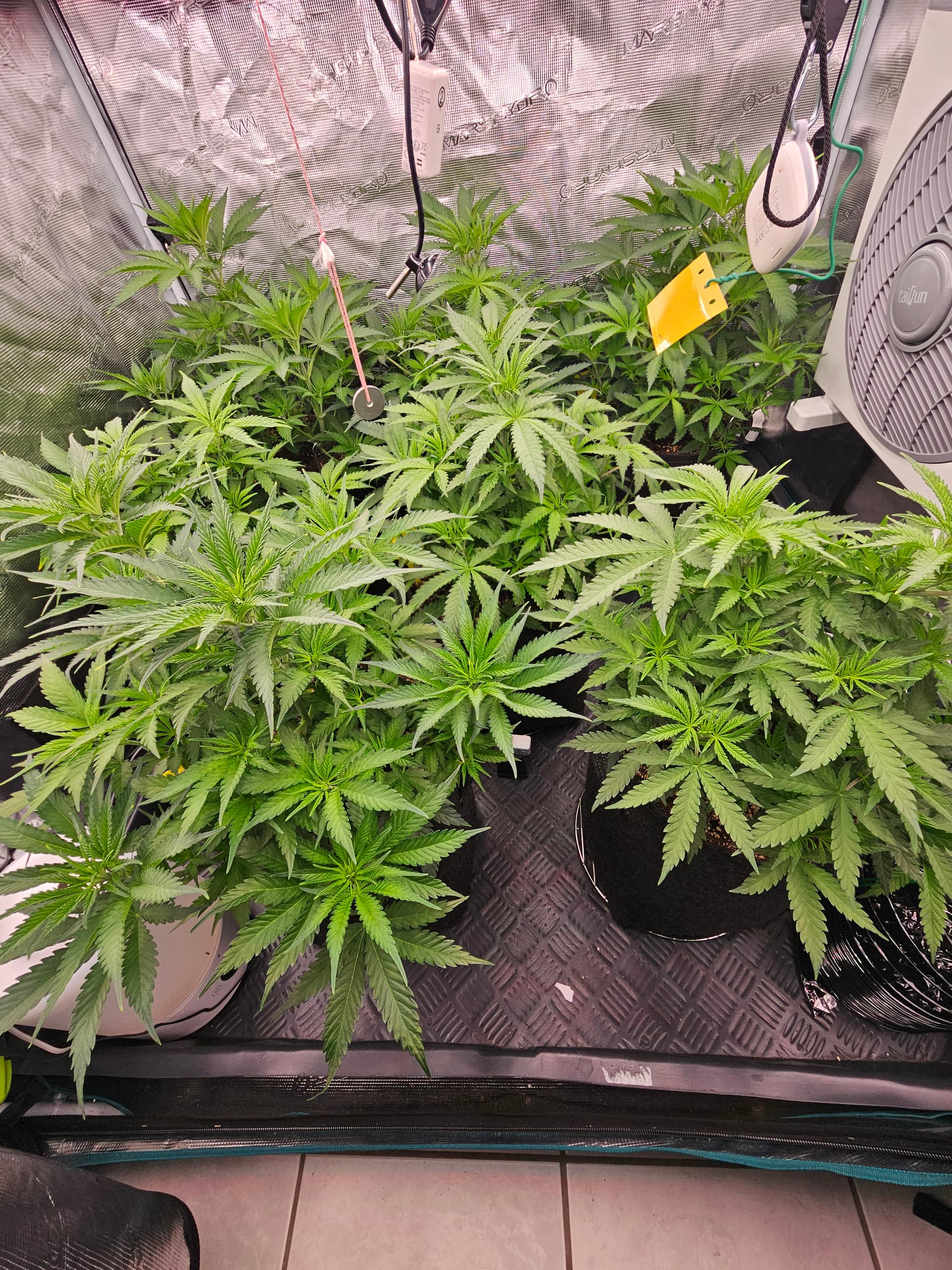 Würde dir sogar empfehlen alle Triebe nochmal zu checken gegebenfalls etwas zurecht binden,so das die Buds später nicht aneiender kleben,ne bessere Luftzirkulation hast, präventiv vorarbeiten zum vermeiden von Schimmel etc