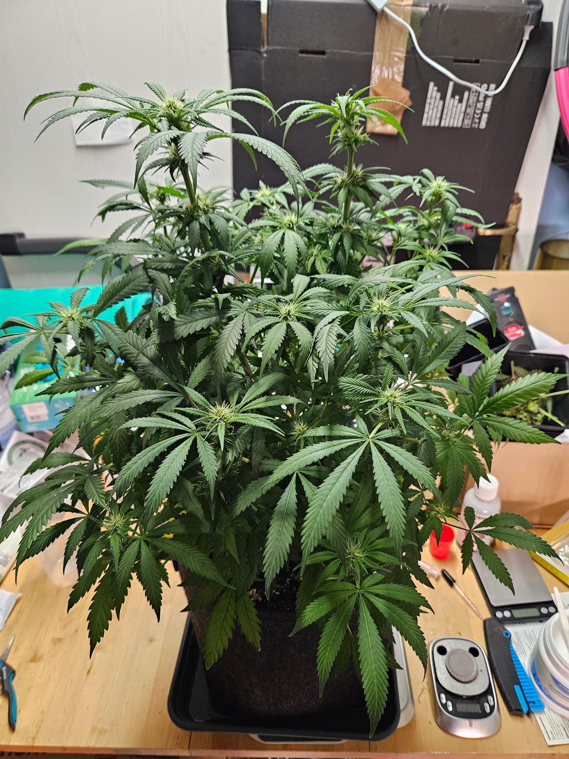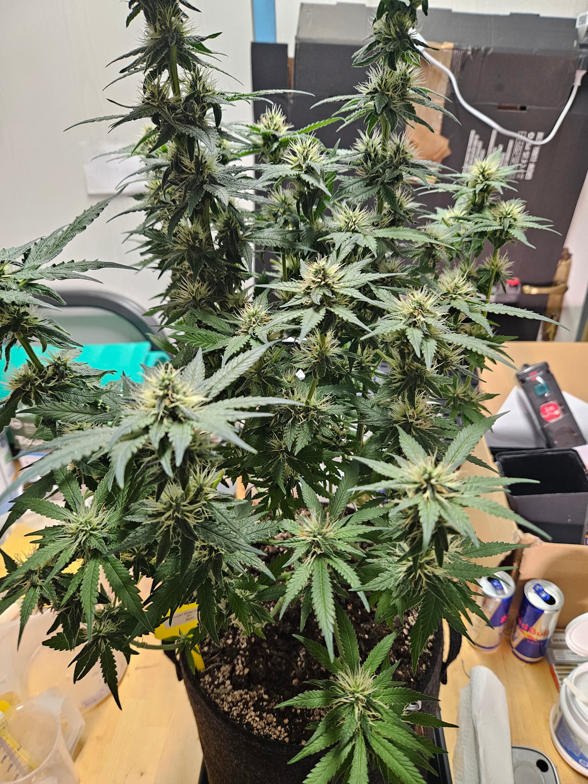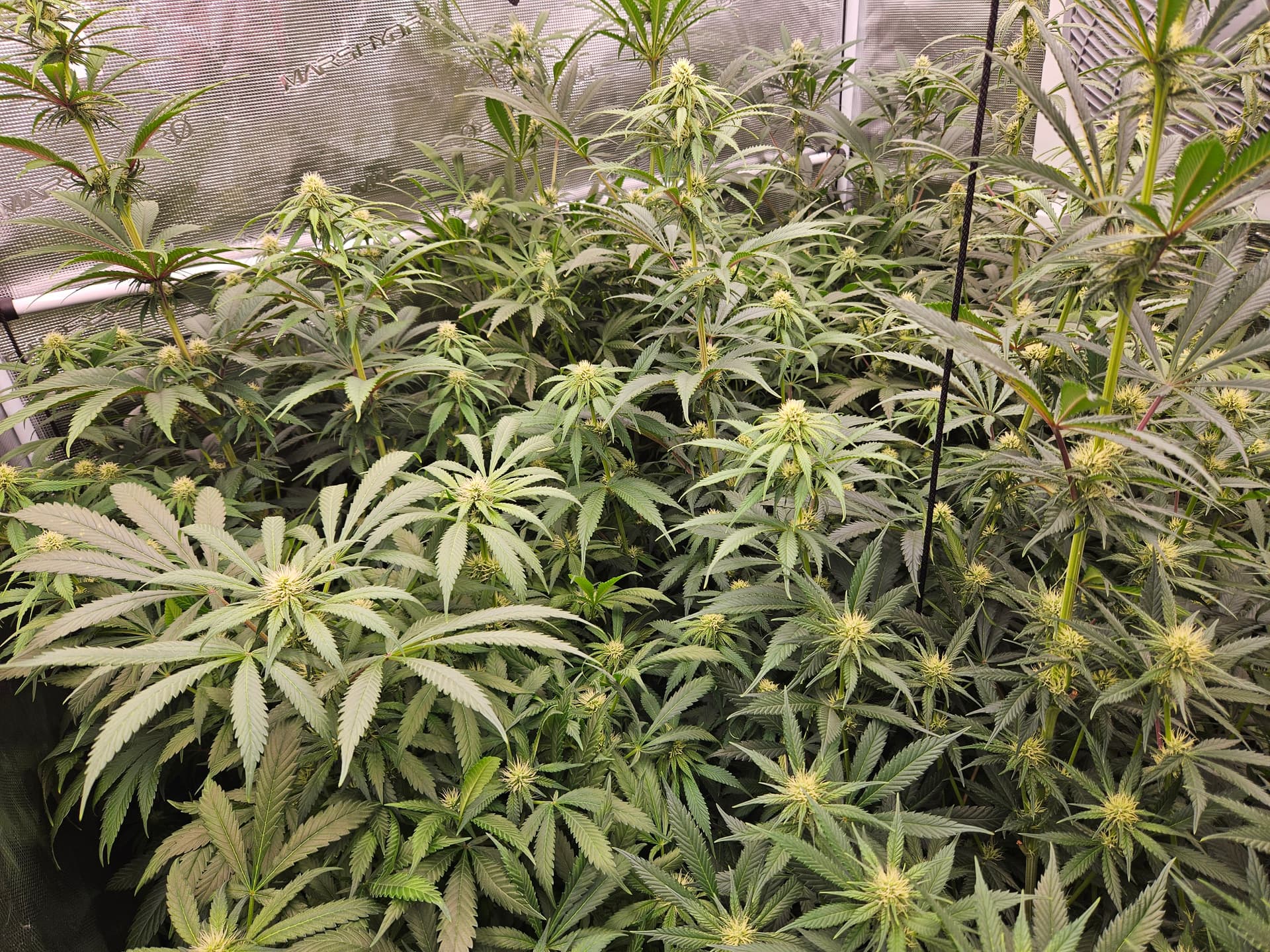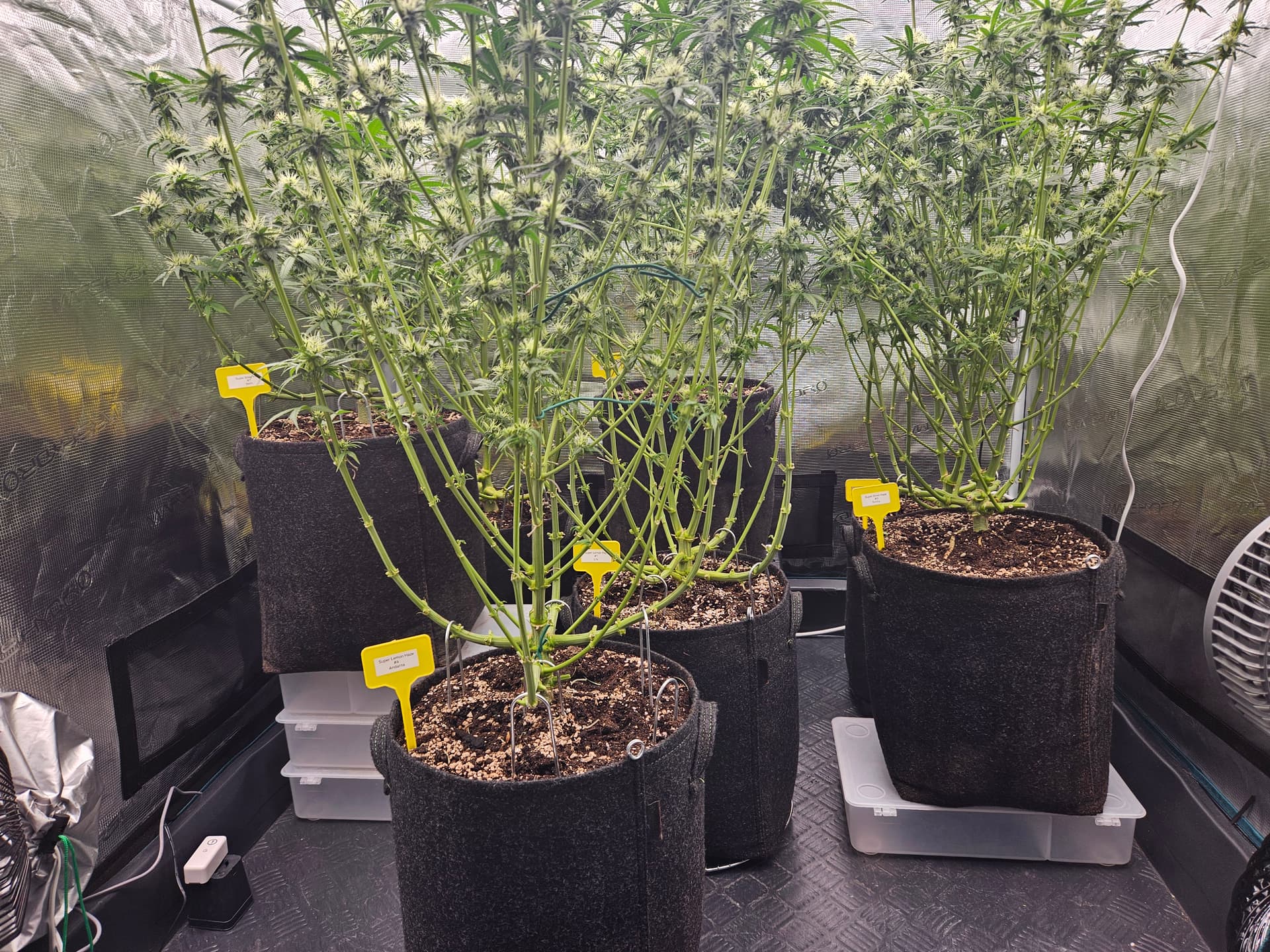 Zum senken deiner LF lege ich dir nah nochmal die grossen Sonnensegel zu beseitigen,hat den Vorteil daß das verschieden Buds mehr Licht bekommen und dein VPD verbessert. Bist ja doch schon wieder ziemlich dicht. Auch die Zirkulation der Luft wird besser,in dem Fall beugst du dem evtl Schimmelbefall vor. Wenn du den VPD verbesserst werden deine Buds auch besser. Sanlight hat dazu eine Studie kann man sich auf YT anschauen ist sehr interessant.