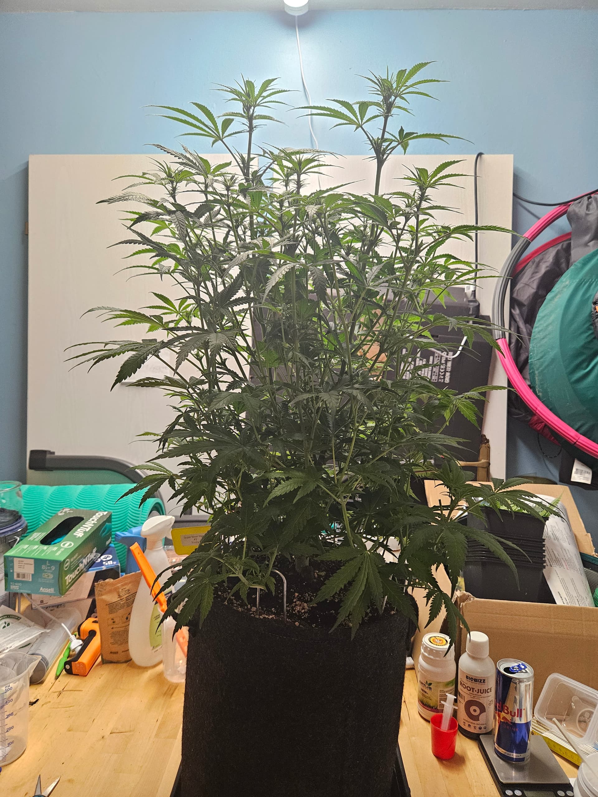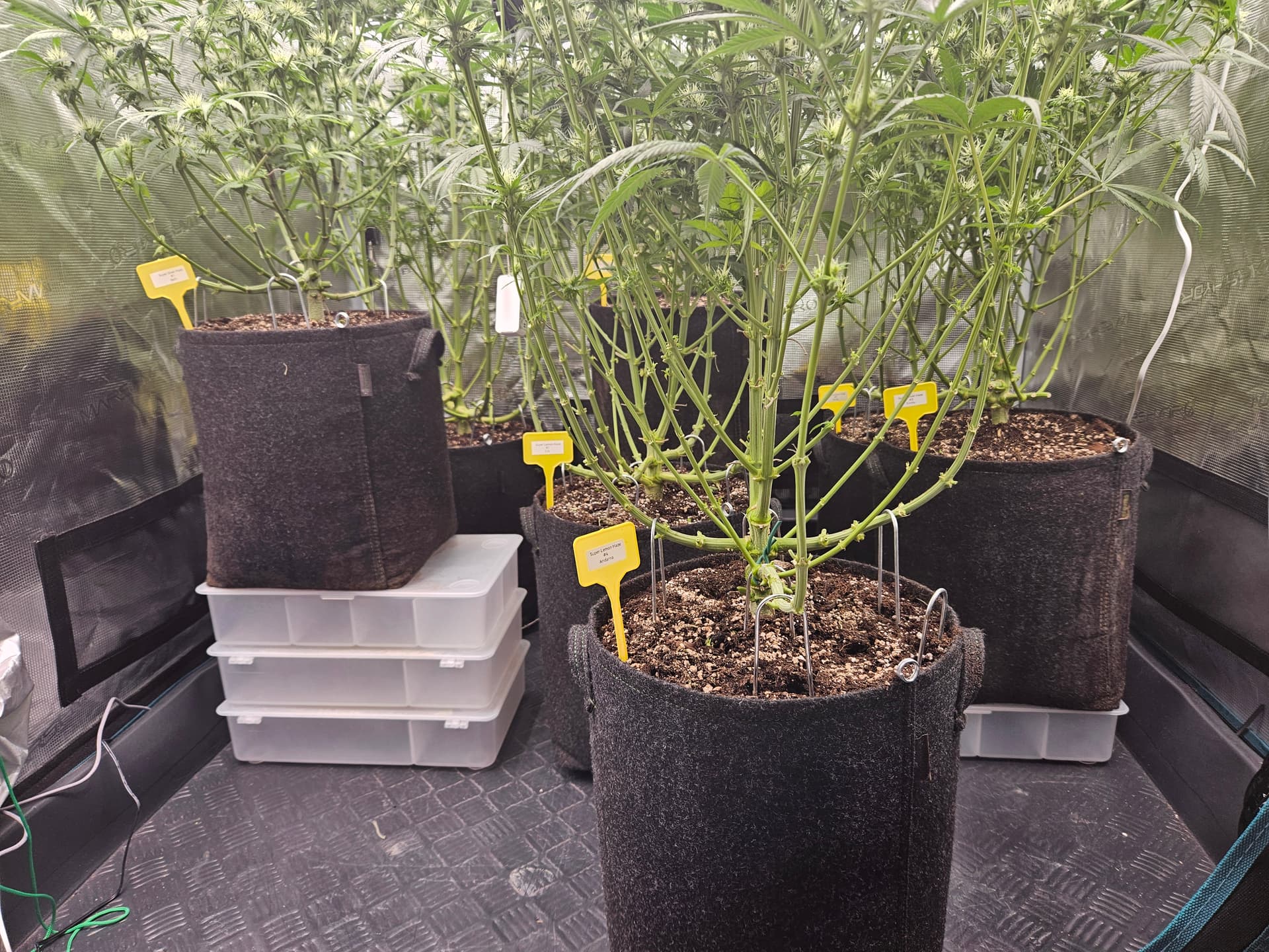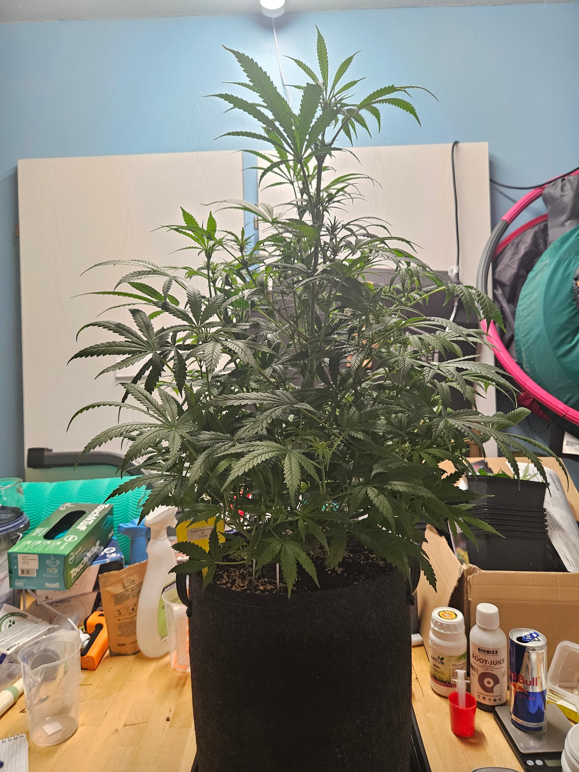 Gestern wurde dann mal wieder gegossen und nach Auffälligkeiten Ausschau gehalten. Entdeckt habe Ich aber nichts besorgniserregendes. Des weiteren habe ich die kleineren Super Silver Haze versucht noch höher zu stellen um den Größenunterschied zu verringern. Am Samstag werde ich wieder gießen müssen und dann werde ich der Erde auch nochmal was vom Dünger beimischen. Da nun auch der Stretch zu Ende geht,werde ich am Samstag die Schere zücken und die Mädels soweit ich mich traue lollipoppen bzw auslichten