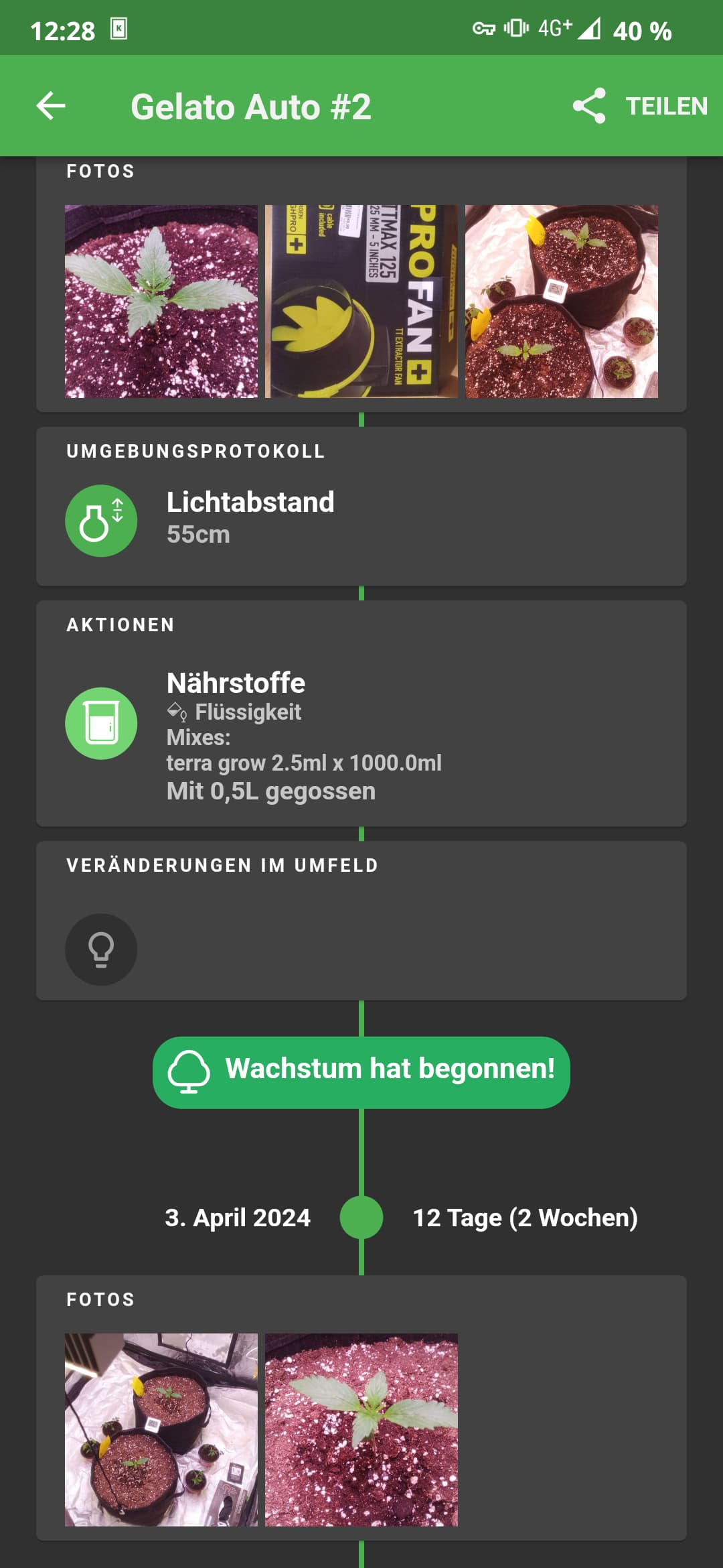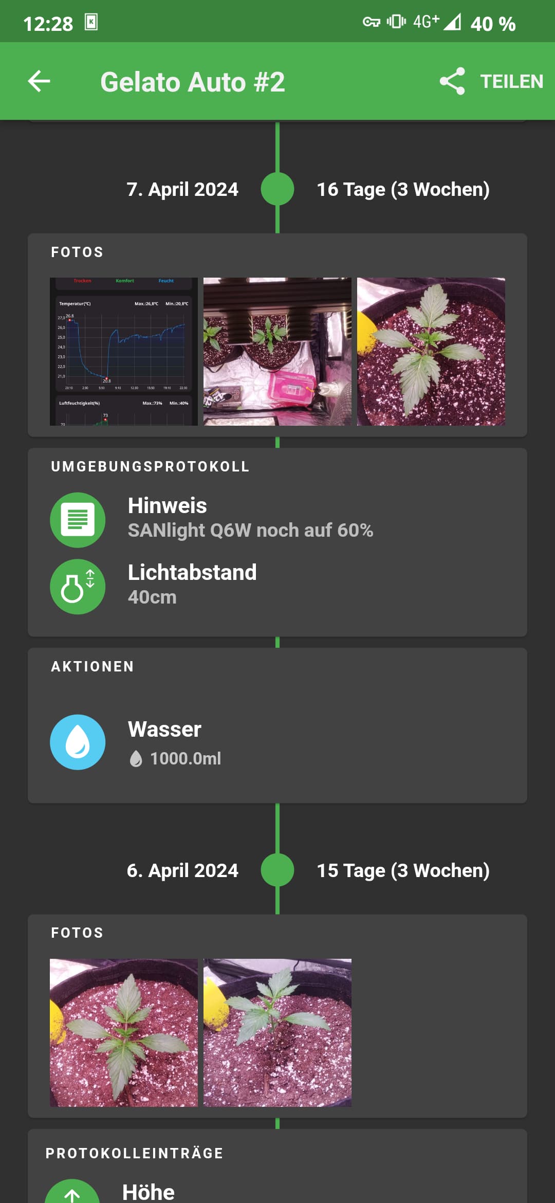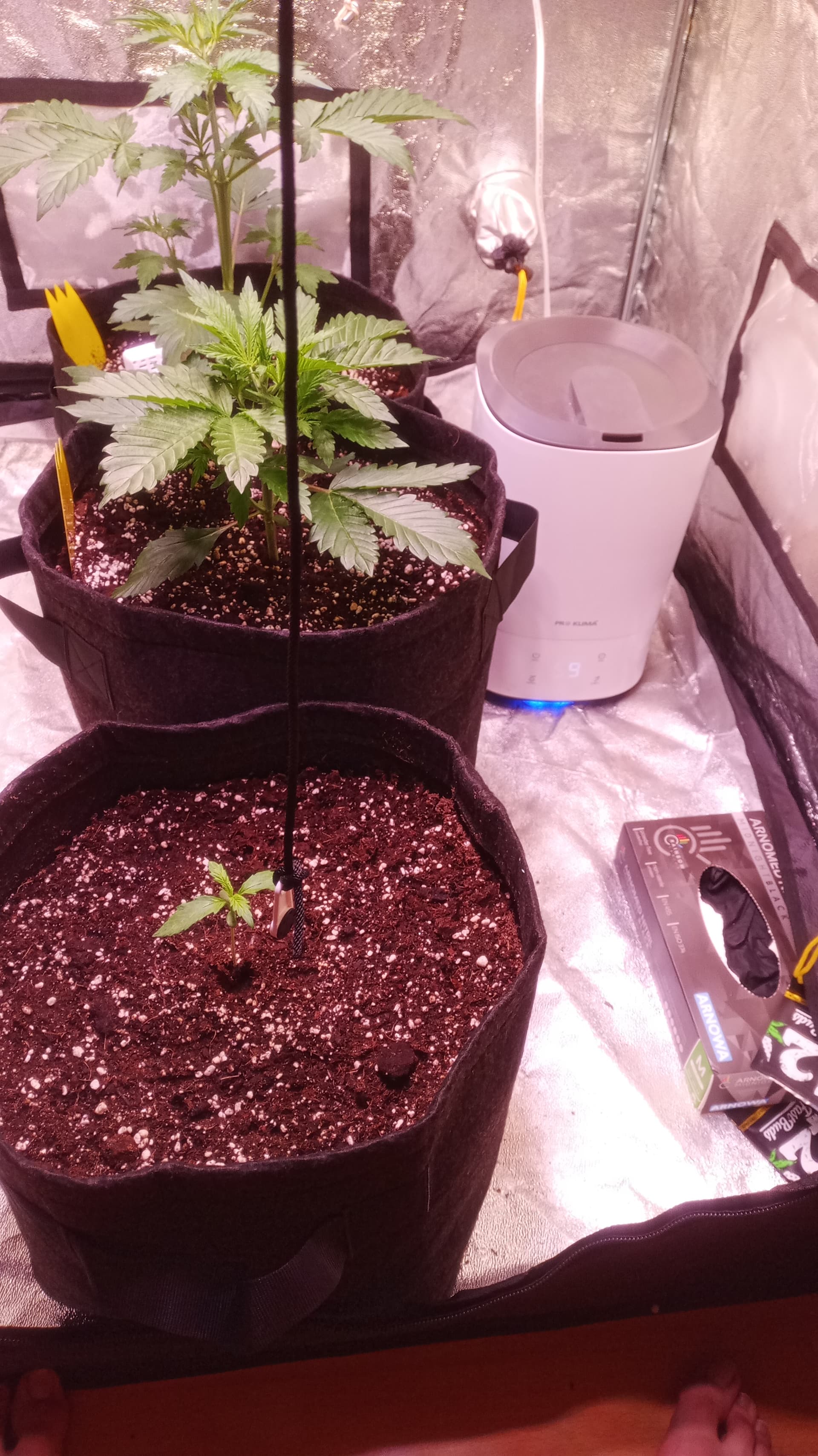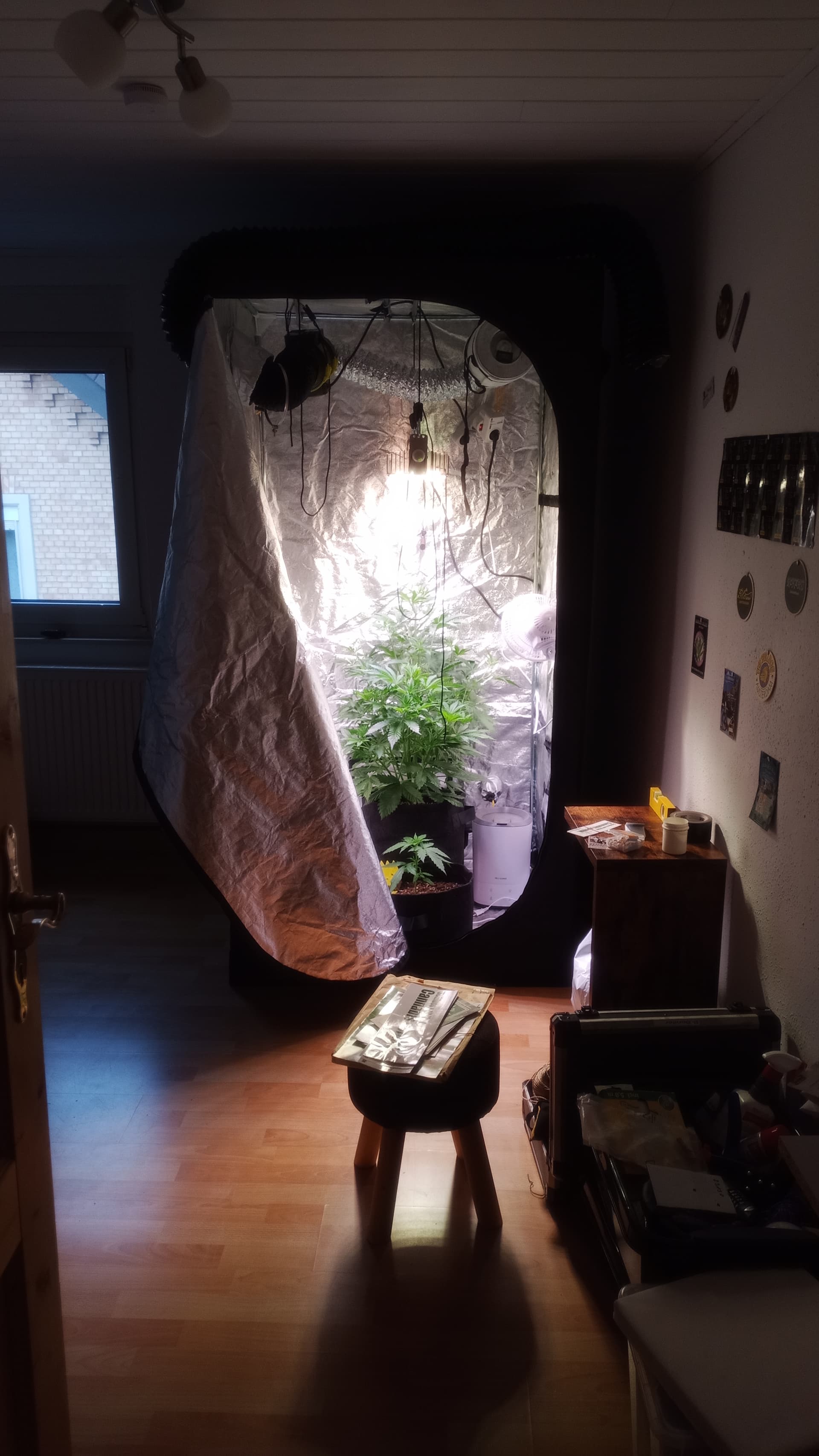 Da es mein erster Grow nach entlichen Jahren war, war ich mir gerade Anfangs zur Keimung nicht mehr sicher und hab er was gespielt mit Lampenabstand etc.