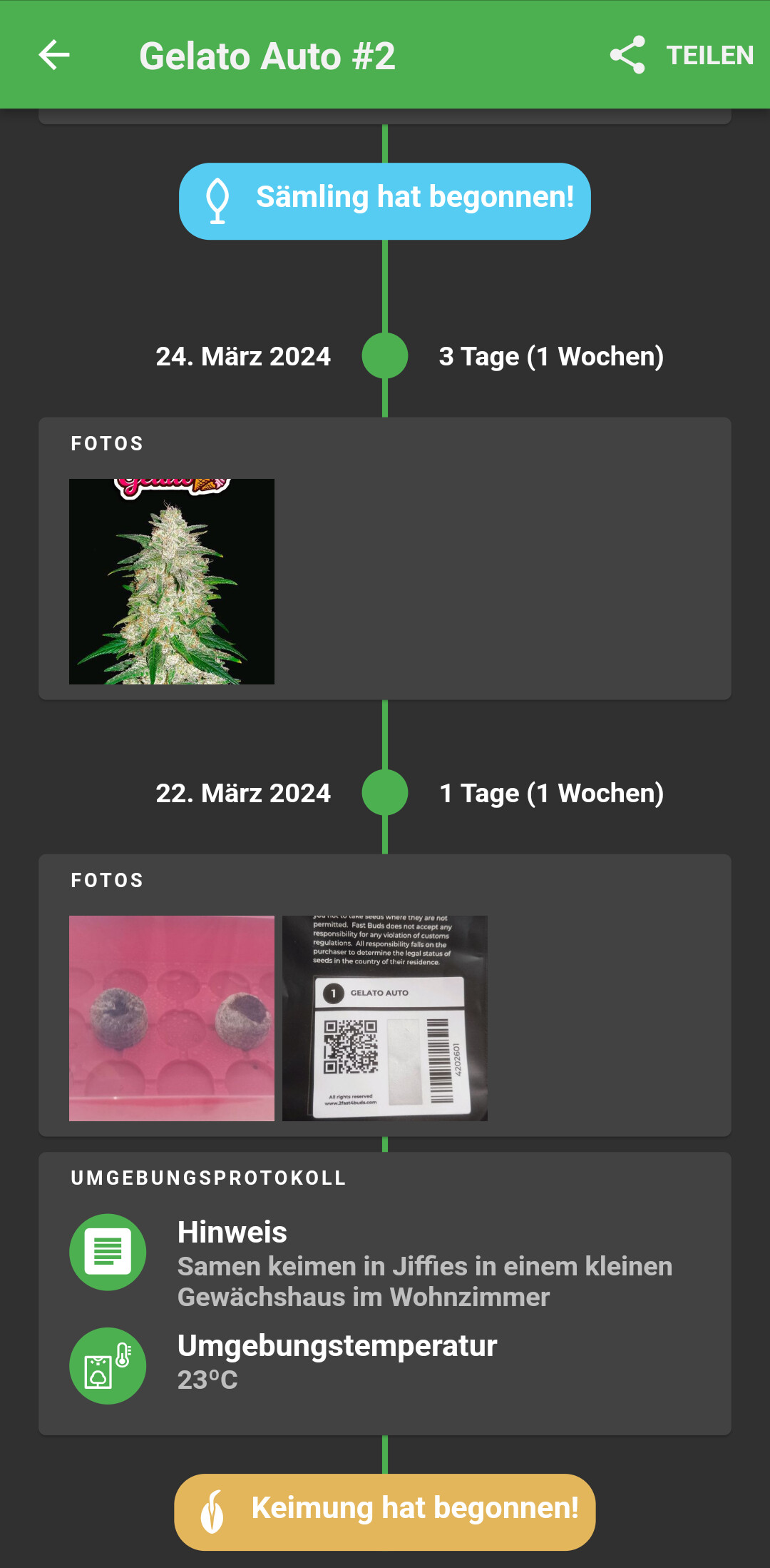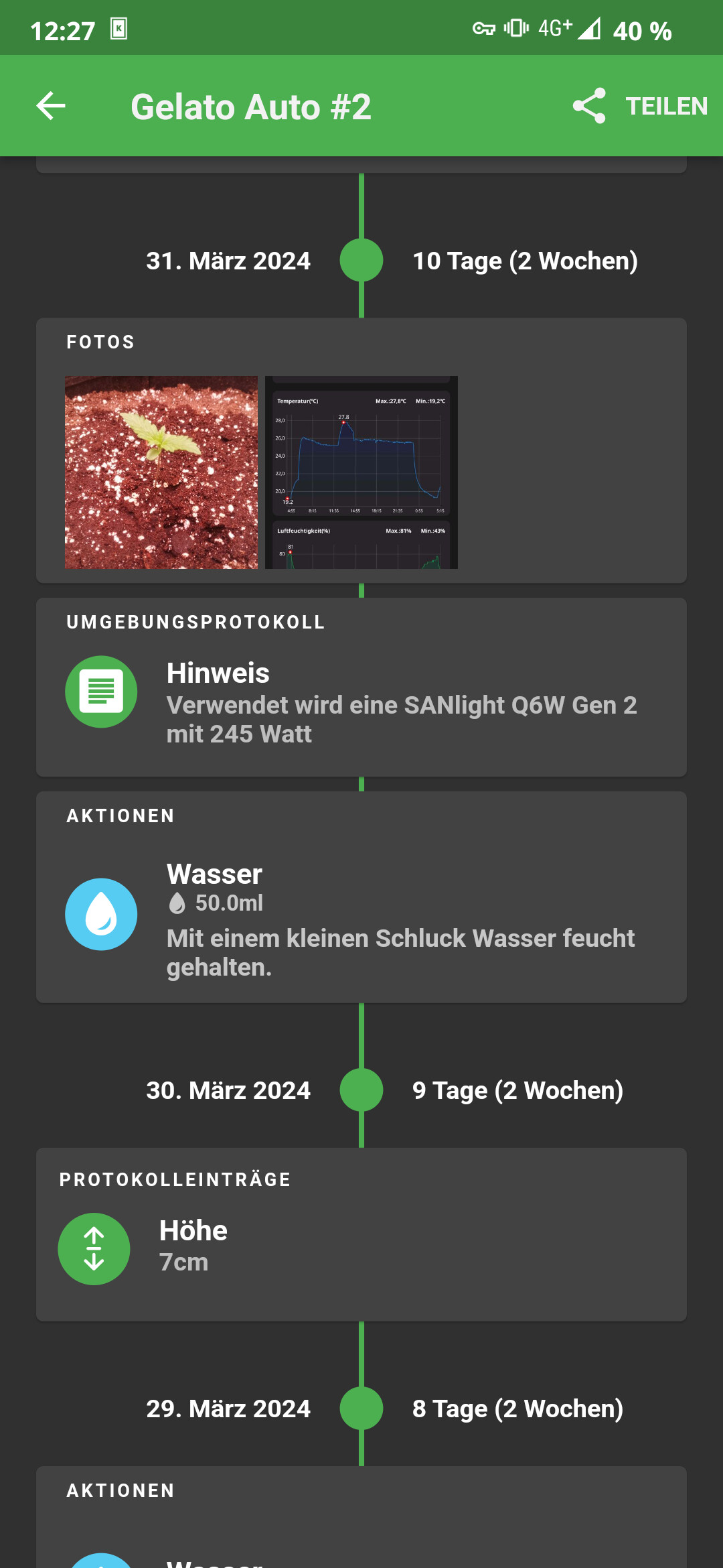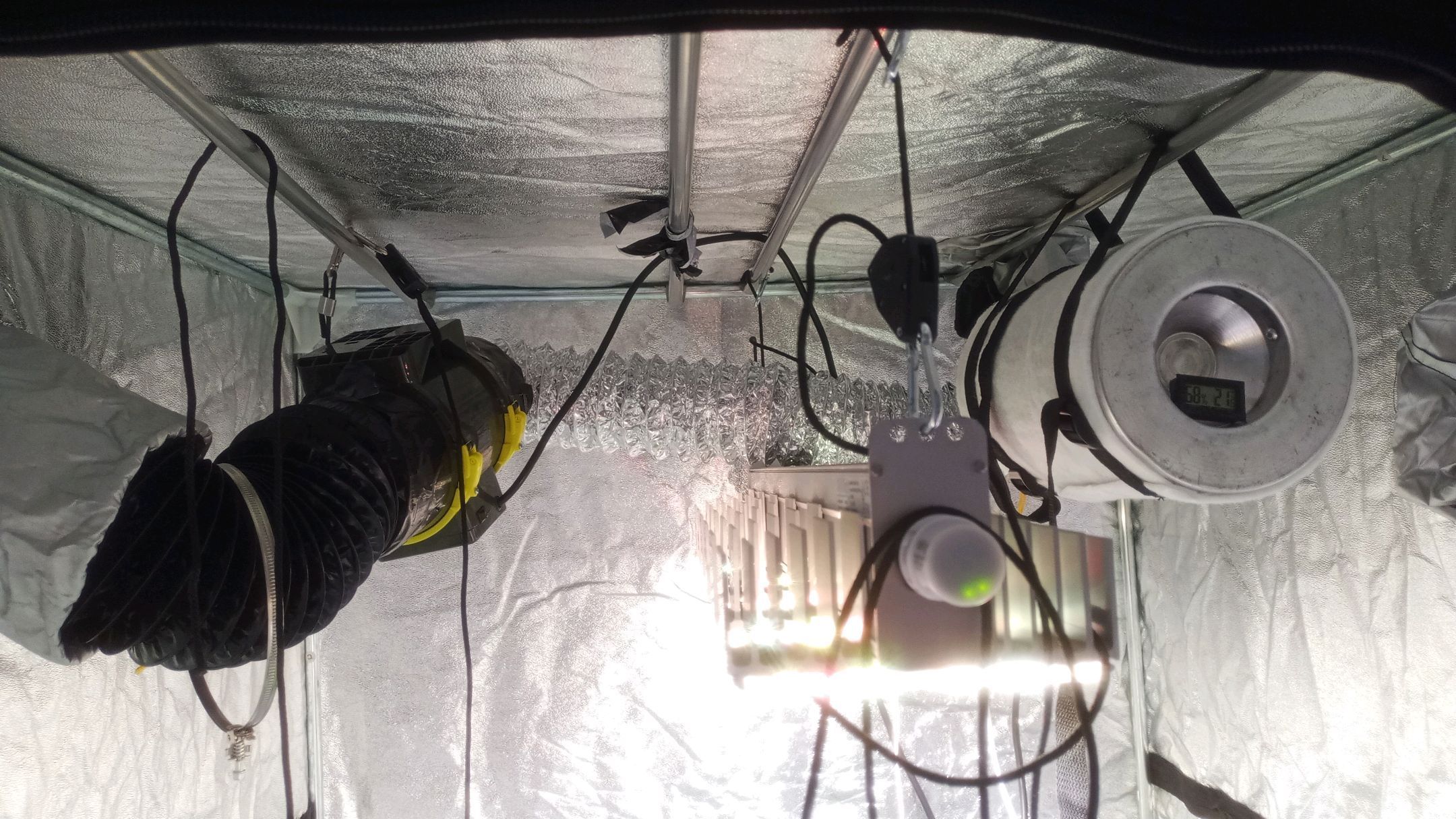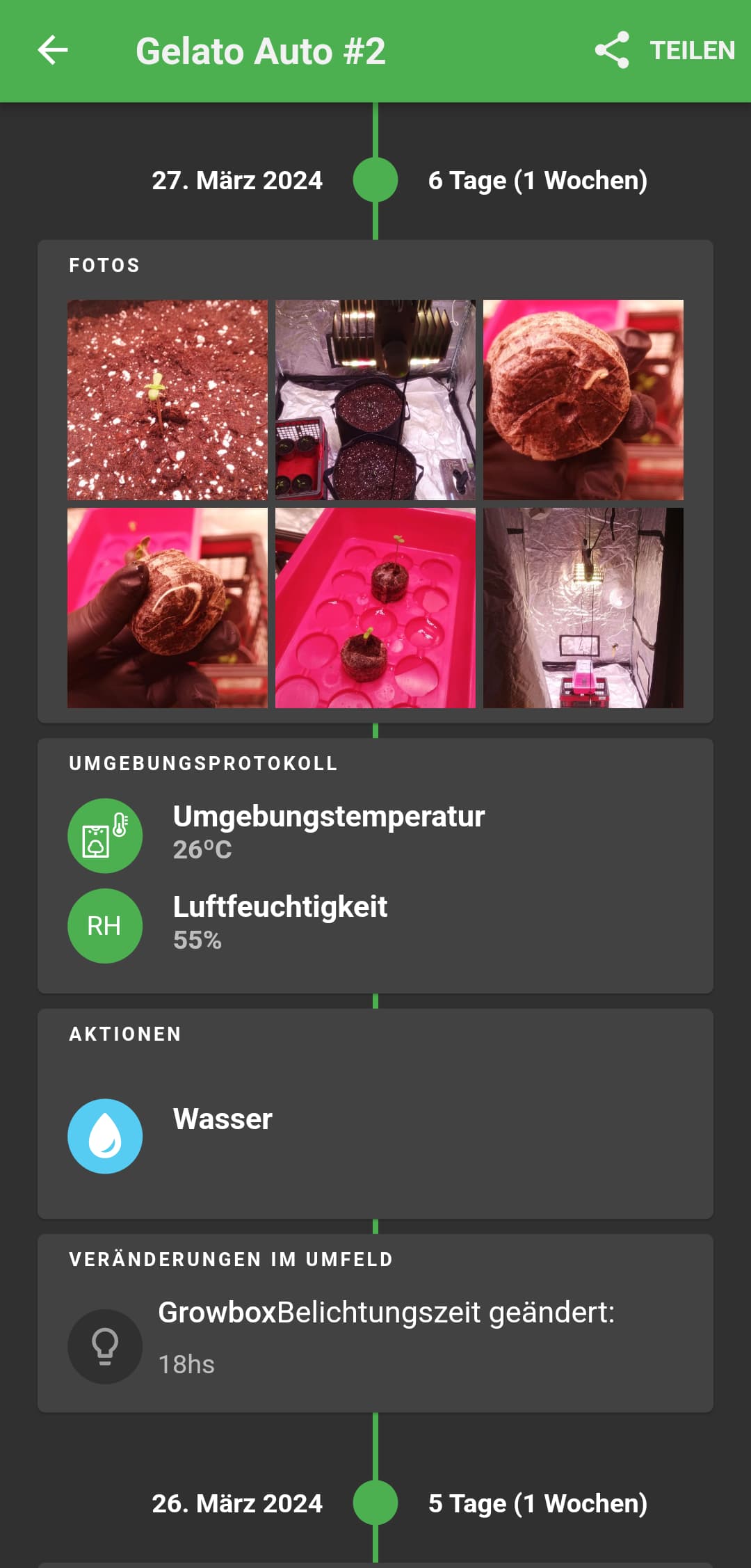 Da es mein erster Grow nach entlichen Jahren war, war ich mir gerade Anfangs zur Keimung nicht mehr sicher und hab er was gespielt mit Lampenabstand etc.