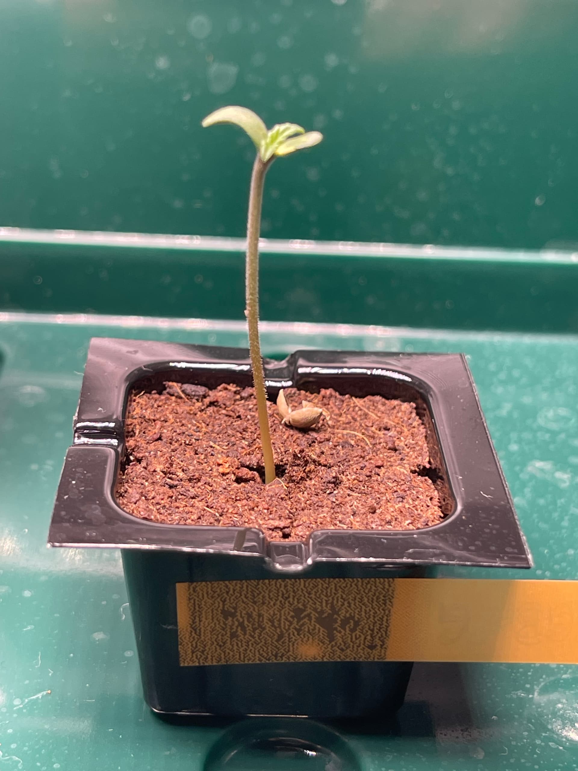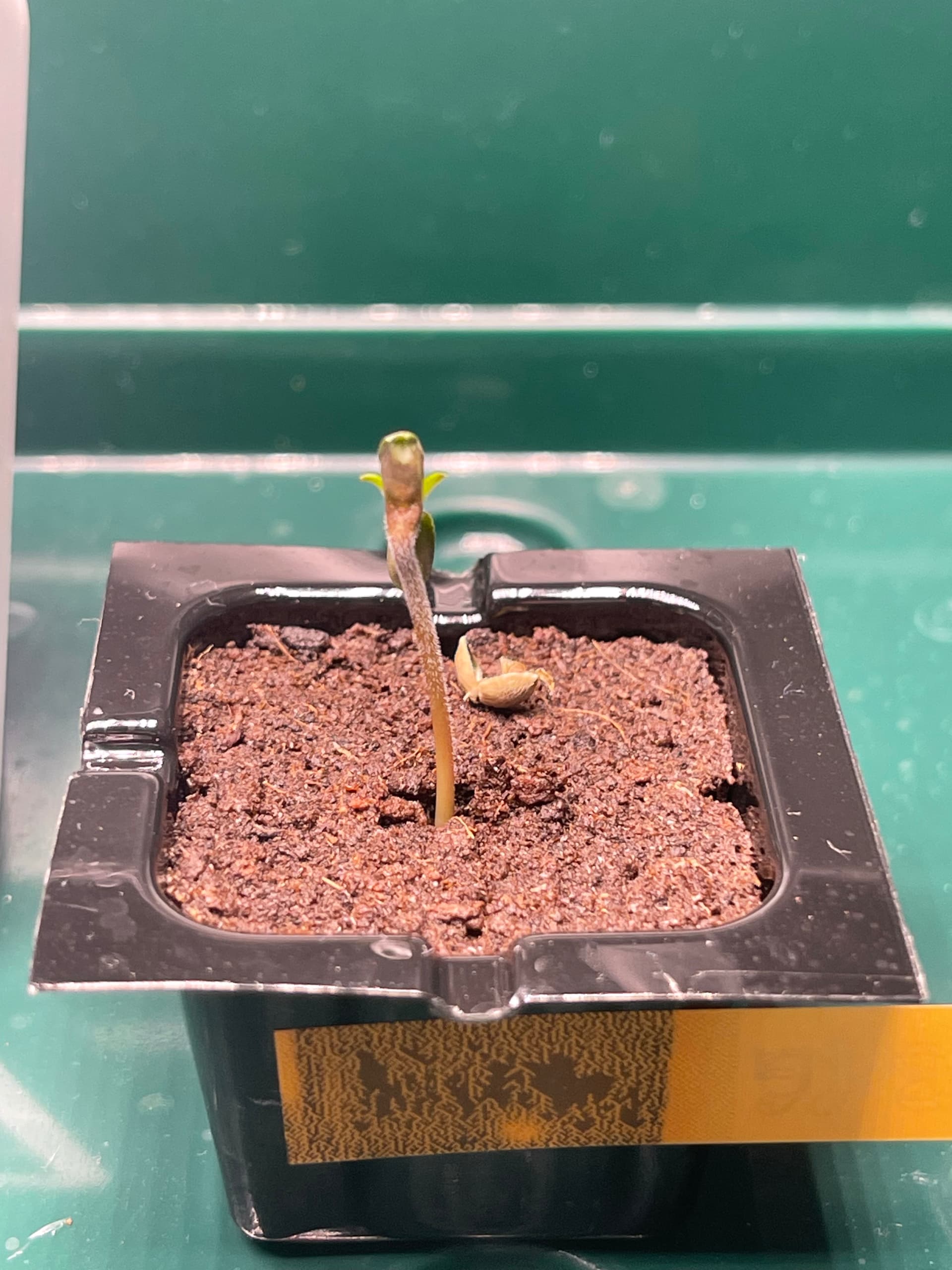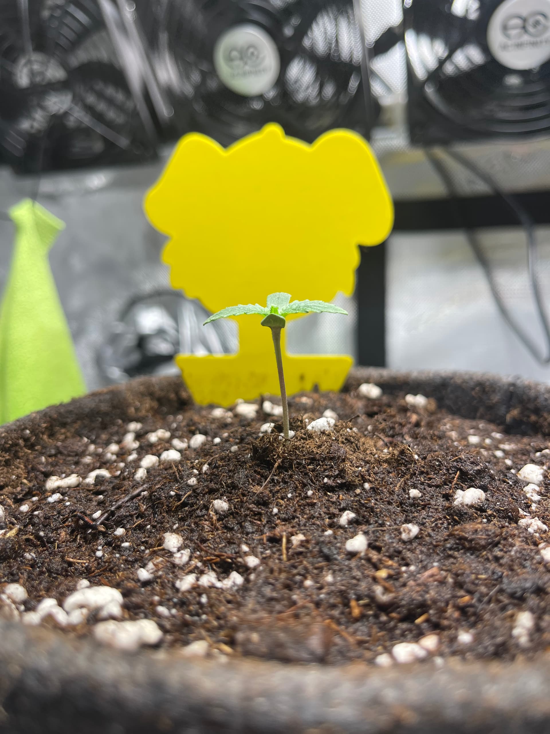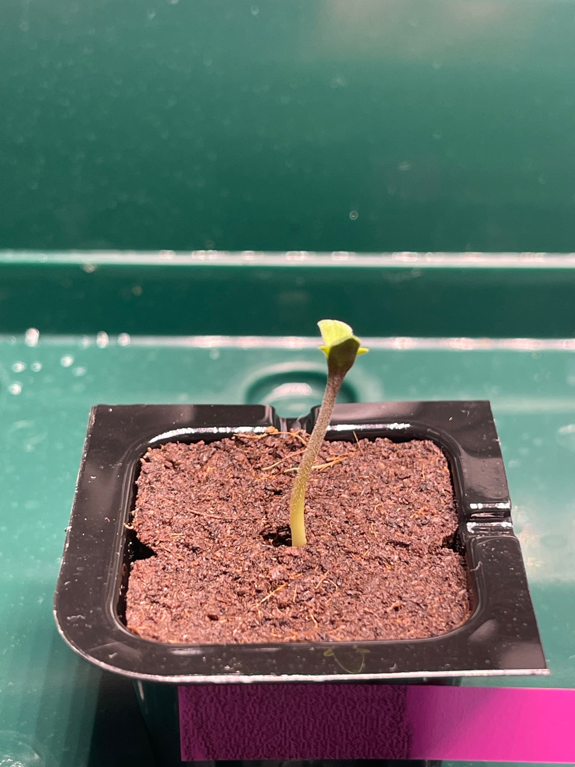 Die Ladies scheinen etwas zu spargeln. Licht ist nun etwa 35cm entfernt und die Pflänzchen bekommen ca. 250 PPFD. SFV Dog zeigt mir nur den Rücken… hoffentlich streckt sich das Köpfchen noch nach oben