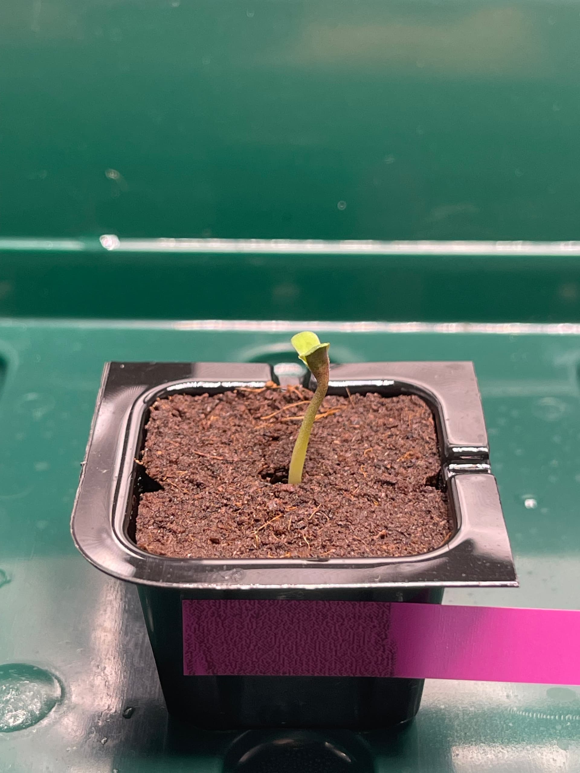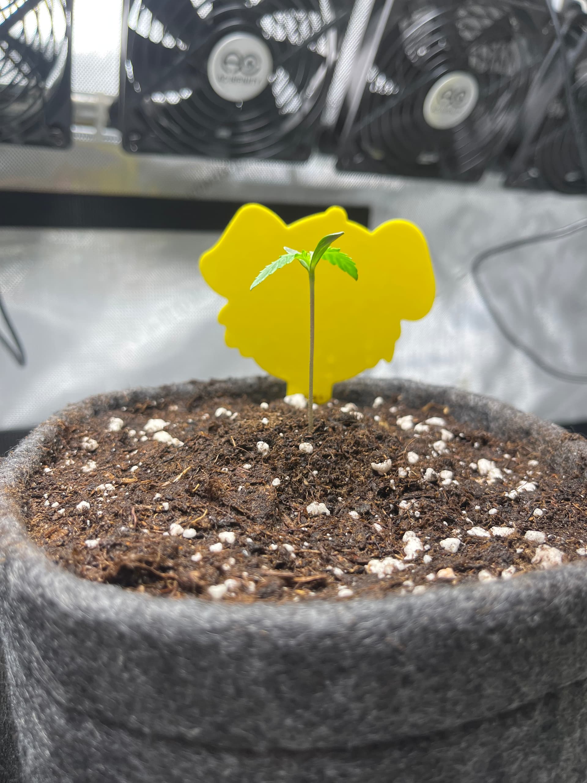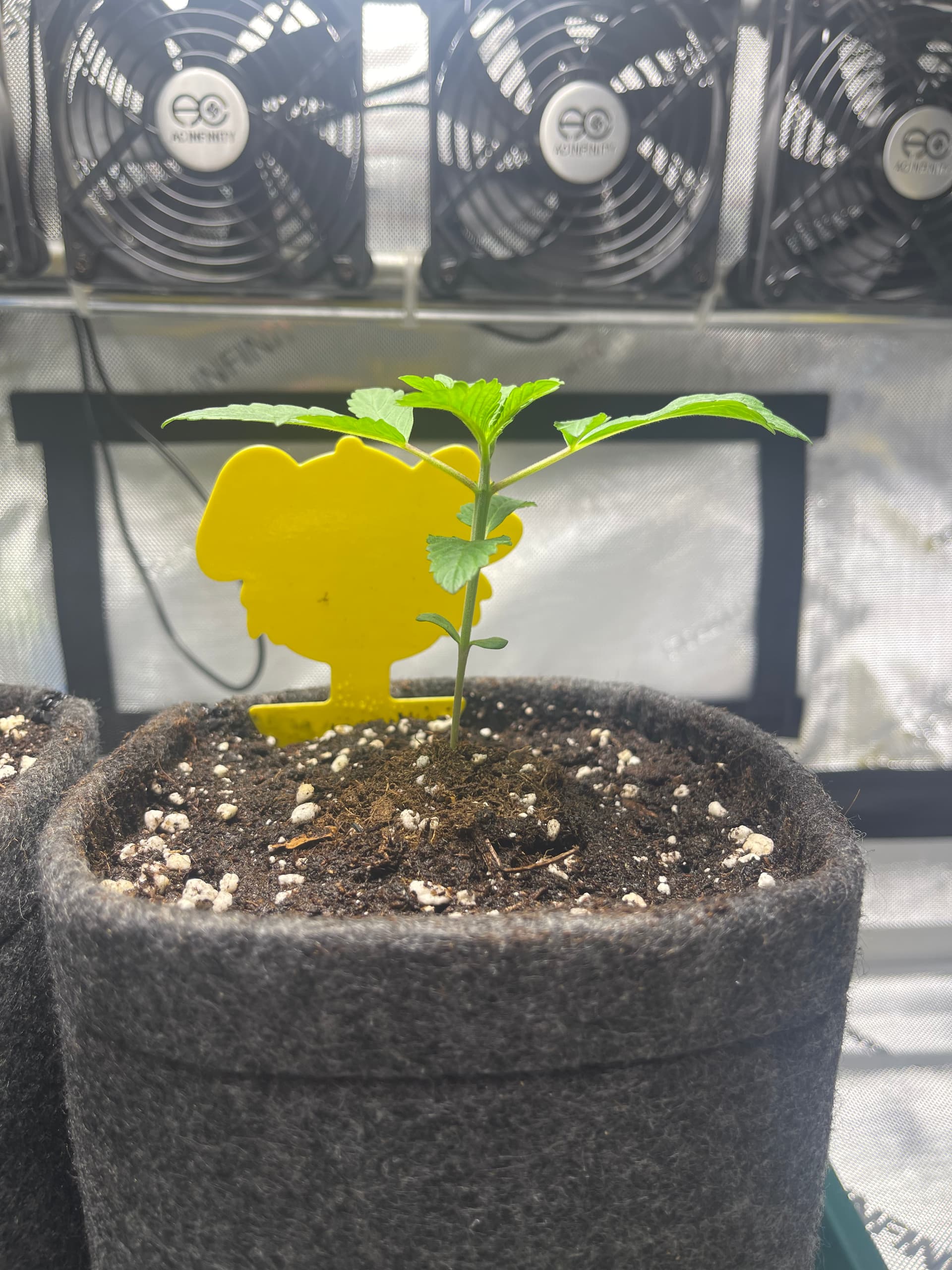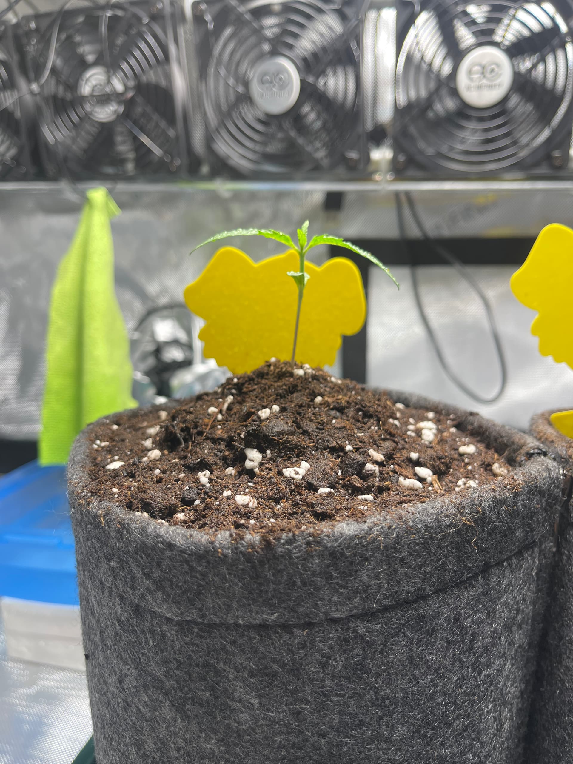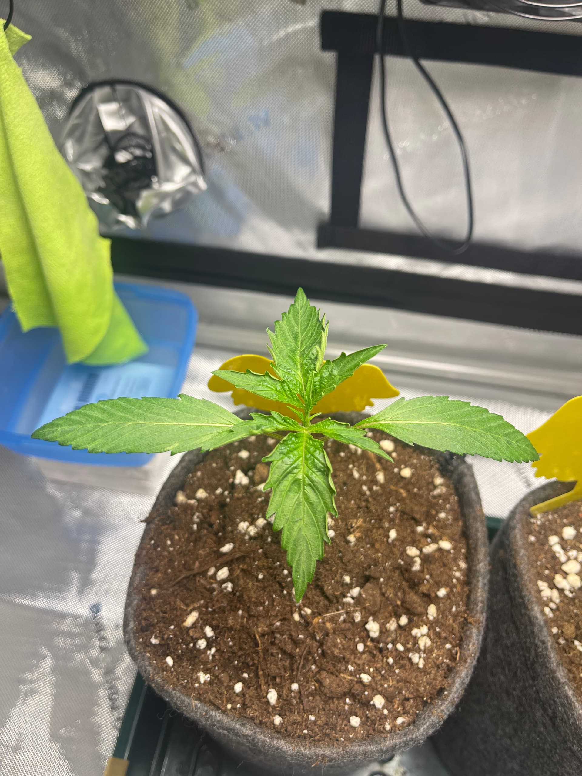 Die Ladies scheinen etwas zu spargeln. Licht ist nun etwa 35cm entfernt und die Pflänzchen bekommen ca. 250 PPFD. SFV Dog zeigt mir nur den Rücken… hoffentlich streckt sich das Köpfchen noch nach oben
