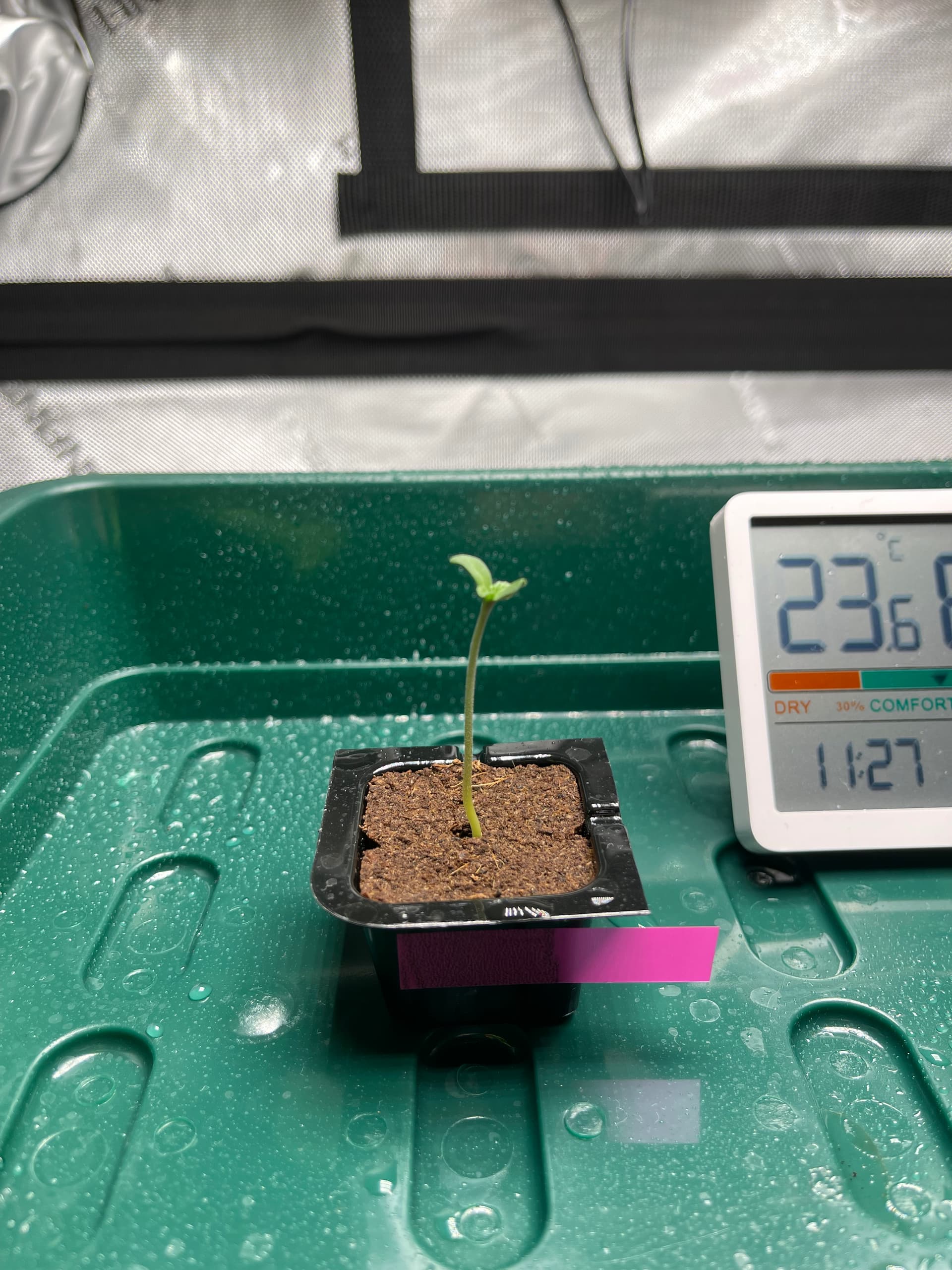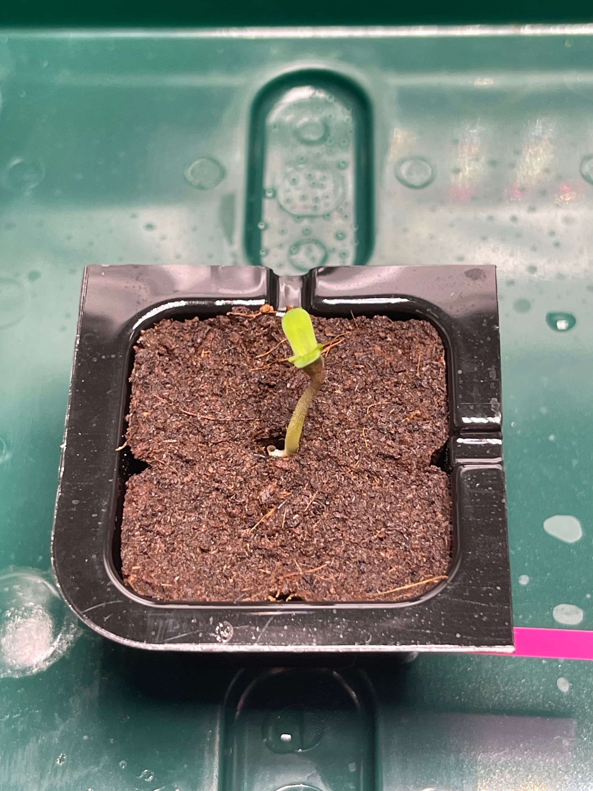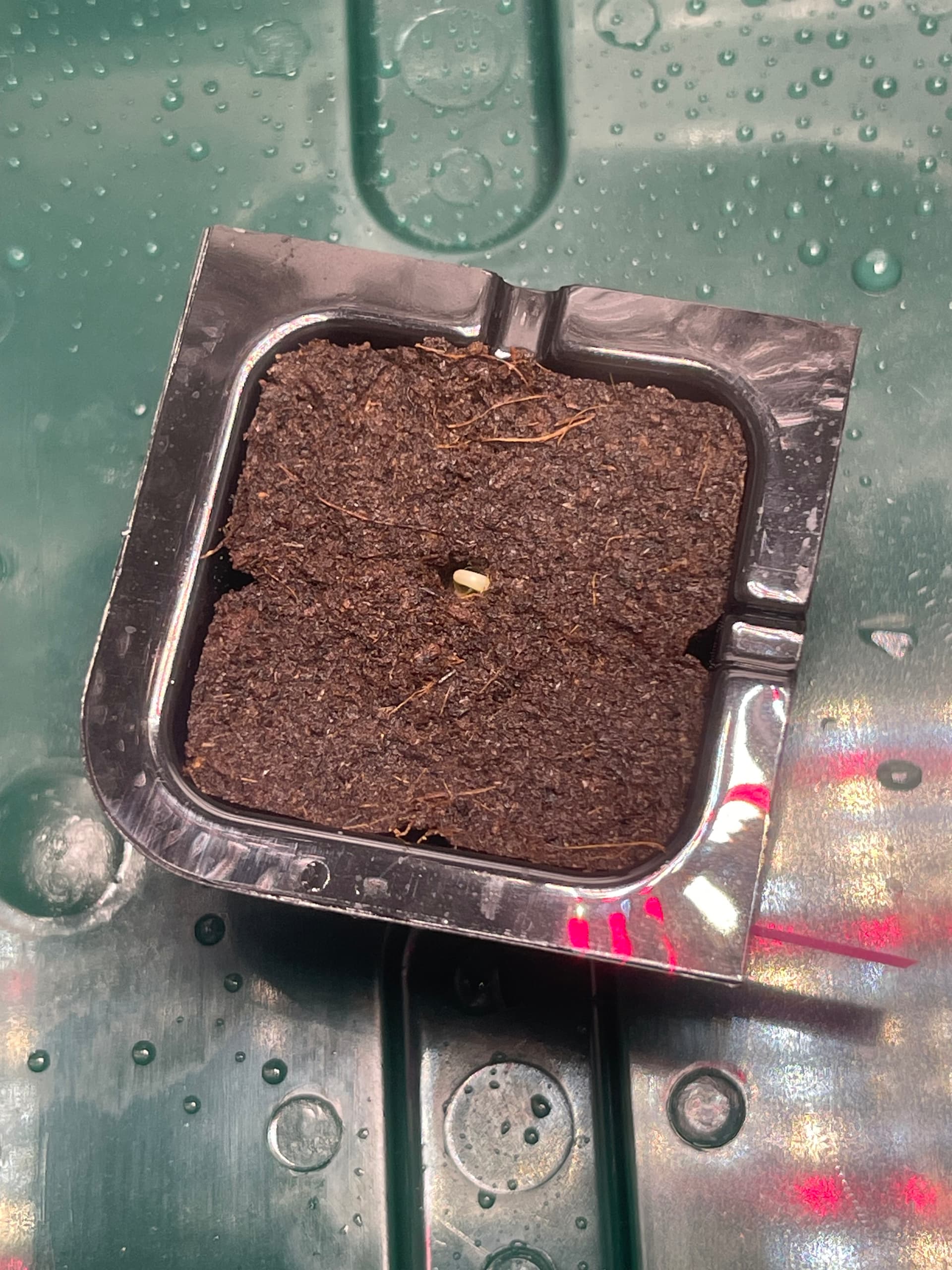 Am Mittwoch habe ich die Samen in Eazy Plugs gesteckt und die Violeta zeigt schon das erste Anzeichen von Leben. Bei der SFV Dog kann man nicht so richtig erkennen, ob sich da etwas tut.
