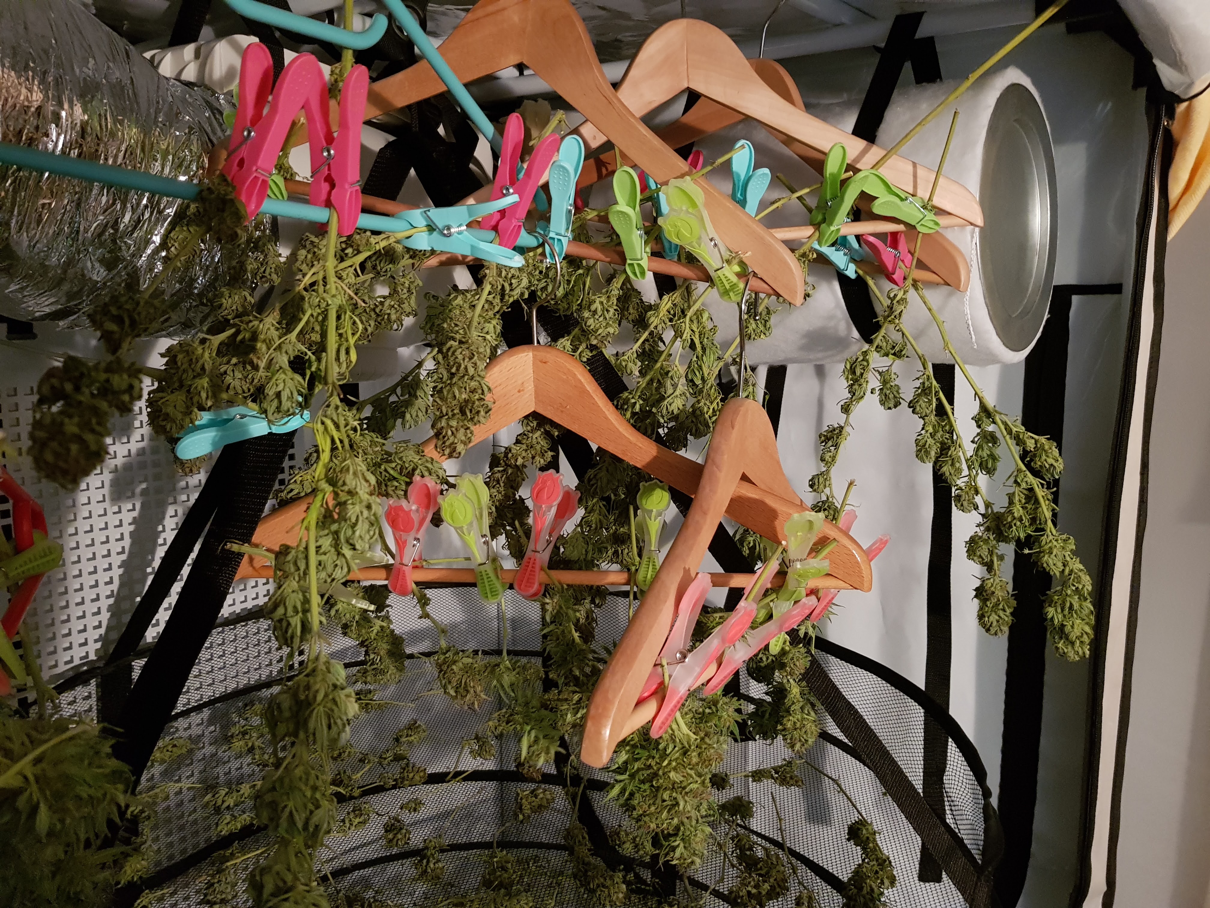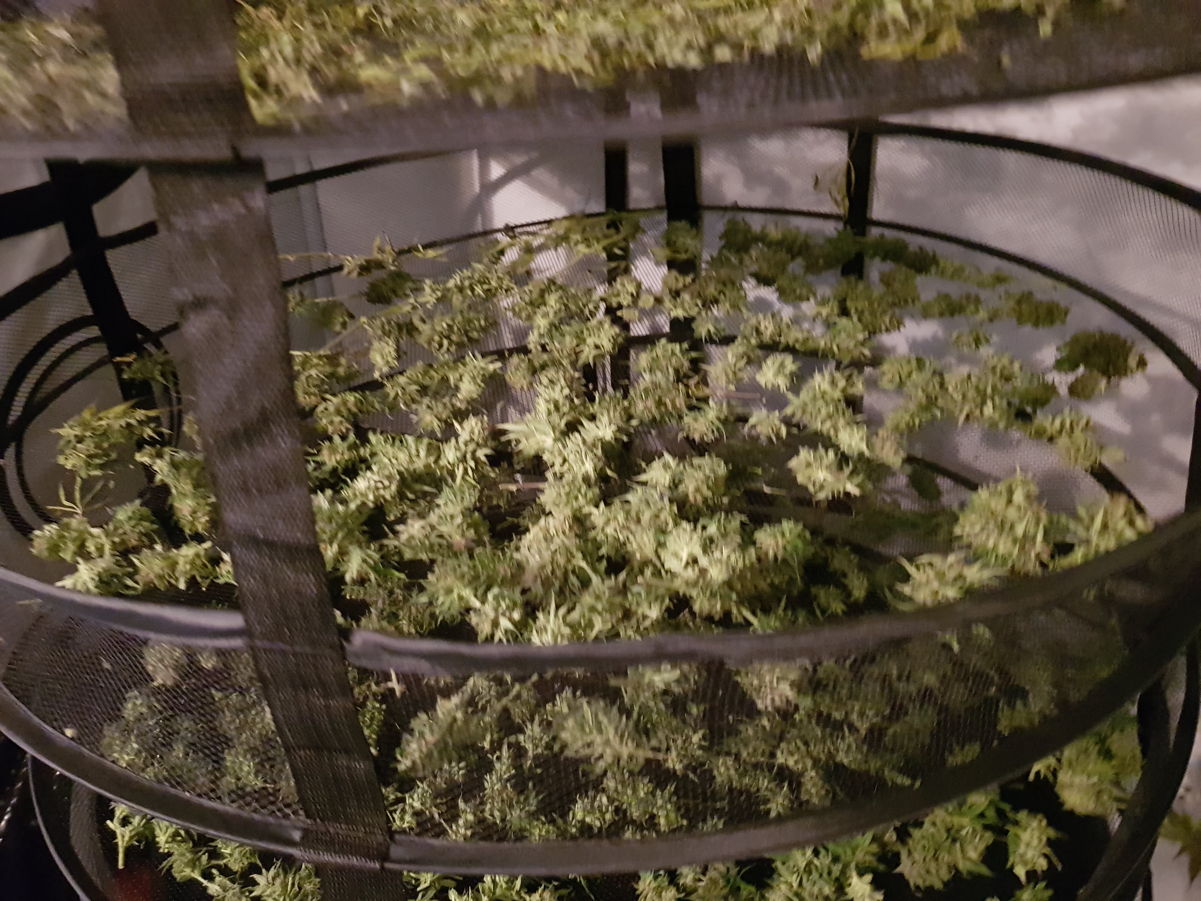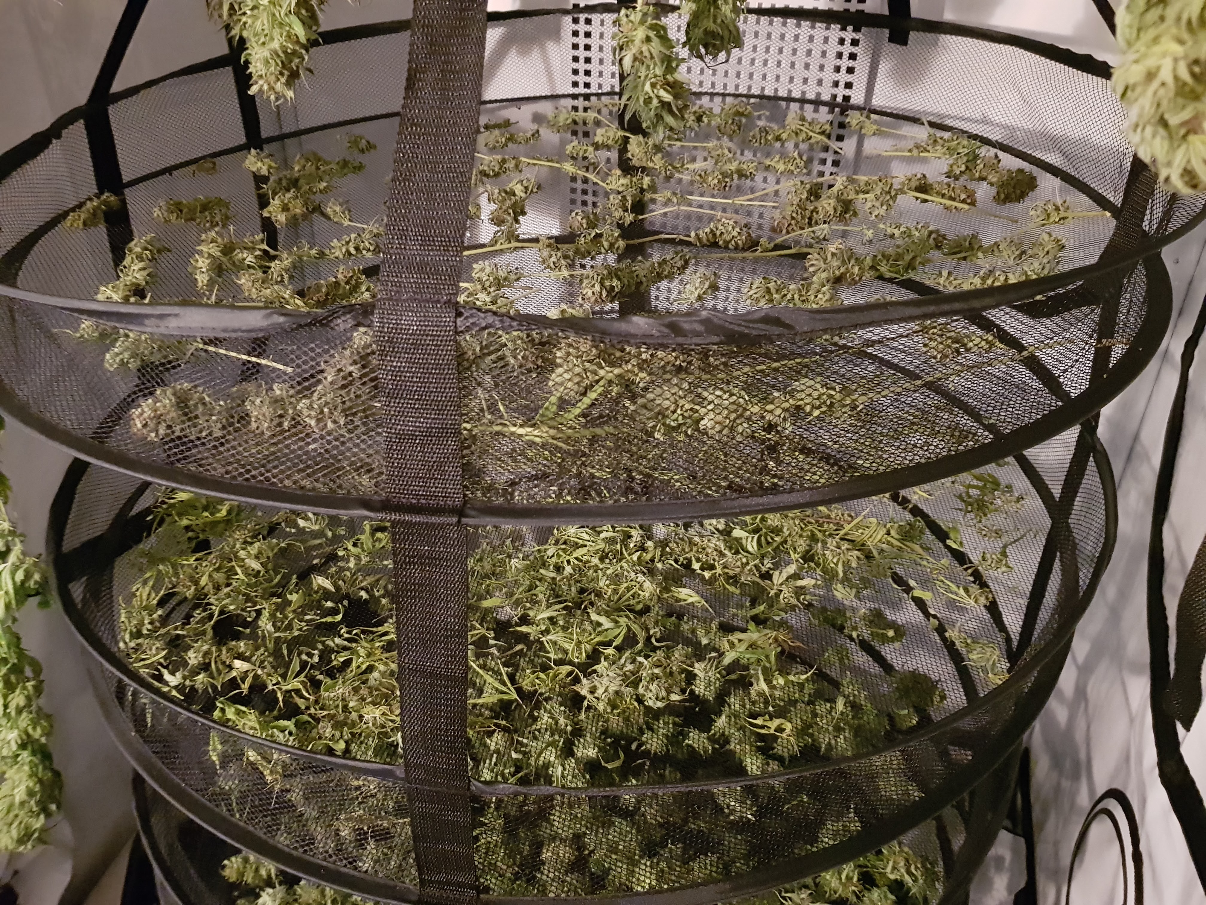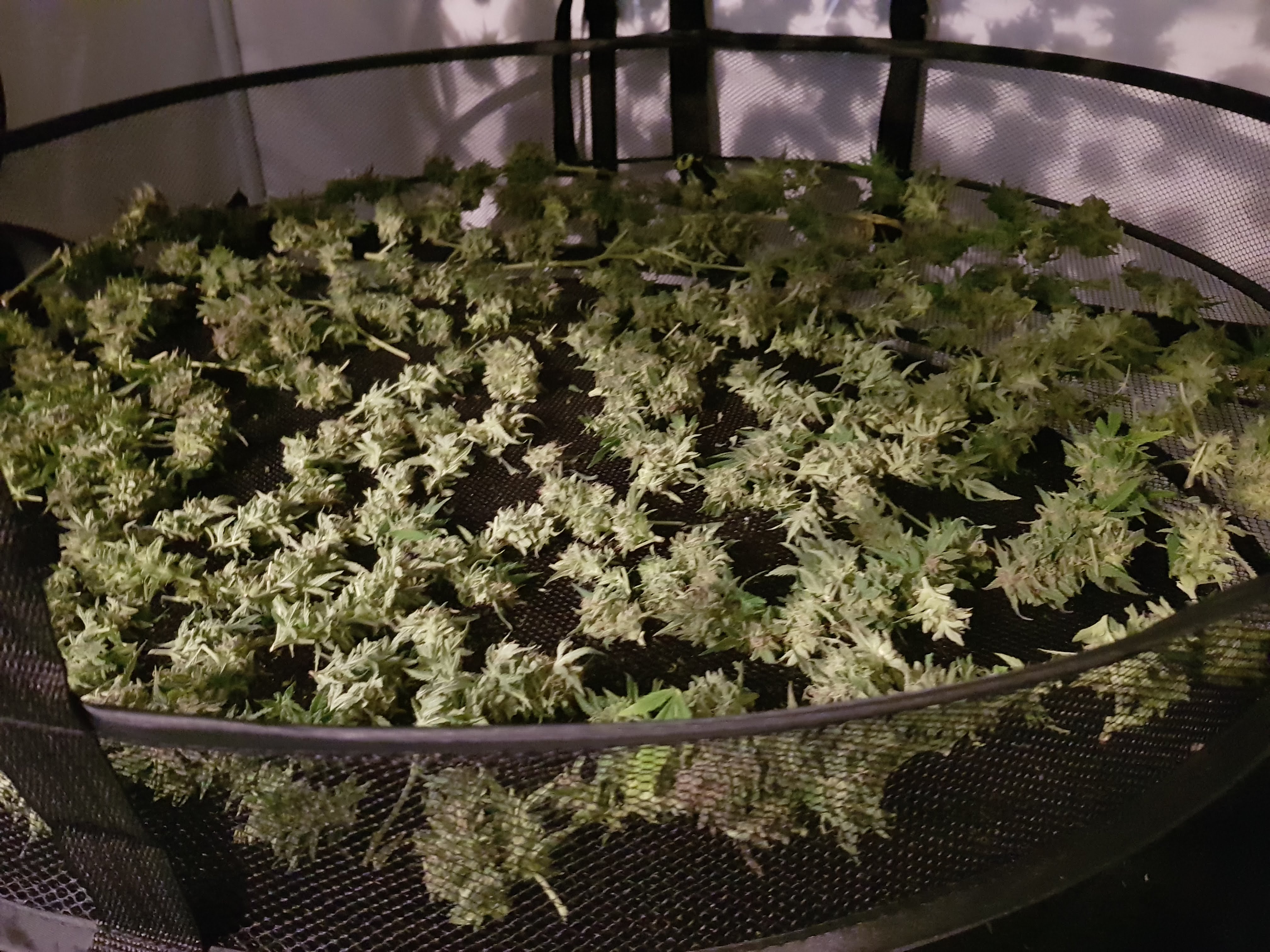 Wird eingefroren und dann bei Zeiten weiter verarbeitet. Der Schnitt von der dritten Happy Haze ist in der Trocknung und wird verraucht.