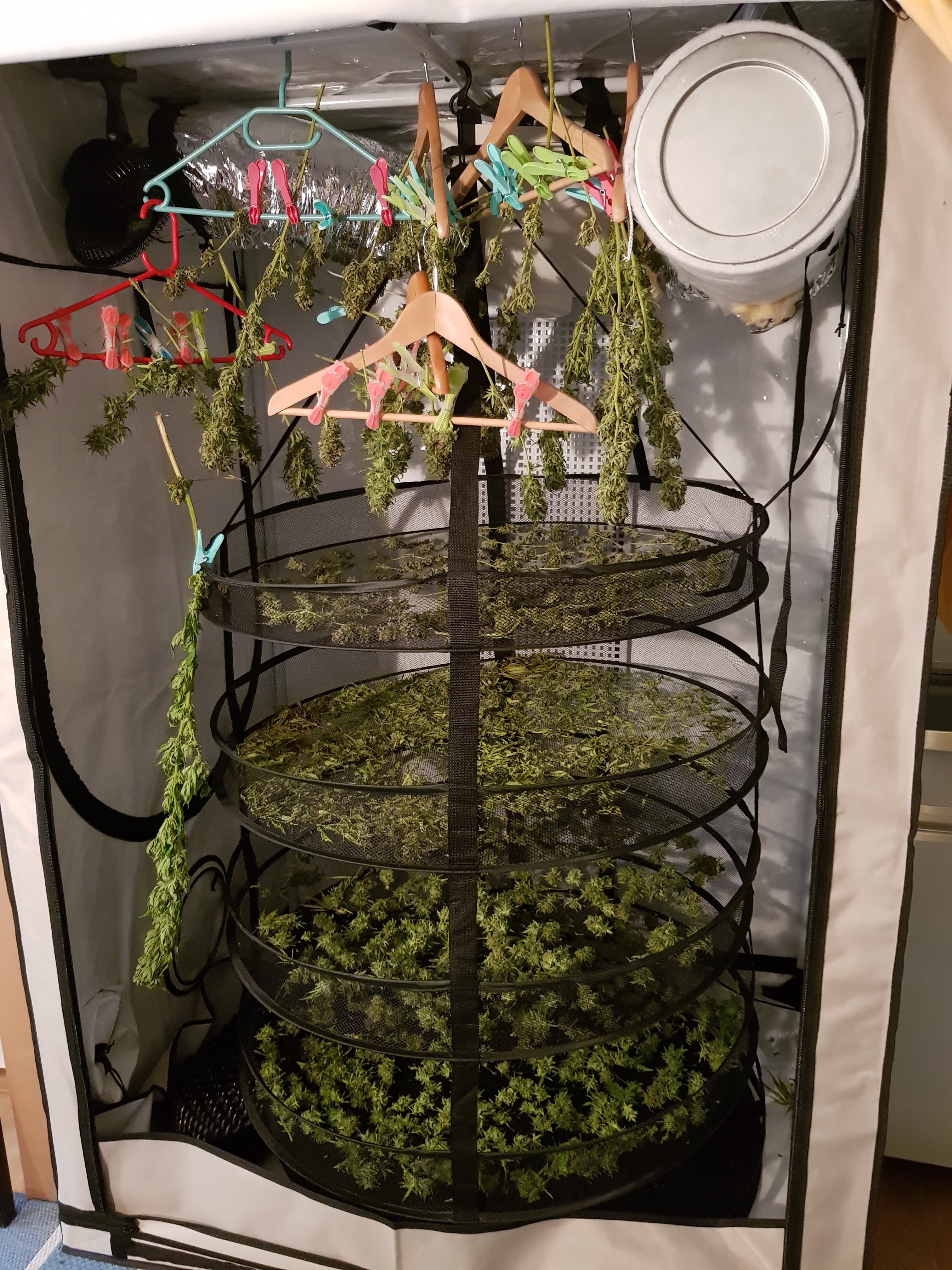 Die Spitzen der Hauptbuds hatten fast alle erste Fäulnisansätze, nicht viel und fast nur dort, also alles im grünen Bereich. Nur die Handschuhe gehen langsam zur Neige und draußen ist kalt beim Ernten ![]()