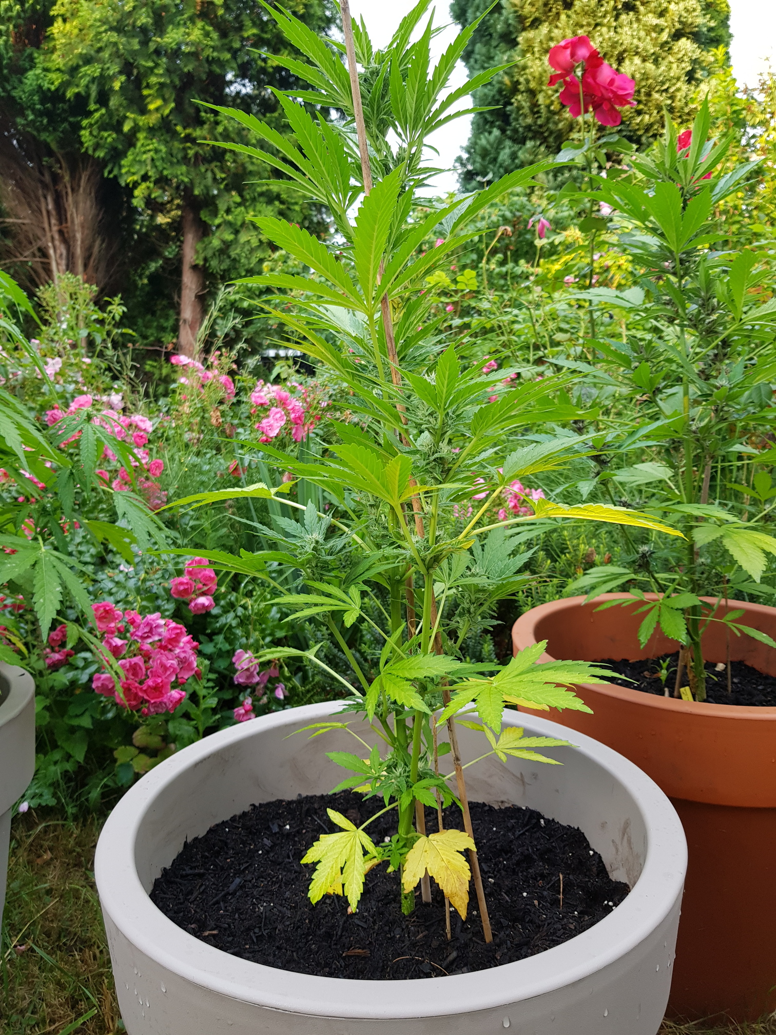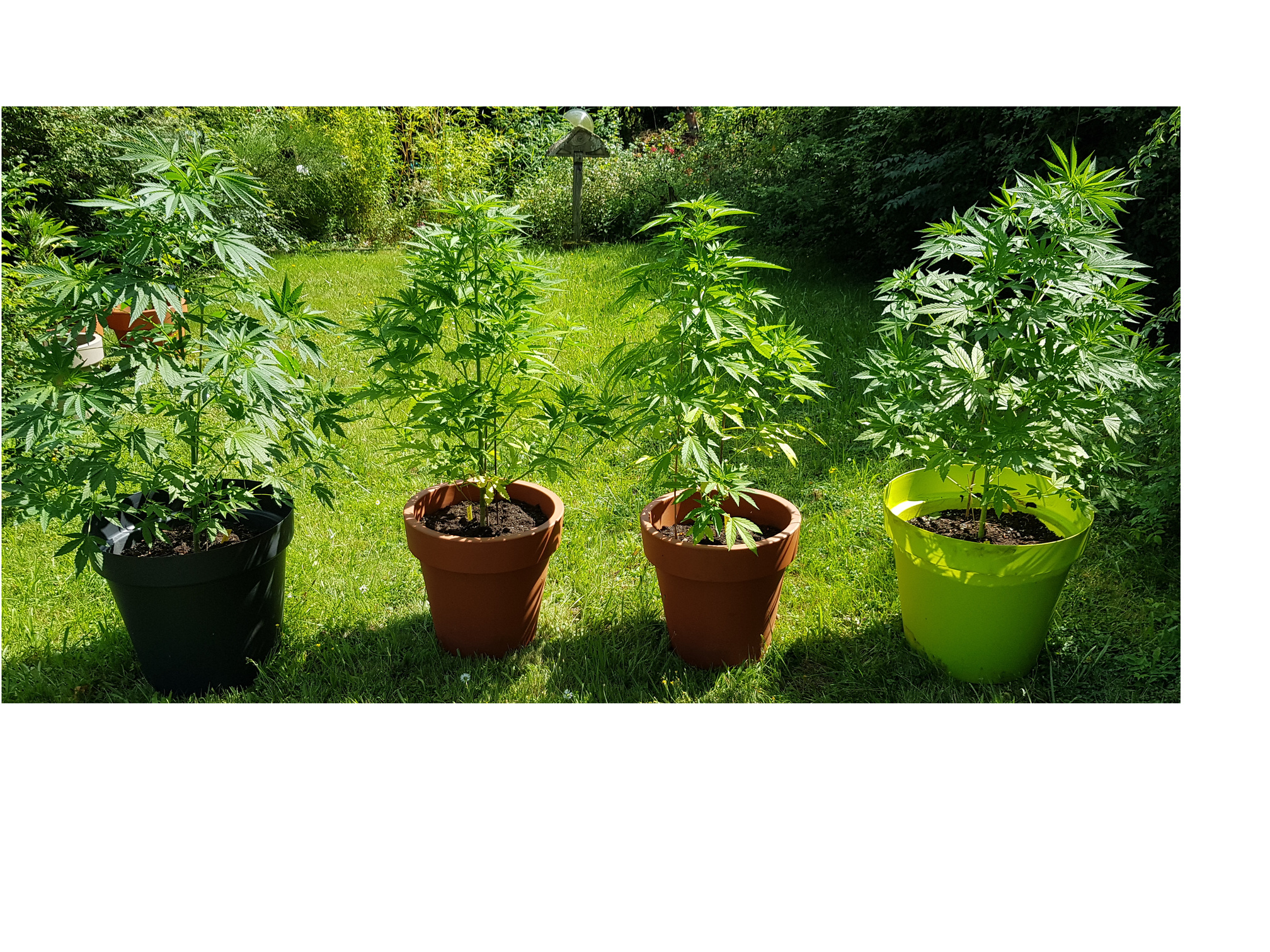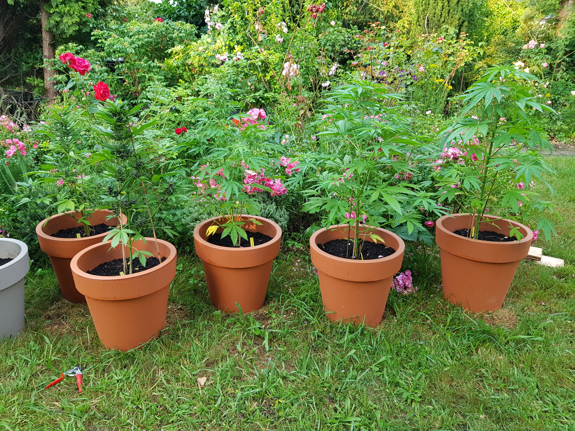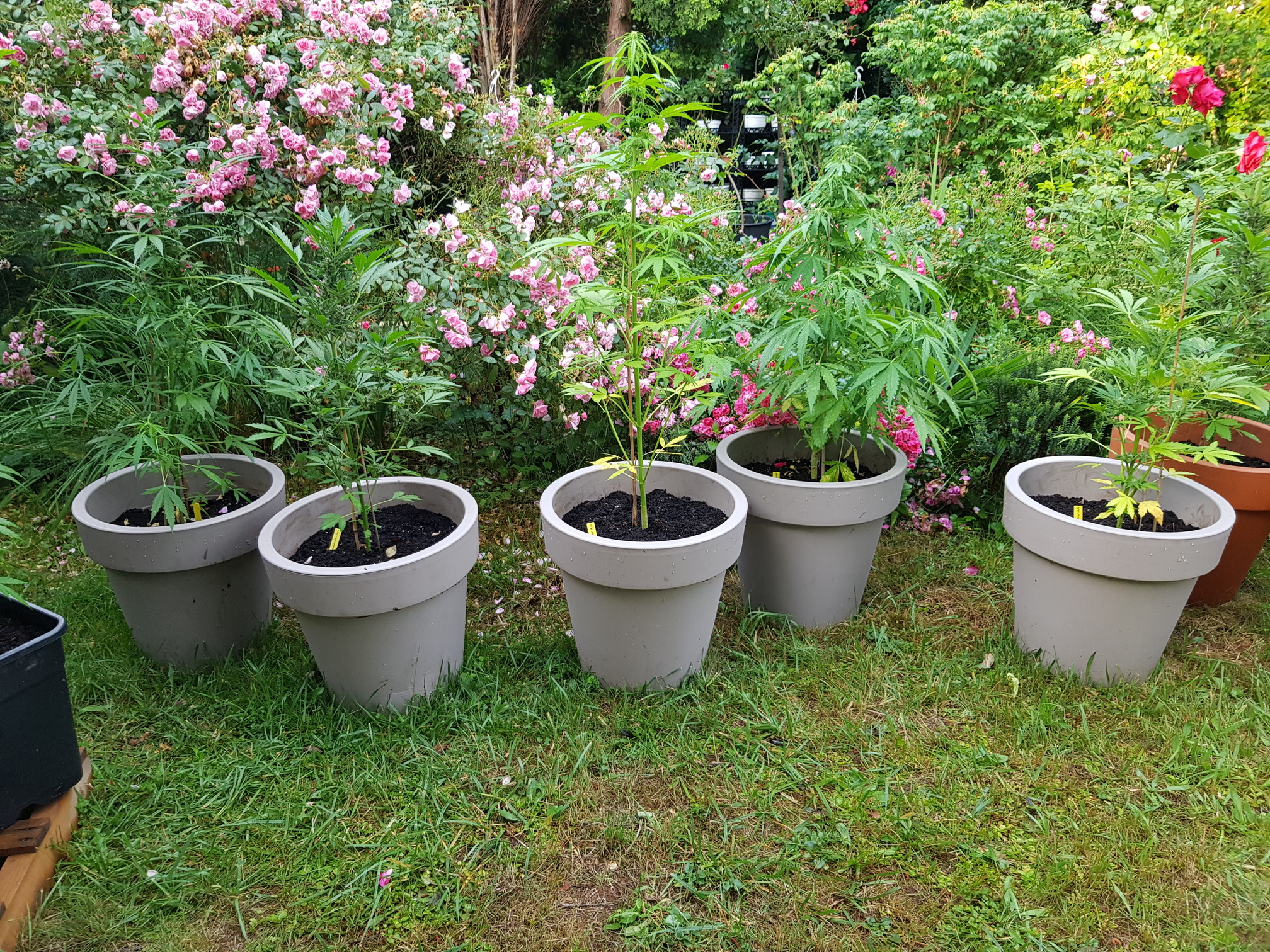 Alle vier wachsen vor sich hin und haben bisher noch nicht an Blüten gedacht. Und freuen sich über die großen Töpfe.