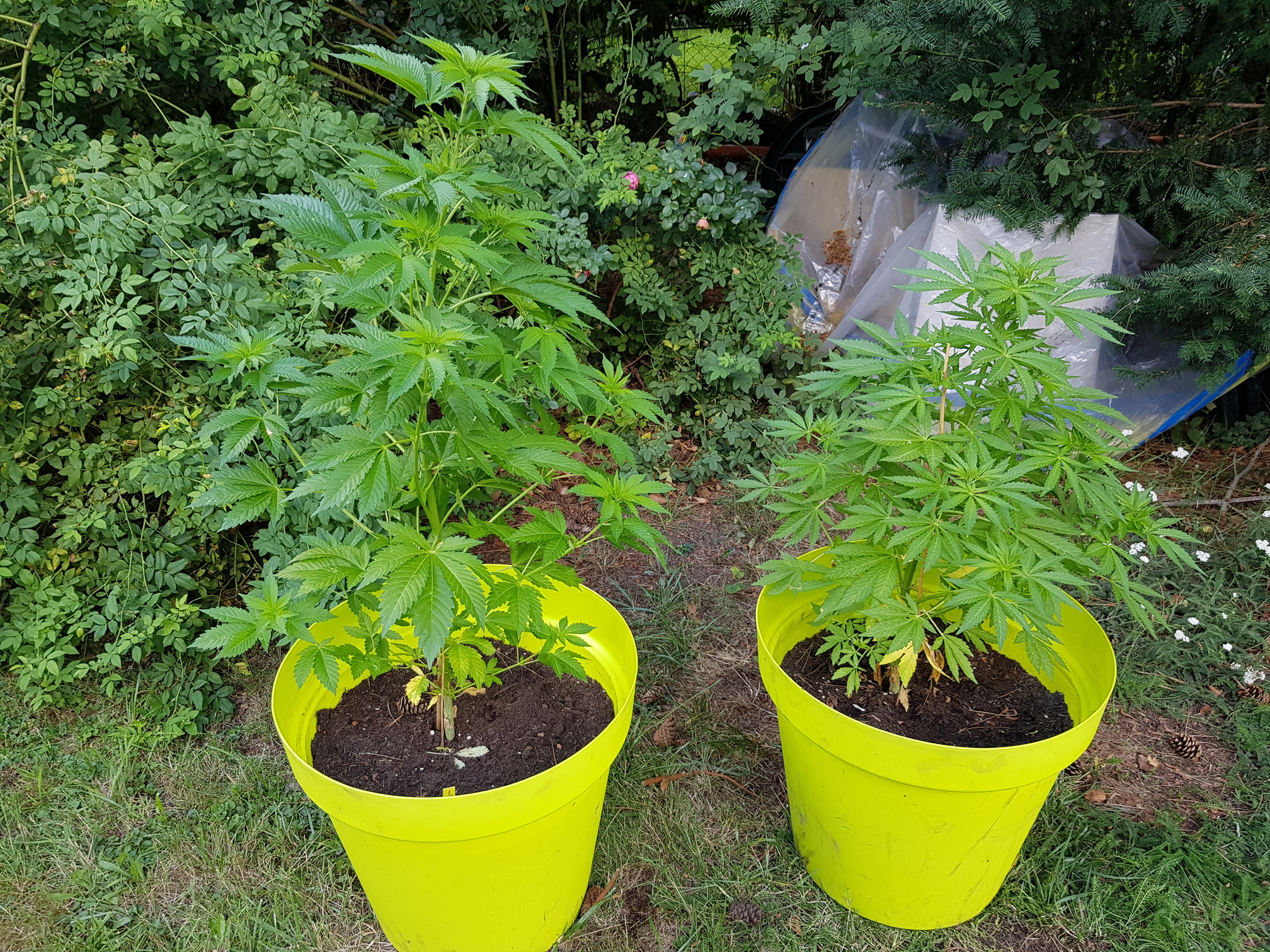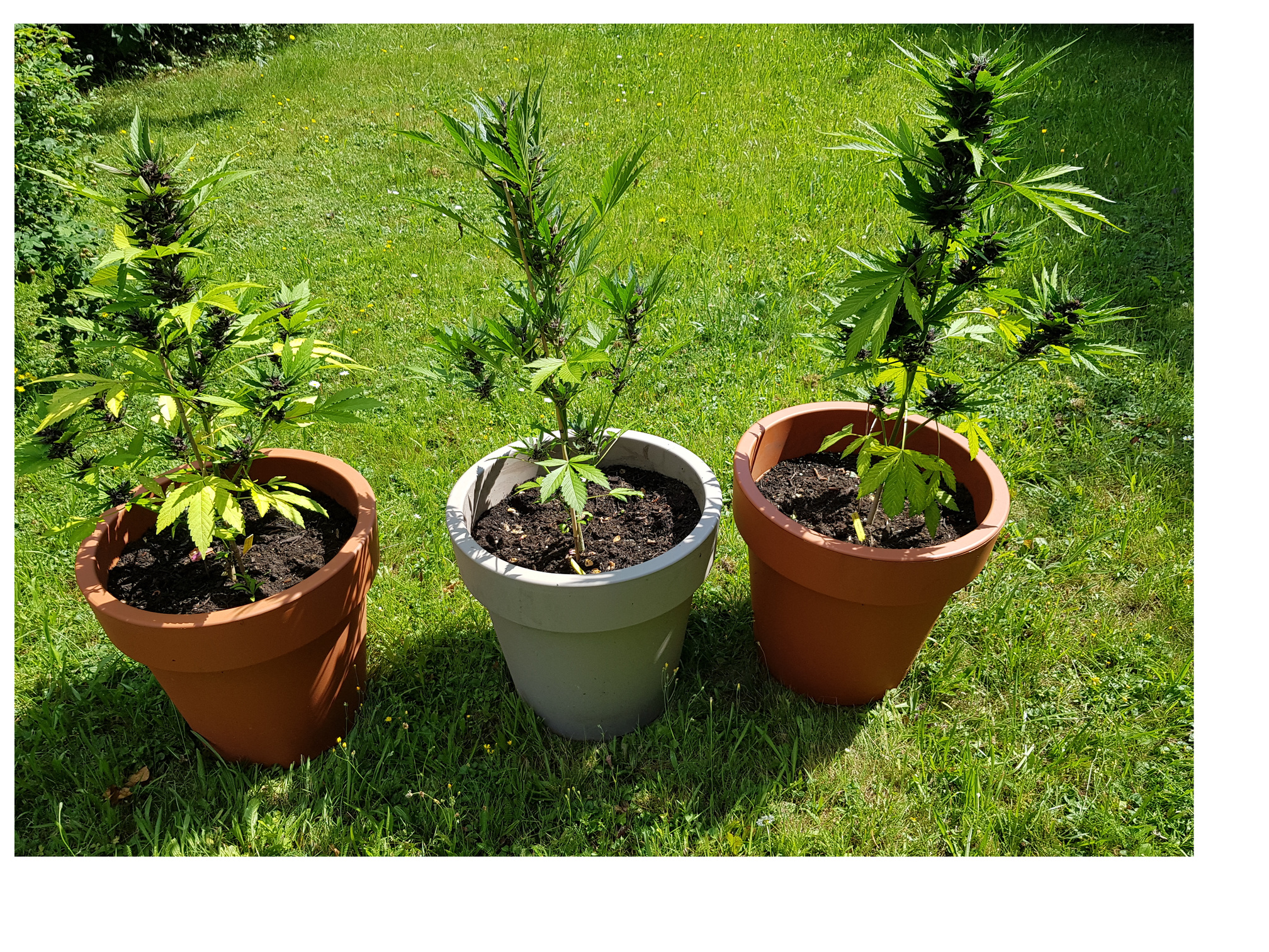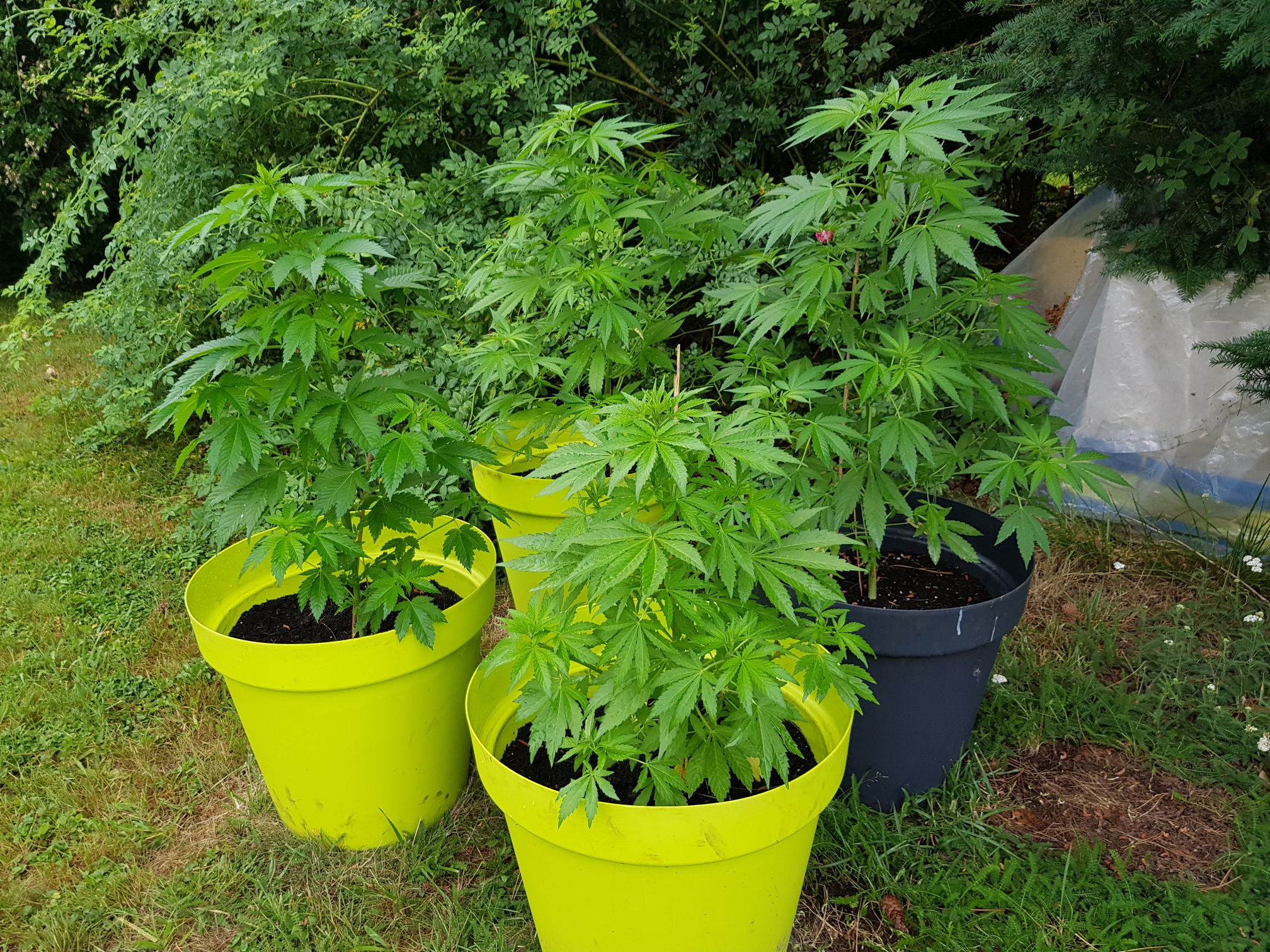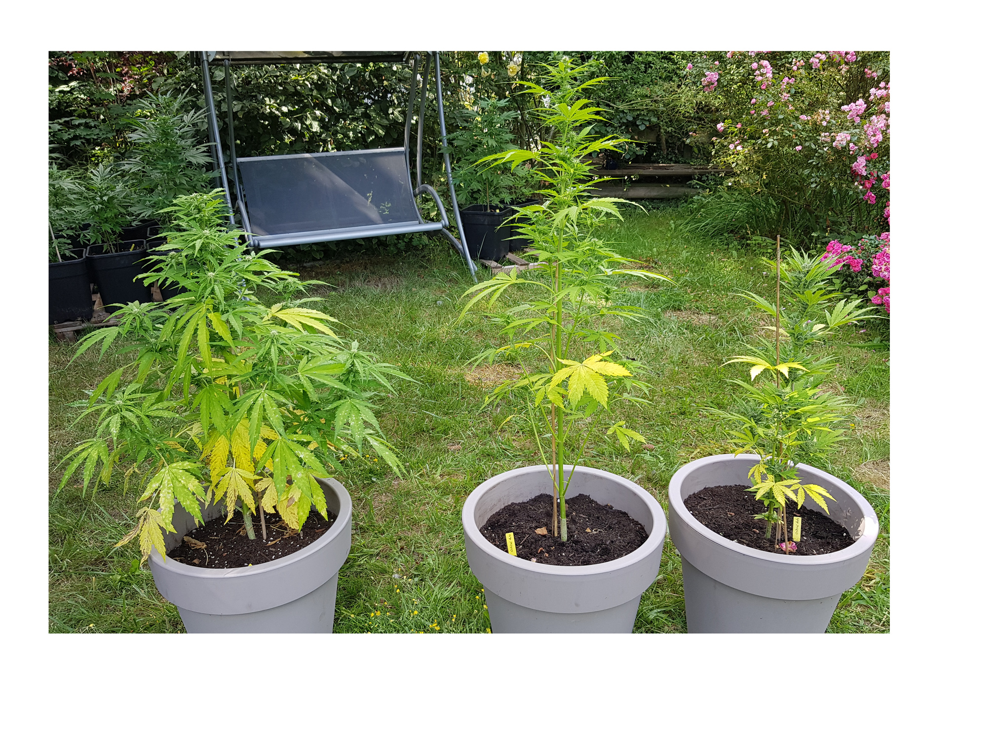 Alle vier wachsen vor sich hin und haben bisher noch nicht an Blüten gedacht. Und freuen sich über die großen Töpfe.