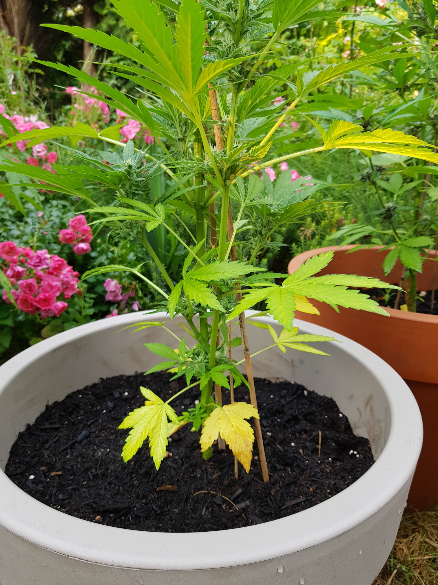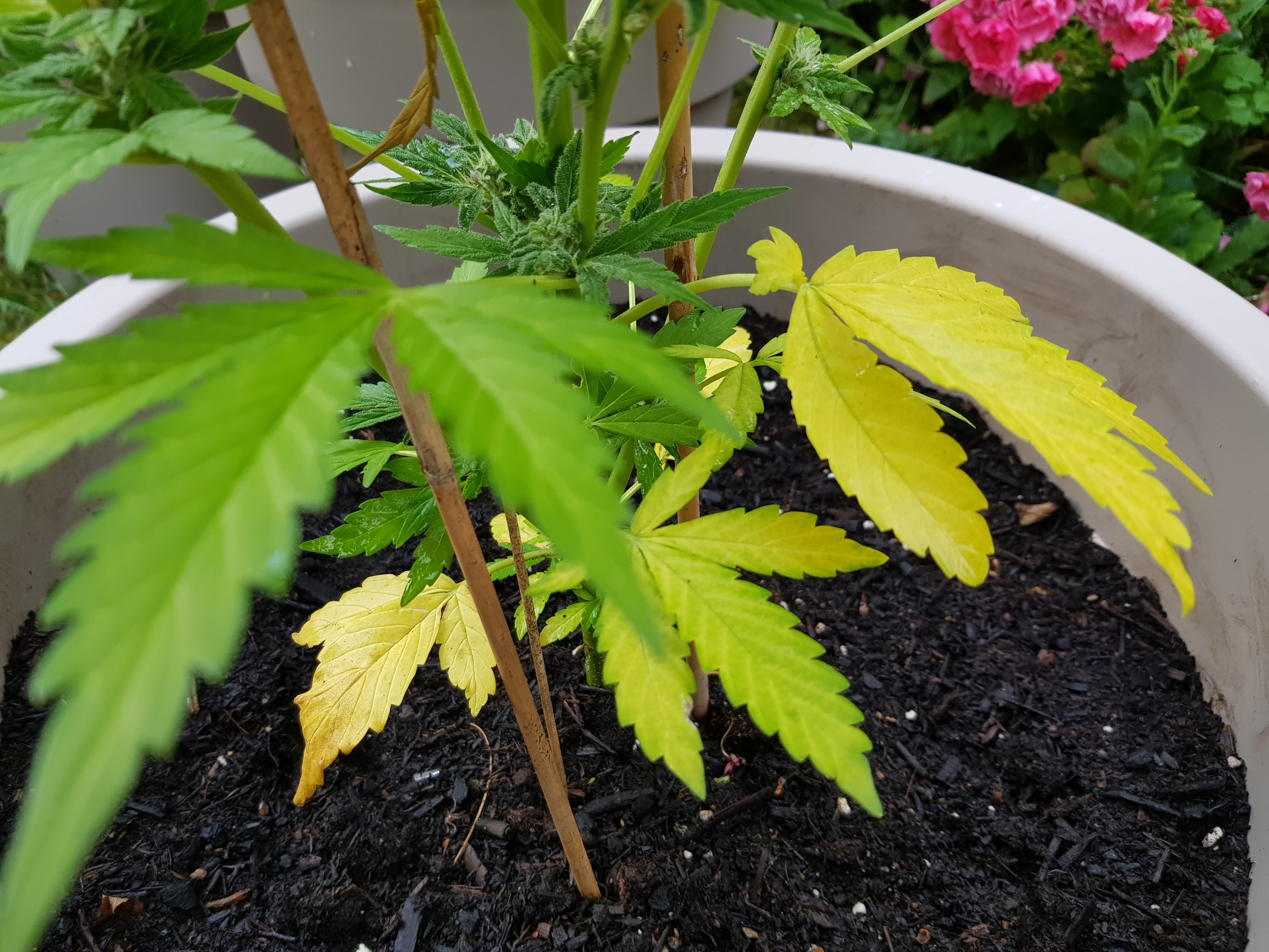 Gelbe Blätter untenrum sind relativ normal. Weiter oben eher nicht. Aber das eine Blatt auf dem ersten Foto rechts (Problem 3) scheint mir nur grad in nem Sonnenfleck zu stehen? Oder ist das auch gelb?