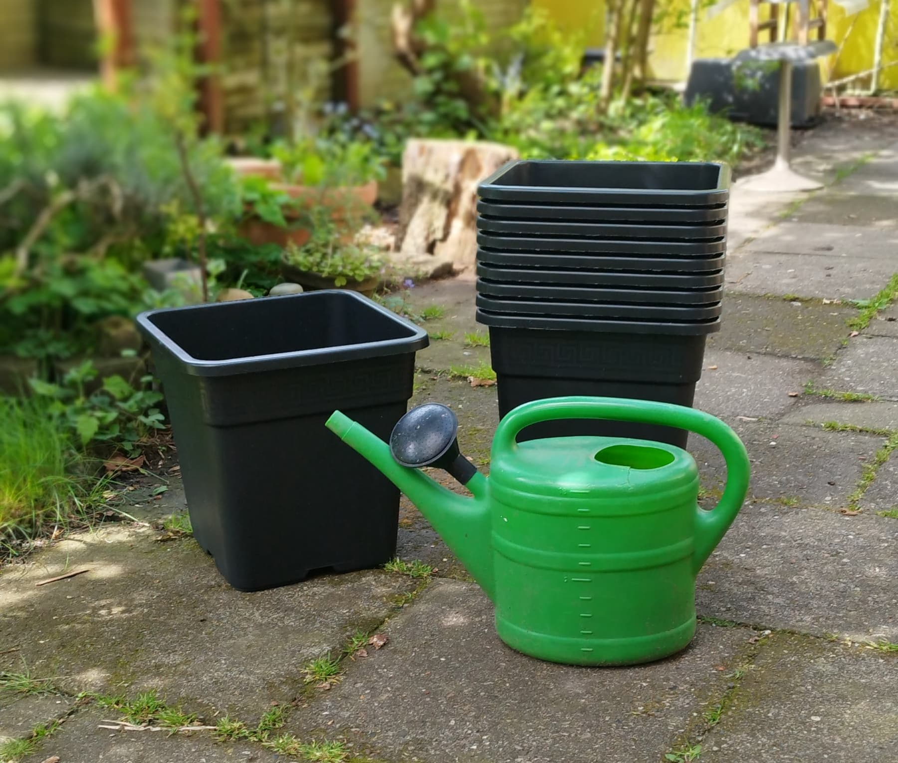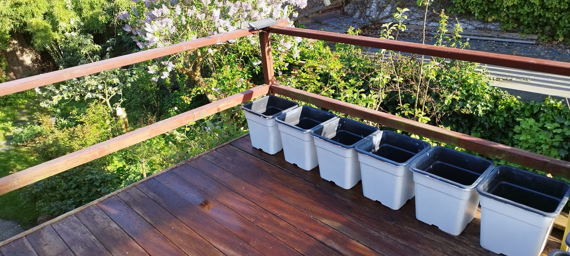 Und heute die Plantagenterasse mit gefüllten Pötten bestückt.