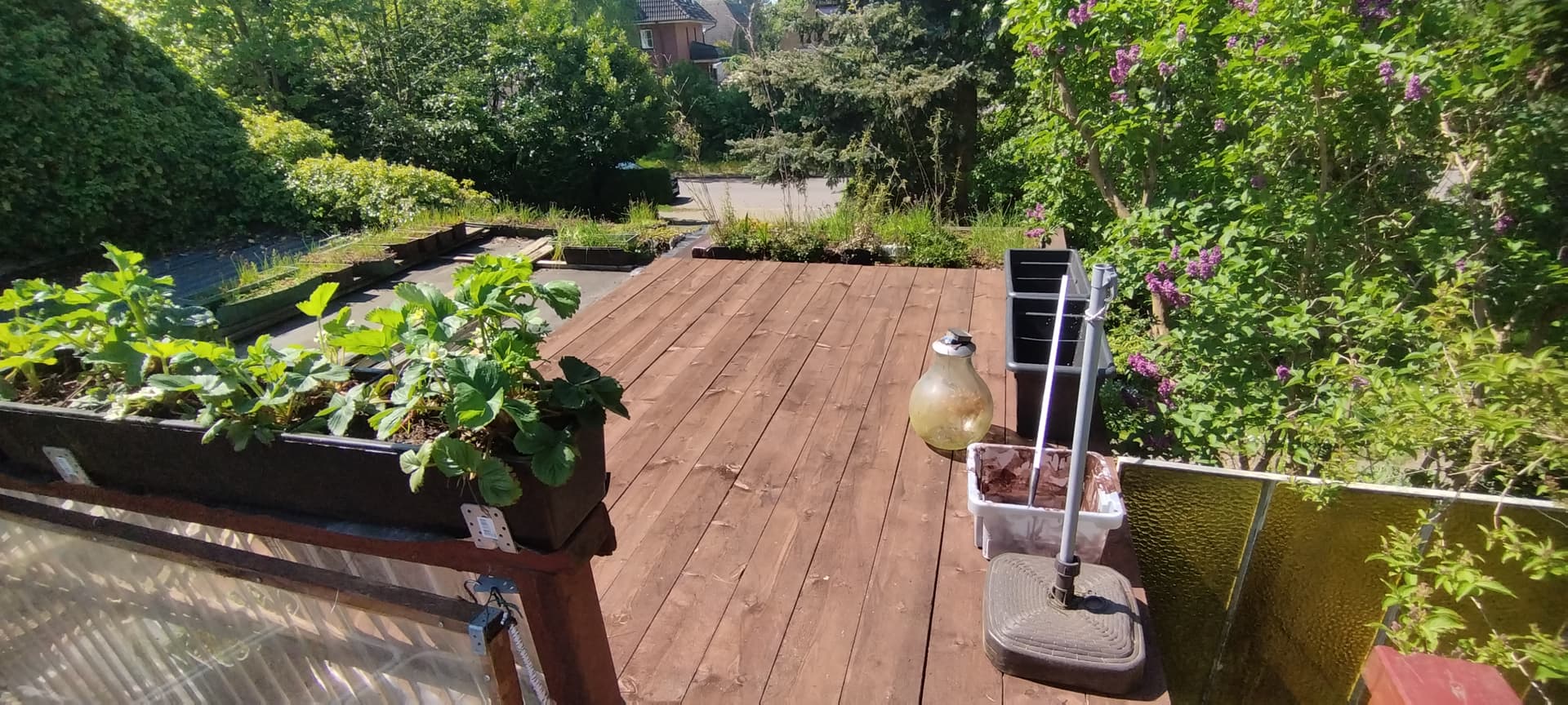 Garagendach auch noch beplankt - da geht noch was, wenn ein Sichtschutz da ist! Sind 12 m² in Süüüdlage!