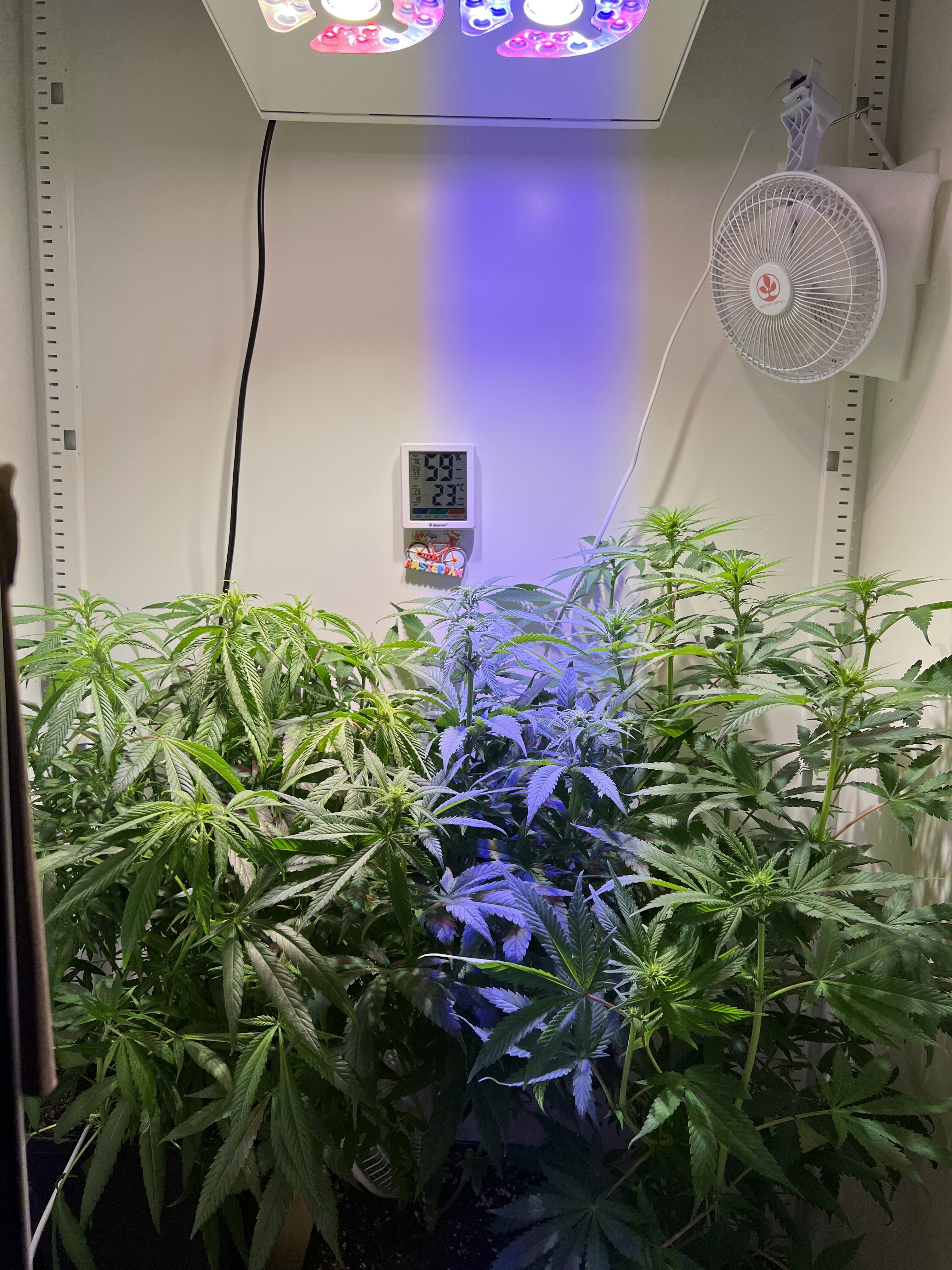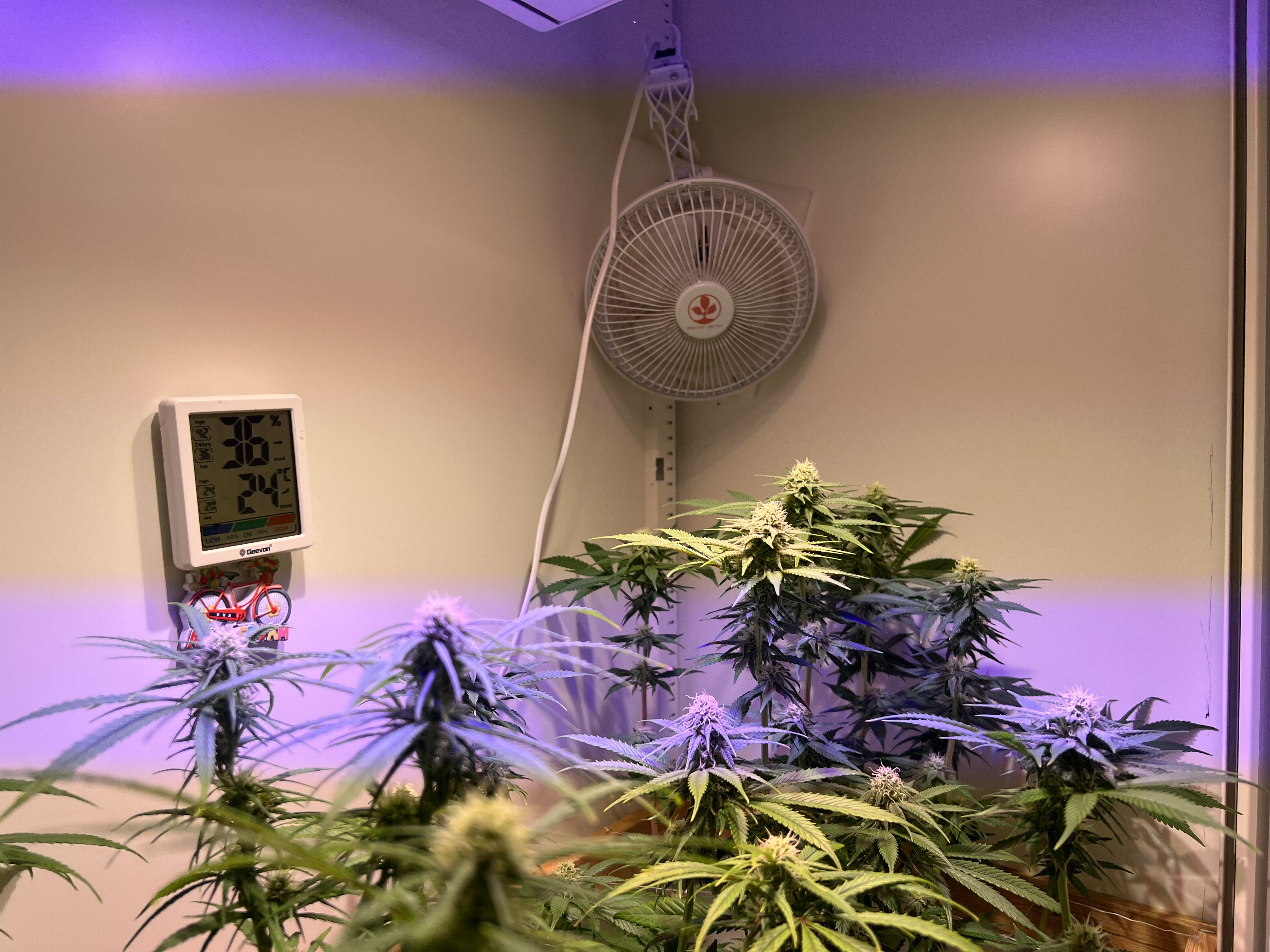 Gestern habe ich den Abstand der Blumen zum Licht noch einmal vergrößert und meinen zweiten Venti unter die die Blätter gepackt, damit auch hier eine schöne Zirkulation herrscht.