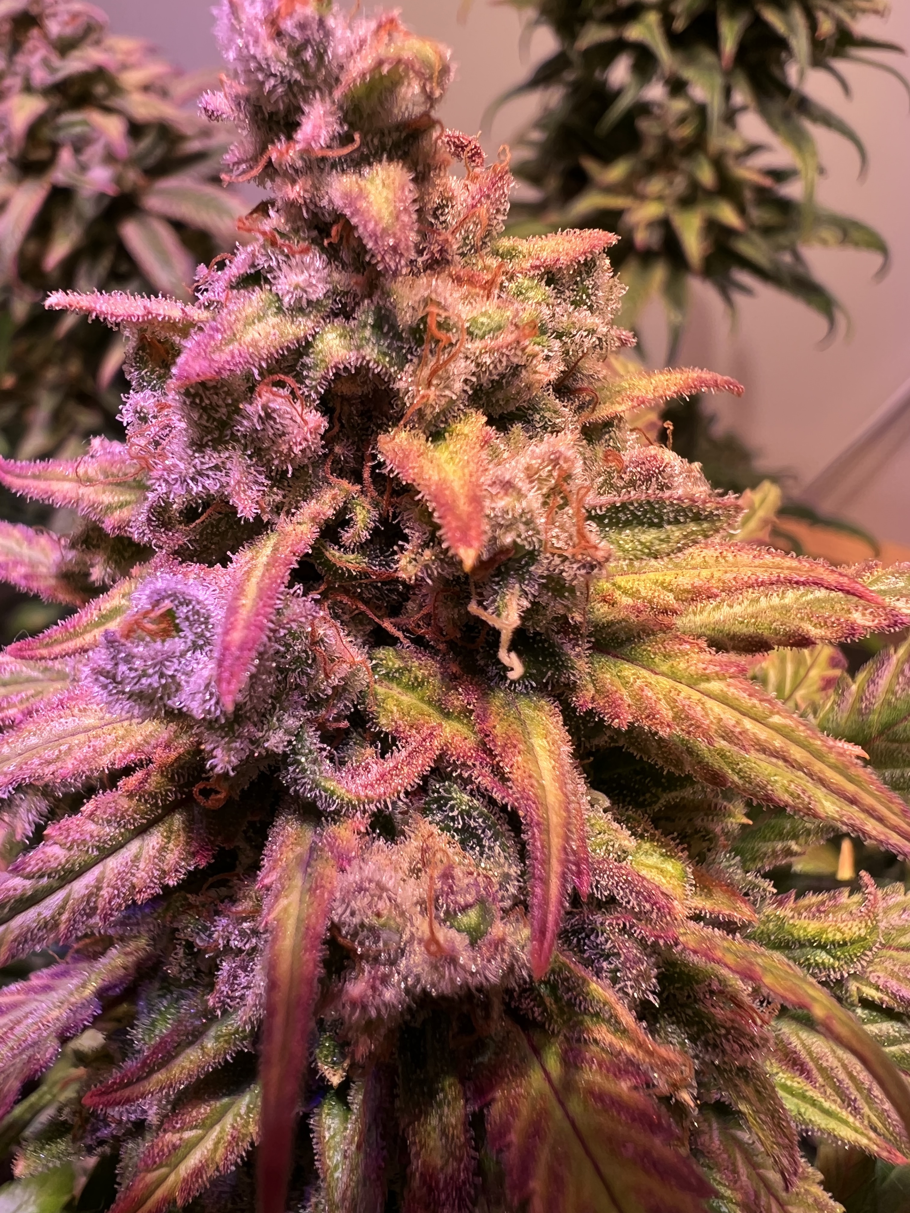 Die Ladys sind weiterhin durstig und die Trichome noch alle recht klar. Das wird noch ne Weile bis zum köpfen dauern. Derzeit bekommen sie weiterhin alle 5 Tage ihre 100% vom BB-Schema.