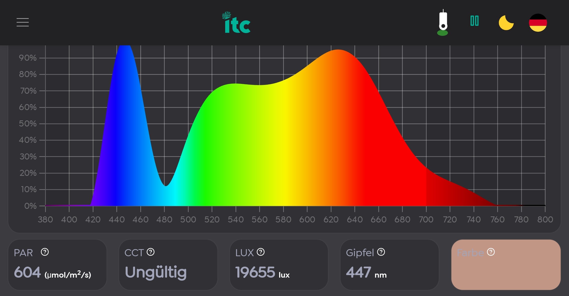 Hierzu habe ich direkt meine Spiderfarmer SF1000 mit meinem ITCparwise vermessen, das Ergebnis bei 100% und 30cm Abstand: