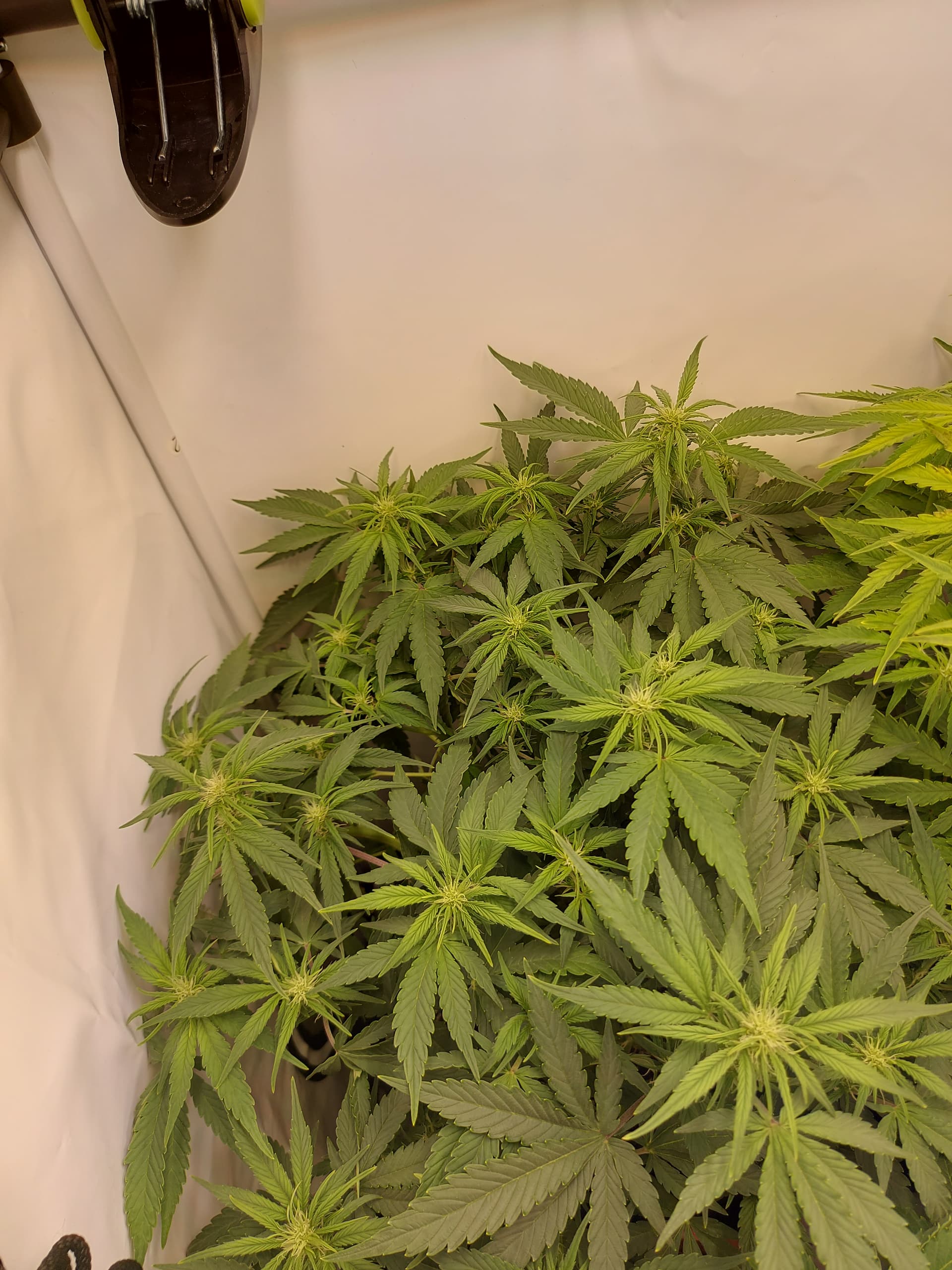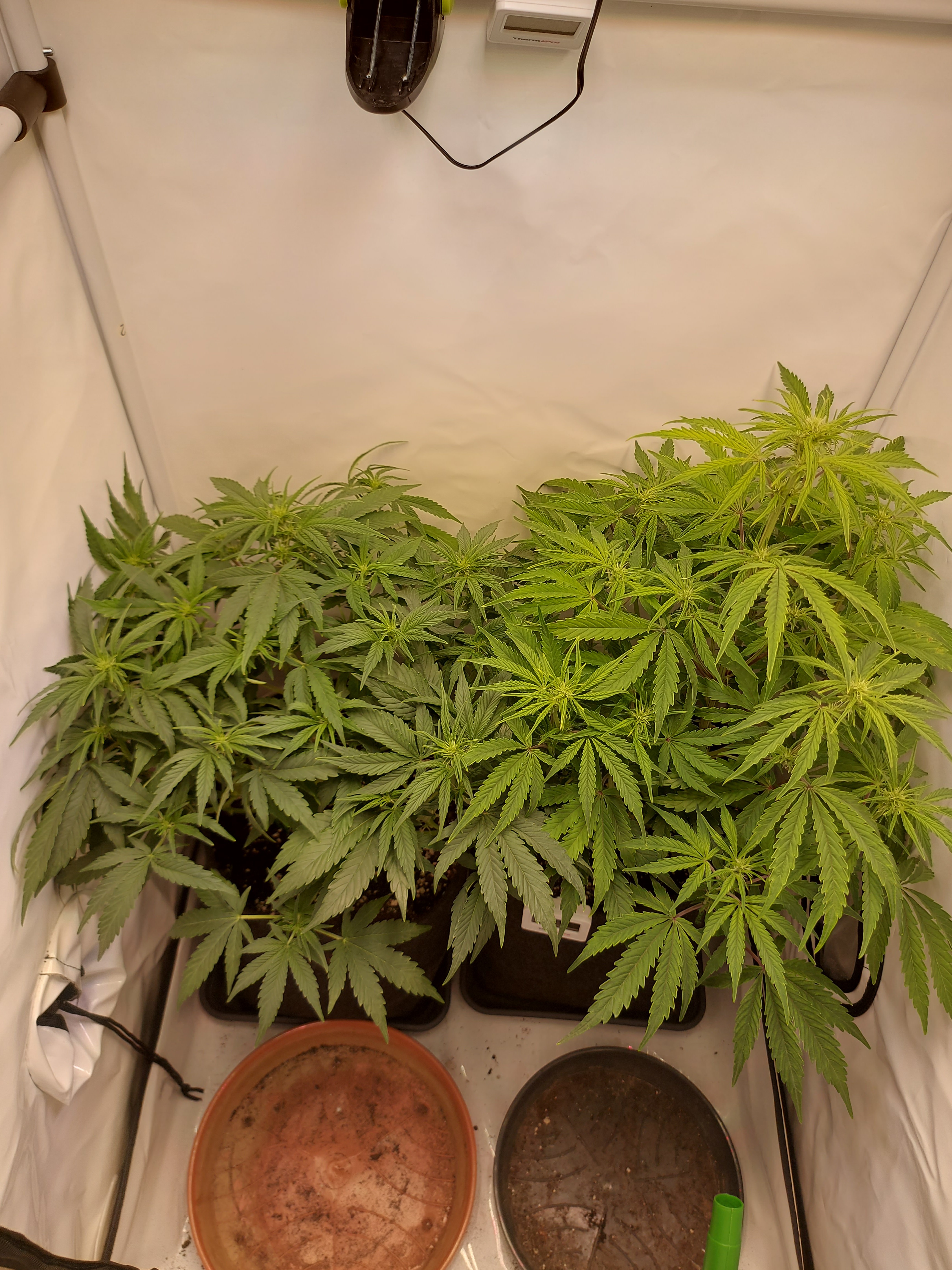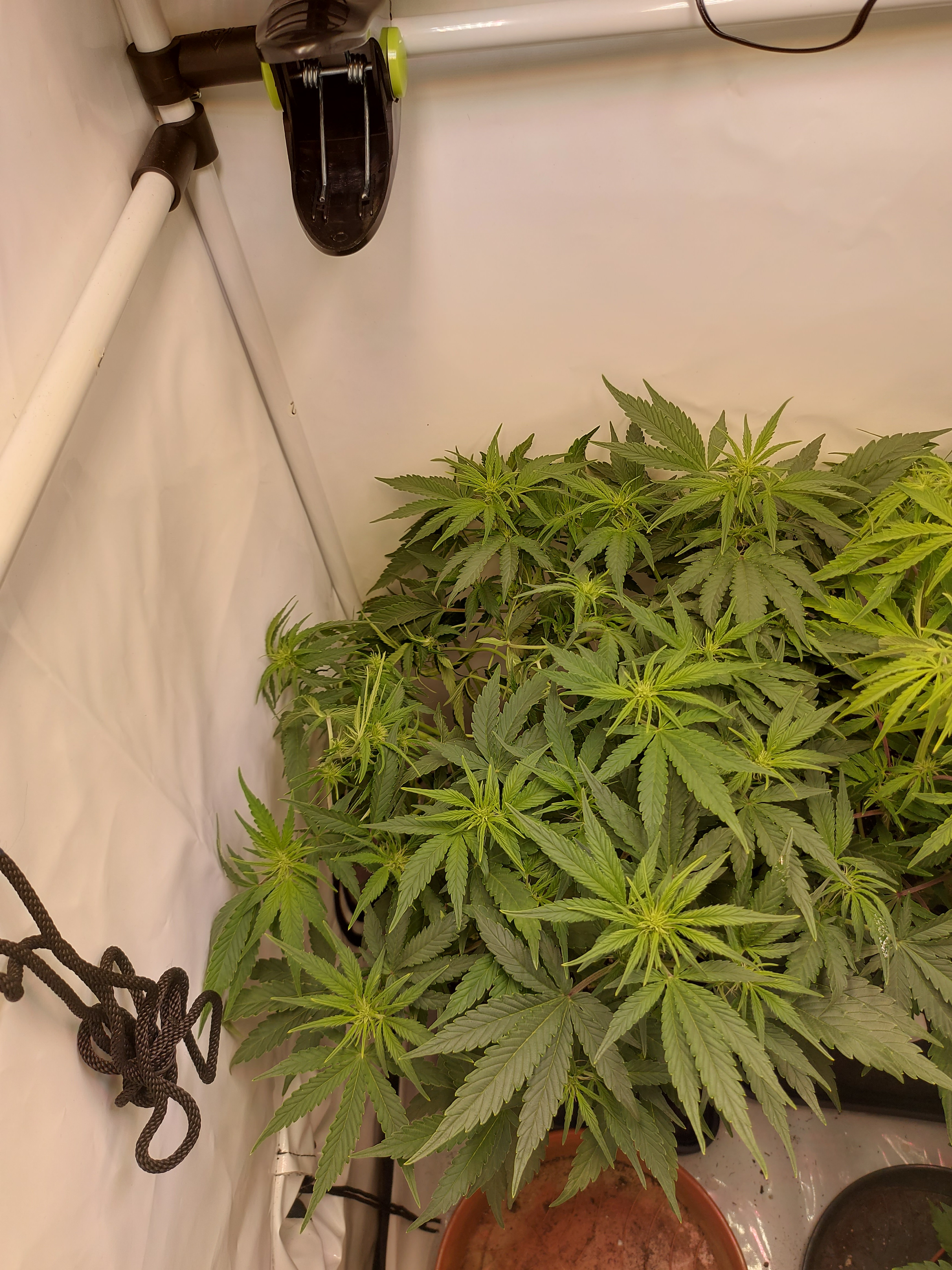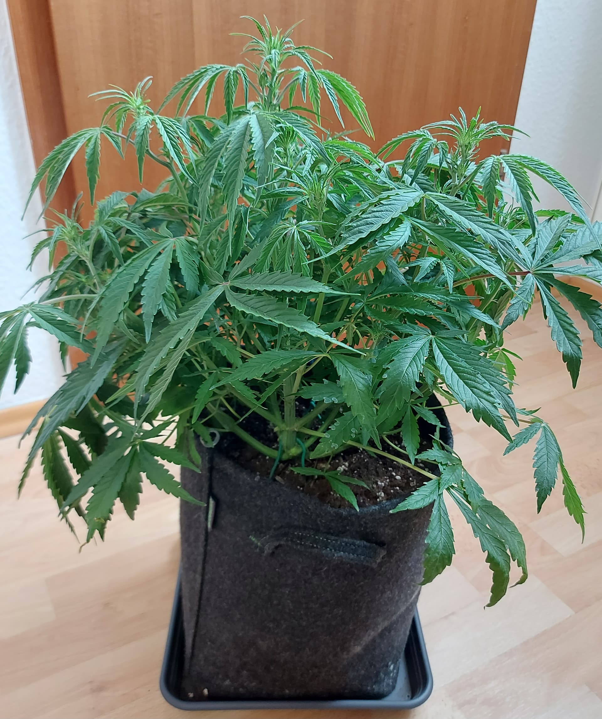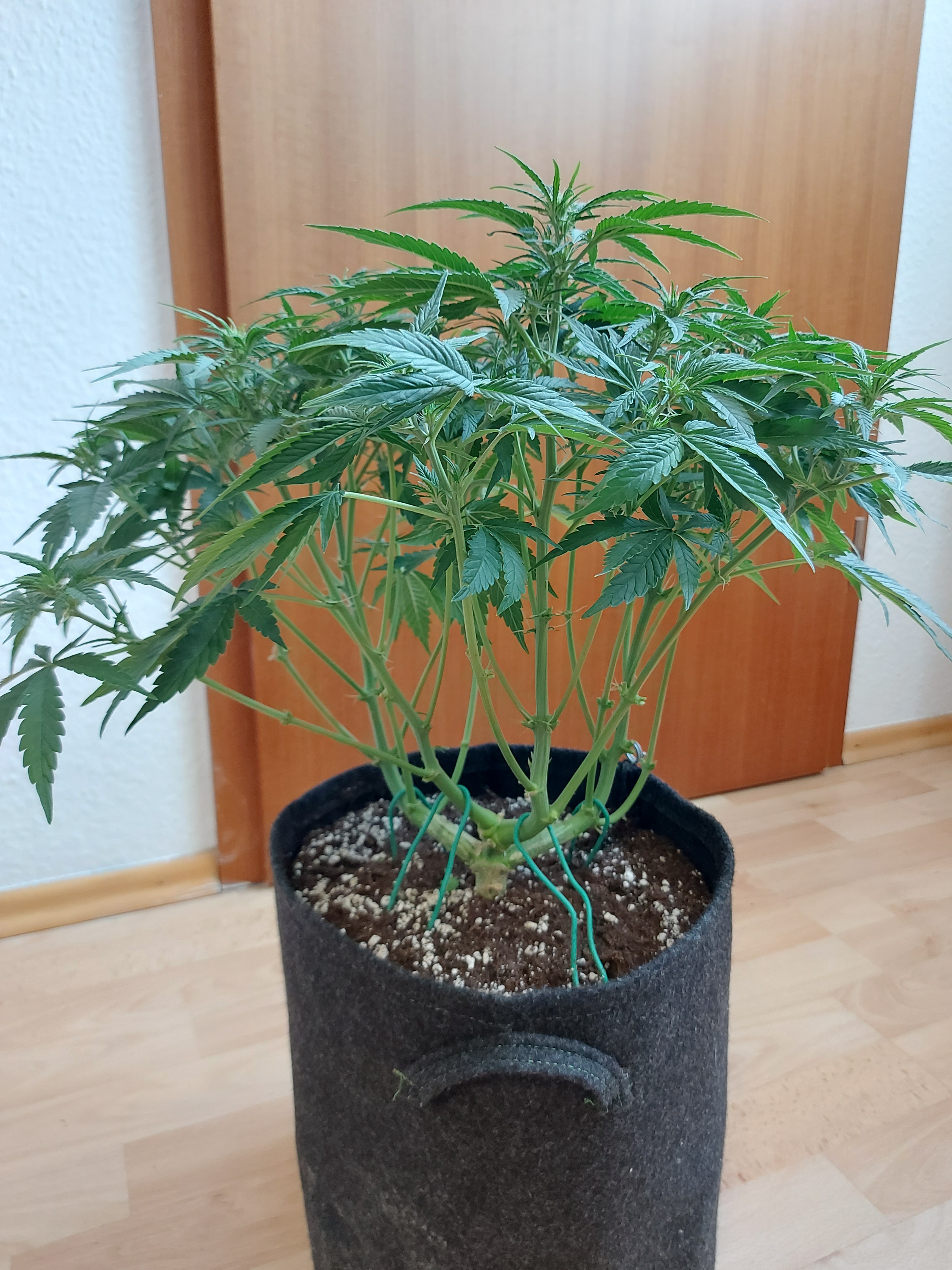 die Nummer 2 ist zu einem schönen Busch gewachsen, so wie ich mir das durch das Training gewünscht habe. Mängel kann ich absolut keine Erkennen. Gestern habe ich bei beiden die untersten Blätte und triebe nochmal entfernt um für etwas mehr zirkulation zu sorgen. Ich habe auch auf Schädlinge geprüft und nichts festgestellt. Auch Trauermücken habe ich aktuell keine im Zelt was schon eine große Bereicherung ist.