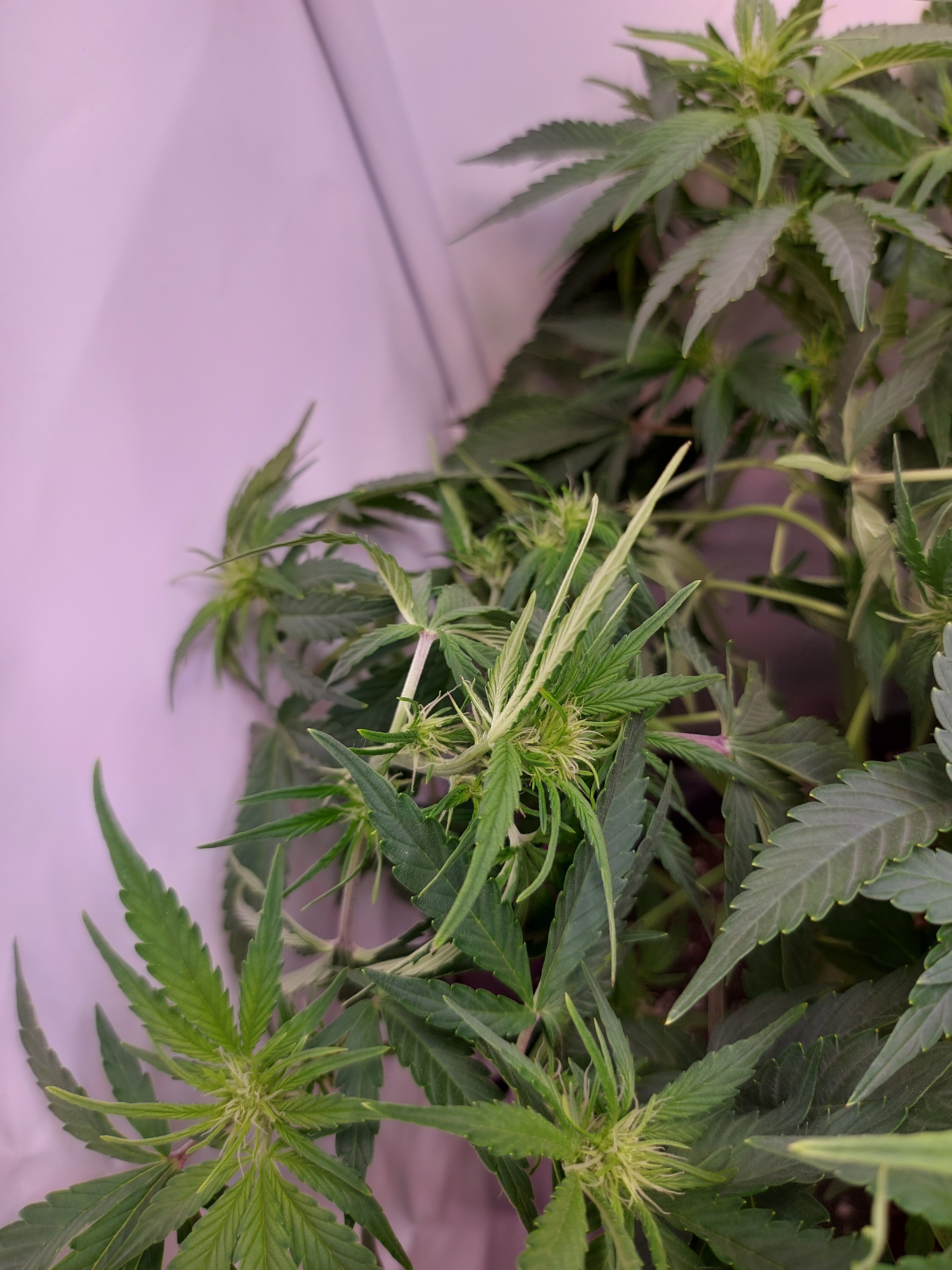 Die Vorblüte und damit auch der Stretch haben begonnen. Ich habe einige Blüten-Stempel finden können und keine Pollensäcke. Ein gutes Zeichen. Die unbekannte Indica habe ich übrigens getoppt aber das ist nur nebensache da die nur als ,Trainings-Pflanze" betrachtet wird um verschiedene Technikten zu proben.