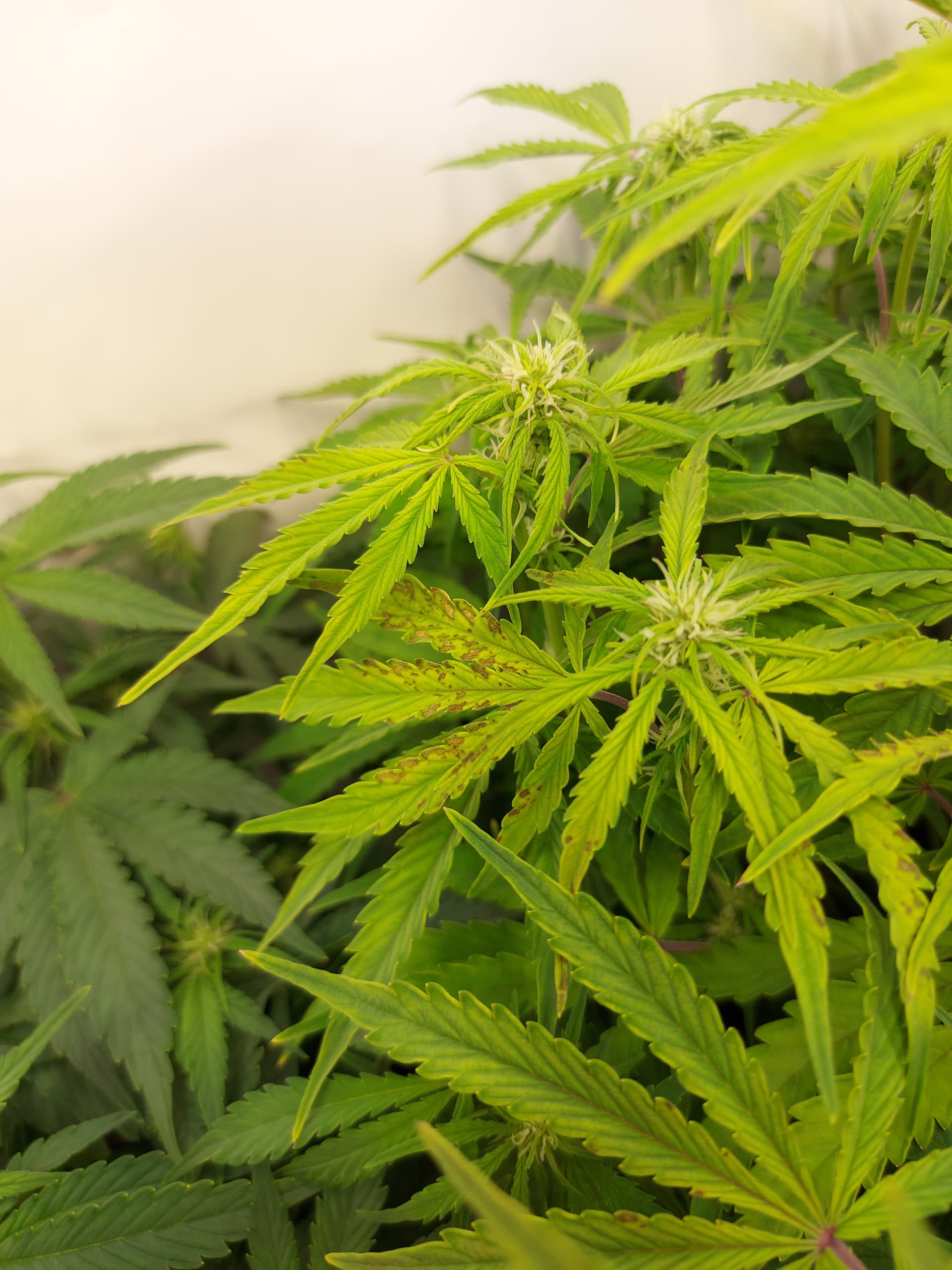 Also die Flecken auf meiner Nummer1 sind nicht besser geworden aber auch nicht wirklich schlimmer. es sieht für mich immernoch nach Calciummangel aus. Allgemein sind die Blätter der Nummer 1 deutlich heller aber das schiebe ich eigentlich auf den Sativa-pheno den sie meiner Meinung nach hat. sie bekommt etwas zu viel Licht weil sie sich so sehr gestreckt hat. ich werde die Nummer 2 heute ,aufbocken" damit beide etwa auf gleicher Höhe sind, dann werde ich die DLI wieder auf ~45 einstellen wobei ich nicht weiß wie genau die Photone app auf Android ist? ich habe immer nur gelesen man soll die App verwenden wenn man IOS hat. Ich habe aber Android.