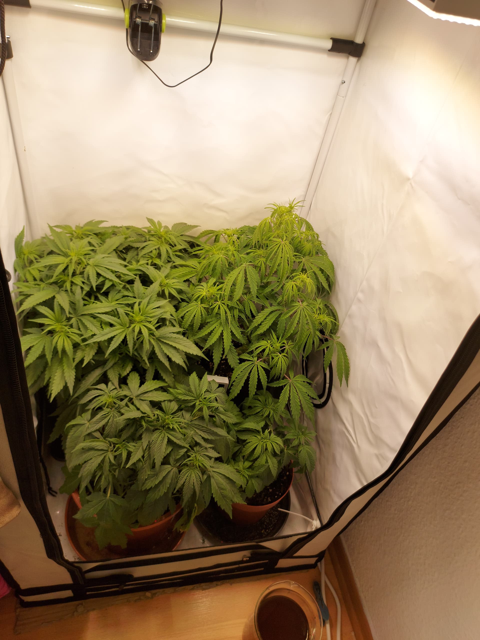 Die RLF ist wirklich etwas hoch es sind aber auch noch keine Buds da. Ich weiß aber dass ich die RLF bald senken muss, werde dann einfach die Lüftung erhöhen und einen Luftentfeuchter anschaffen