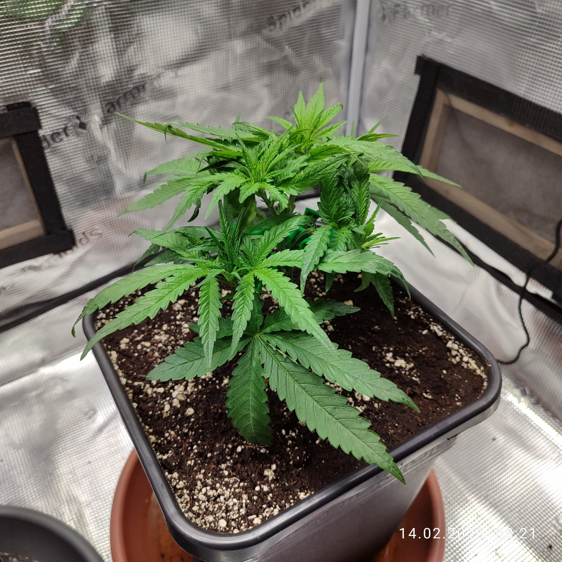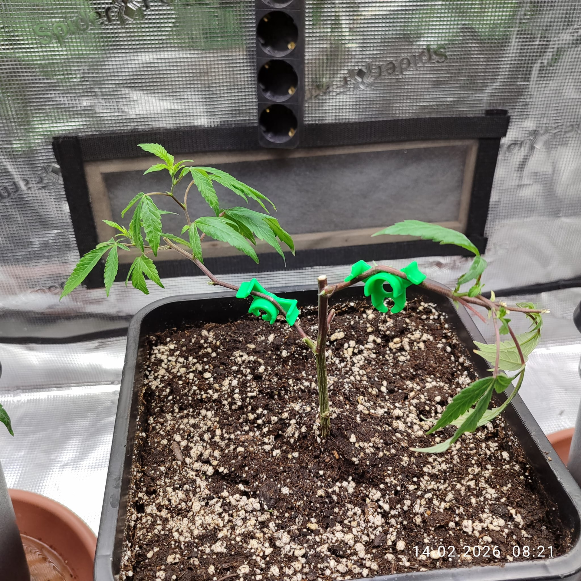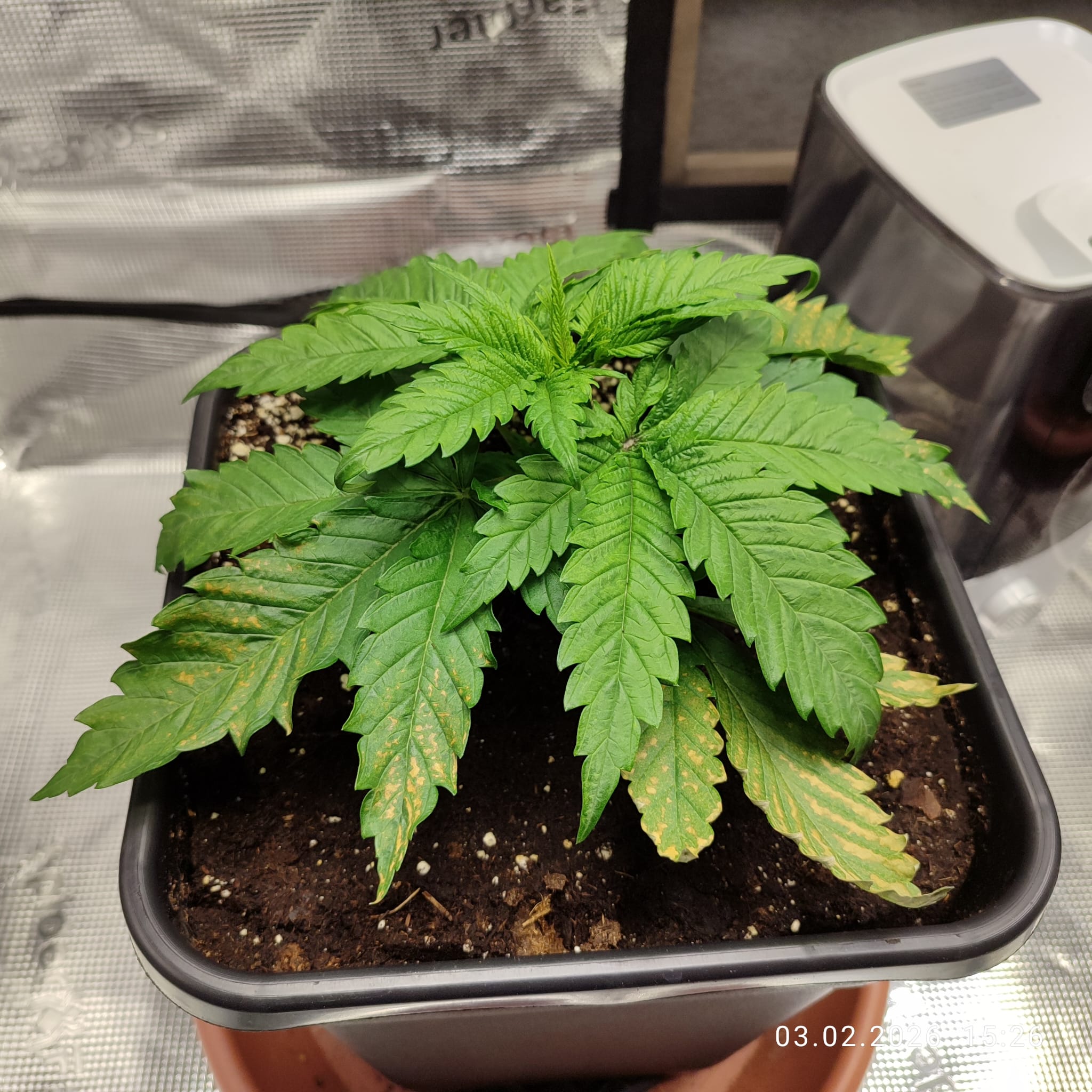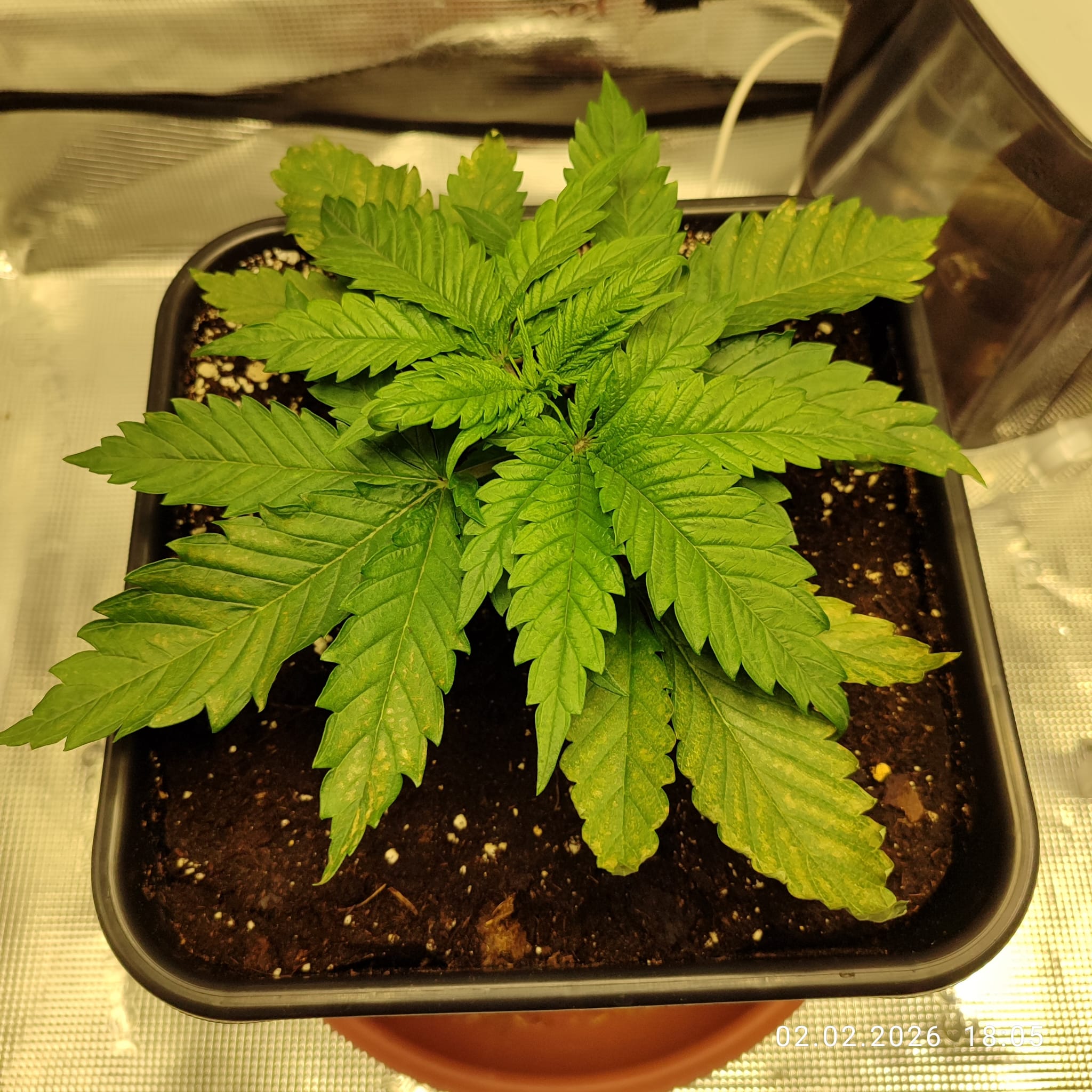 Abhilfe soll da nun das Calcium Kick von Plagron verschaffen. Da der Lightmix in Kombination mit Osmosewasser und Mineralischer Düngung keinerlei Pufferwirkung haben soll, hoffe ich, dass dieses nun Besserung bringt. Ich danke an dieser Stelle, und widme diesen Grow dem lieben @stew welcher mich in dieser Recherche bestärkte und mir die Richtung für passende Hilfsmittel zeigte. Gestartet mit den Samen in kleinen 2 Liter Pötten nur mit Lightmix Erde ging es los am 12. Januar. Das Kick kommt später beim Umtopfen in die 11l Endtöpfe hinzu.