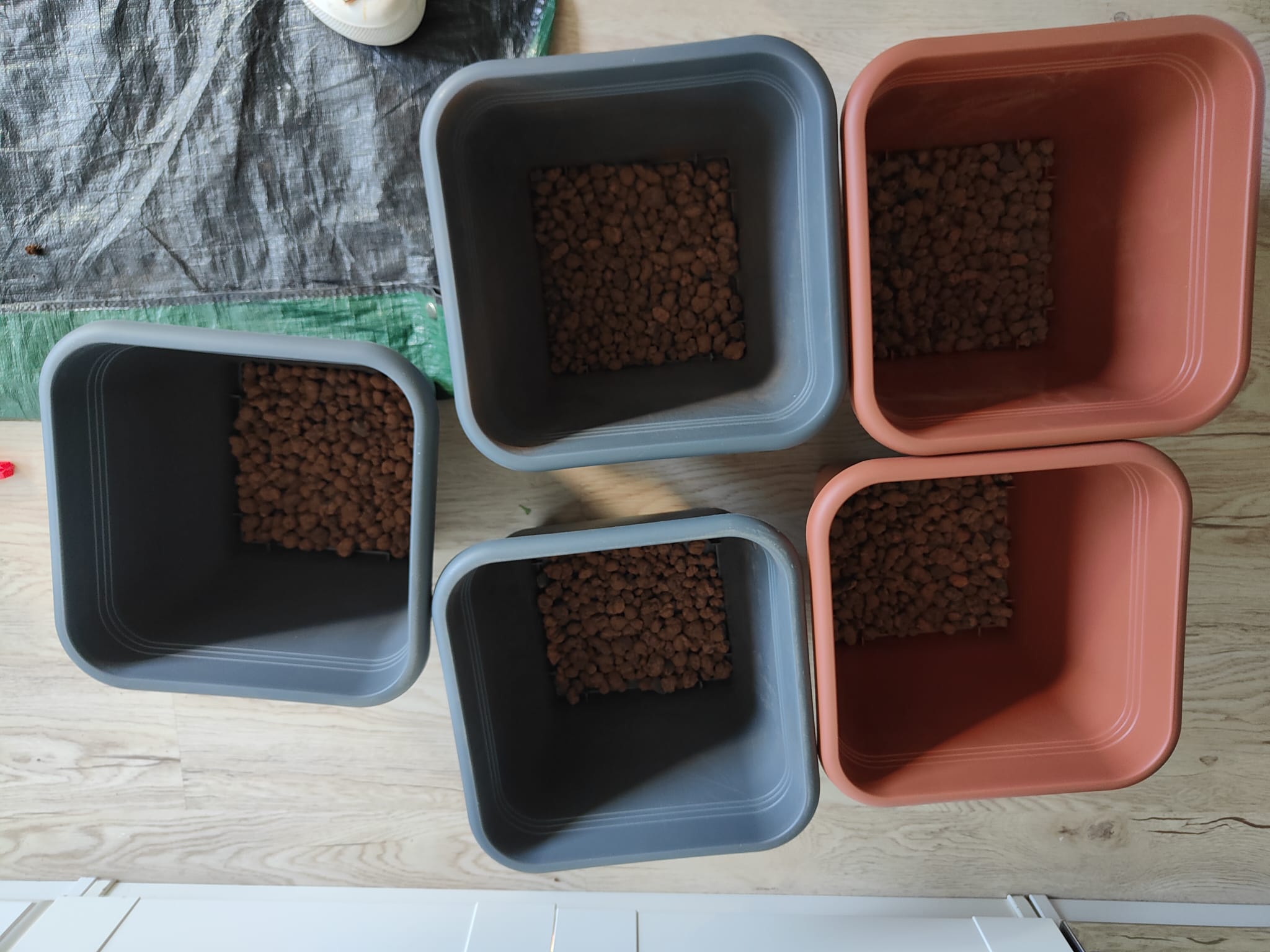 Hier habe ich alle meine Ladys in 10L Teku Töpfe gepackt unten habe ich eine Schicht Tonkügelchen gemacht darauf kamen dann Biobizz Light mit Oscorna Bodenaktivator 10g/L und 7g/L Animal.